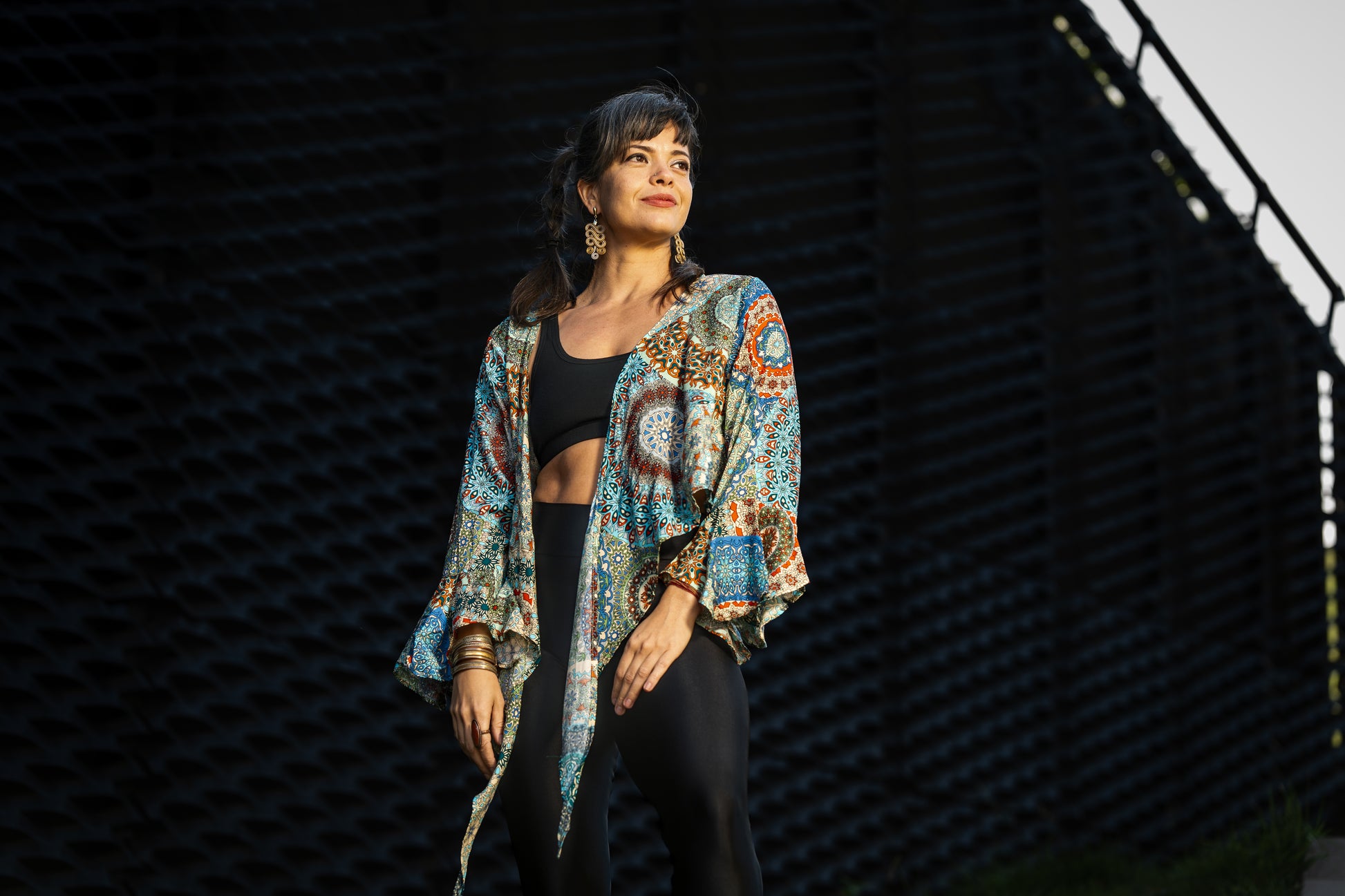 Der Kimono kann offen oder vorne zusammengebunden getragen werden.