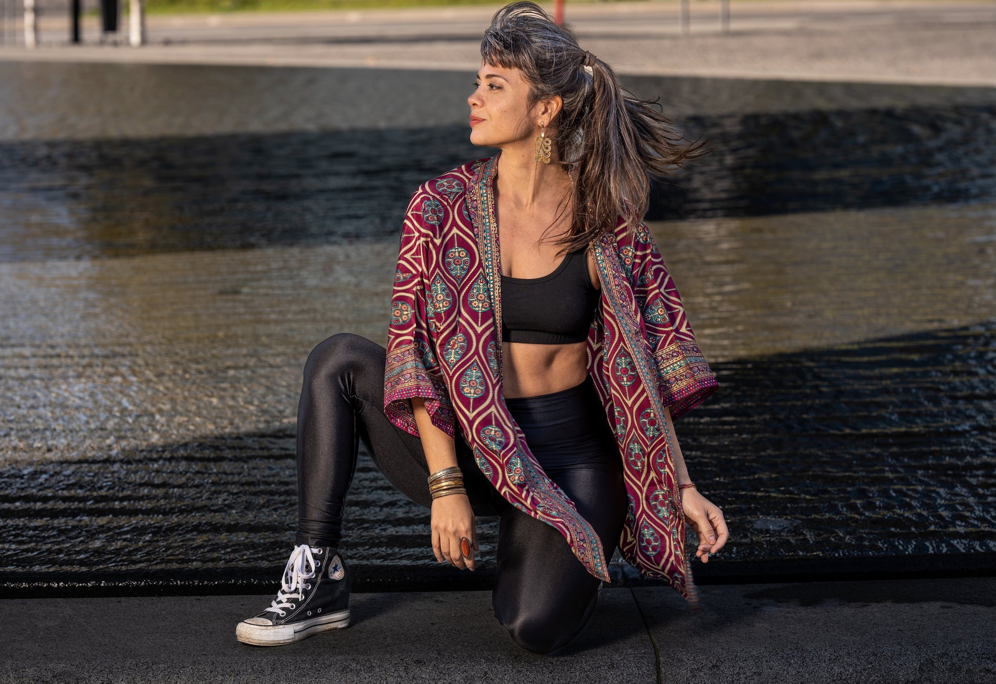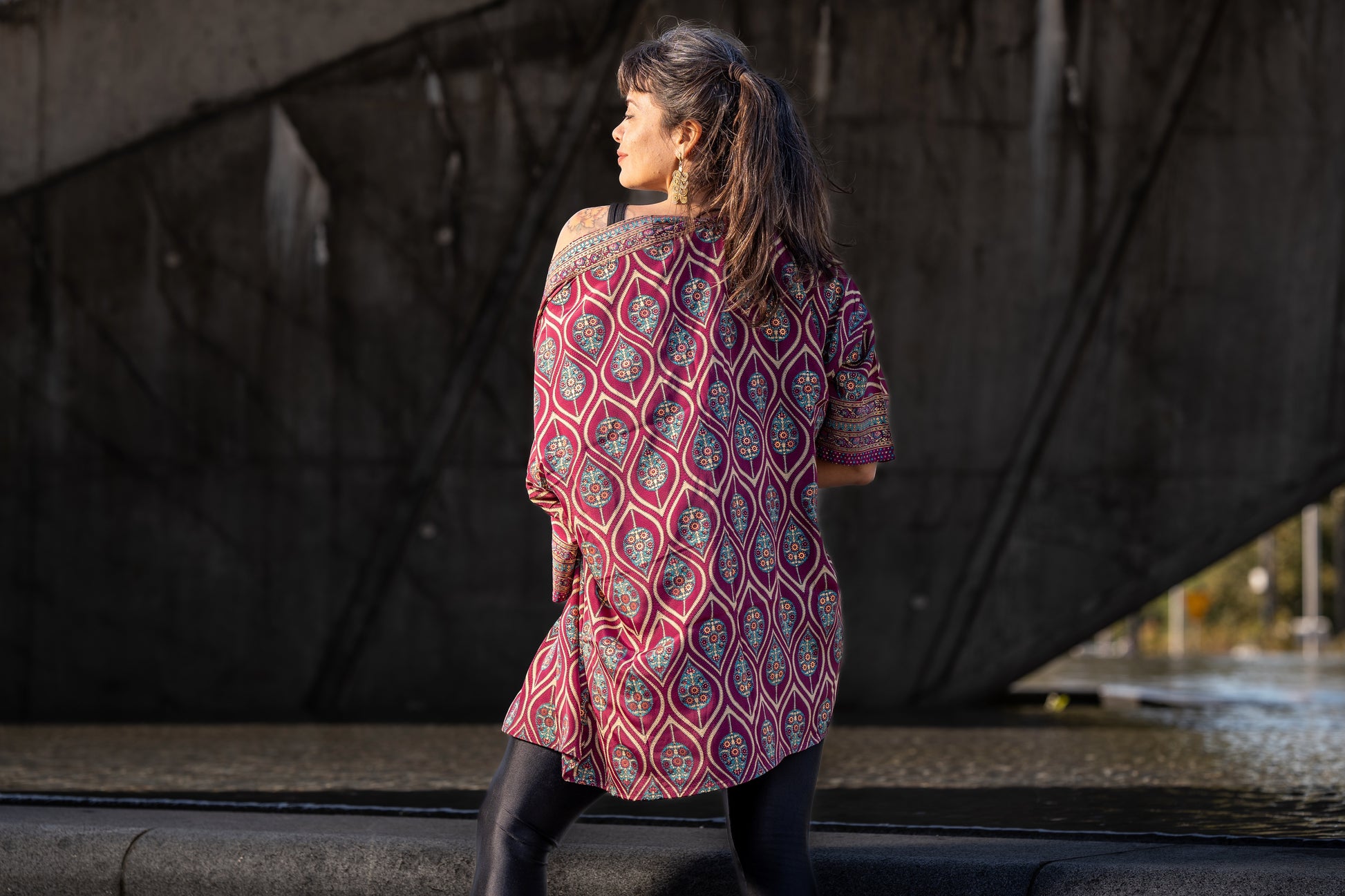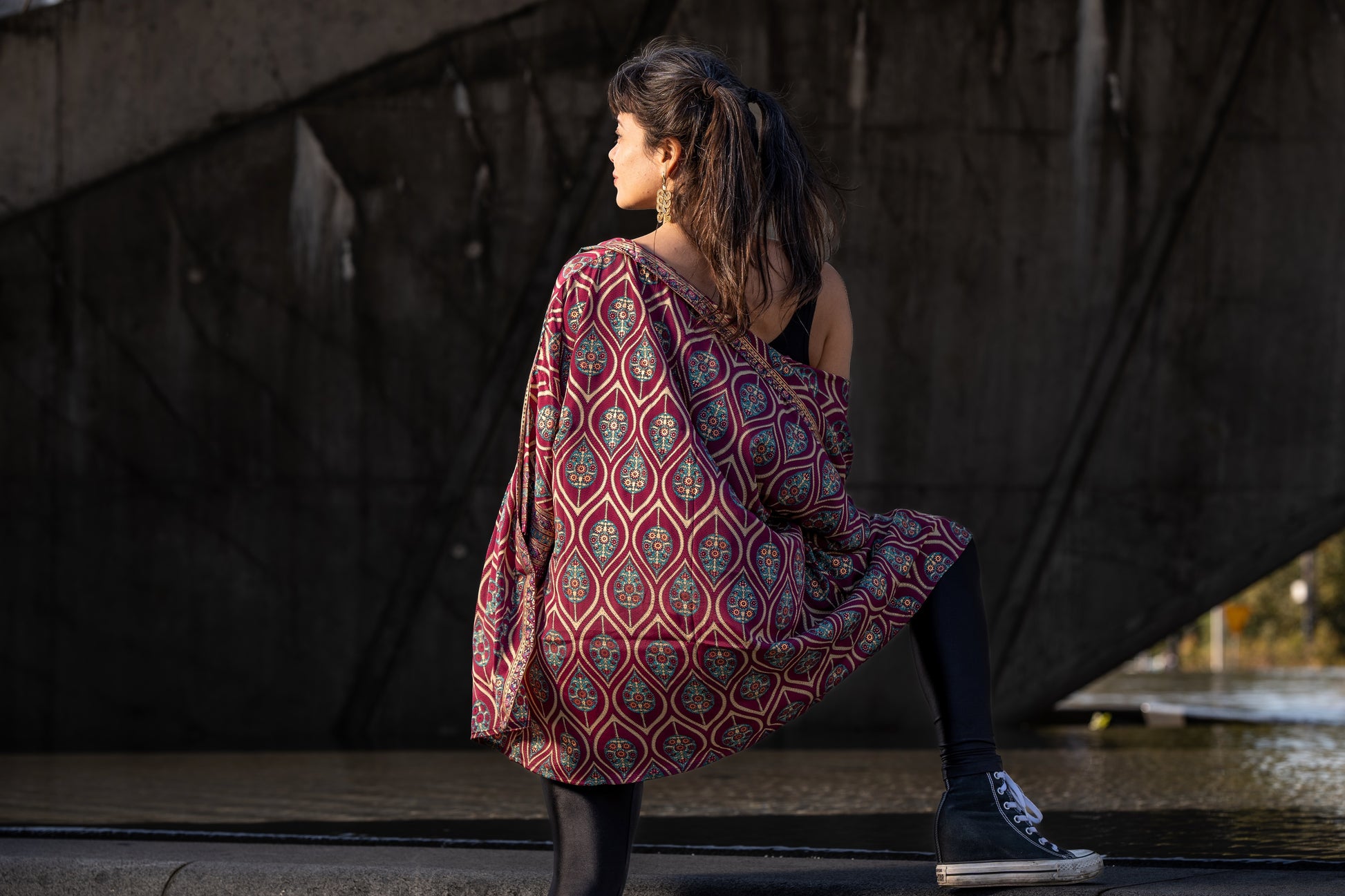BERHO Eztitxu magenta himbeerfarbener Kimono, Bluse, Überwurf, leichte Jacke