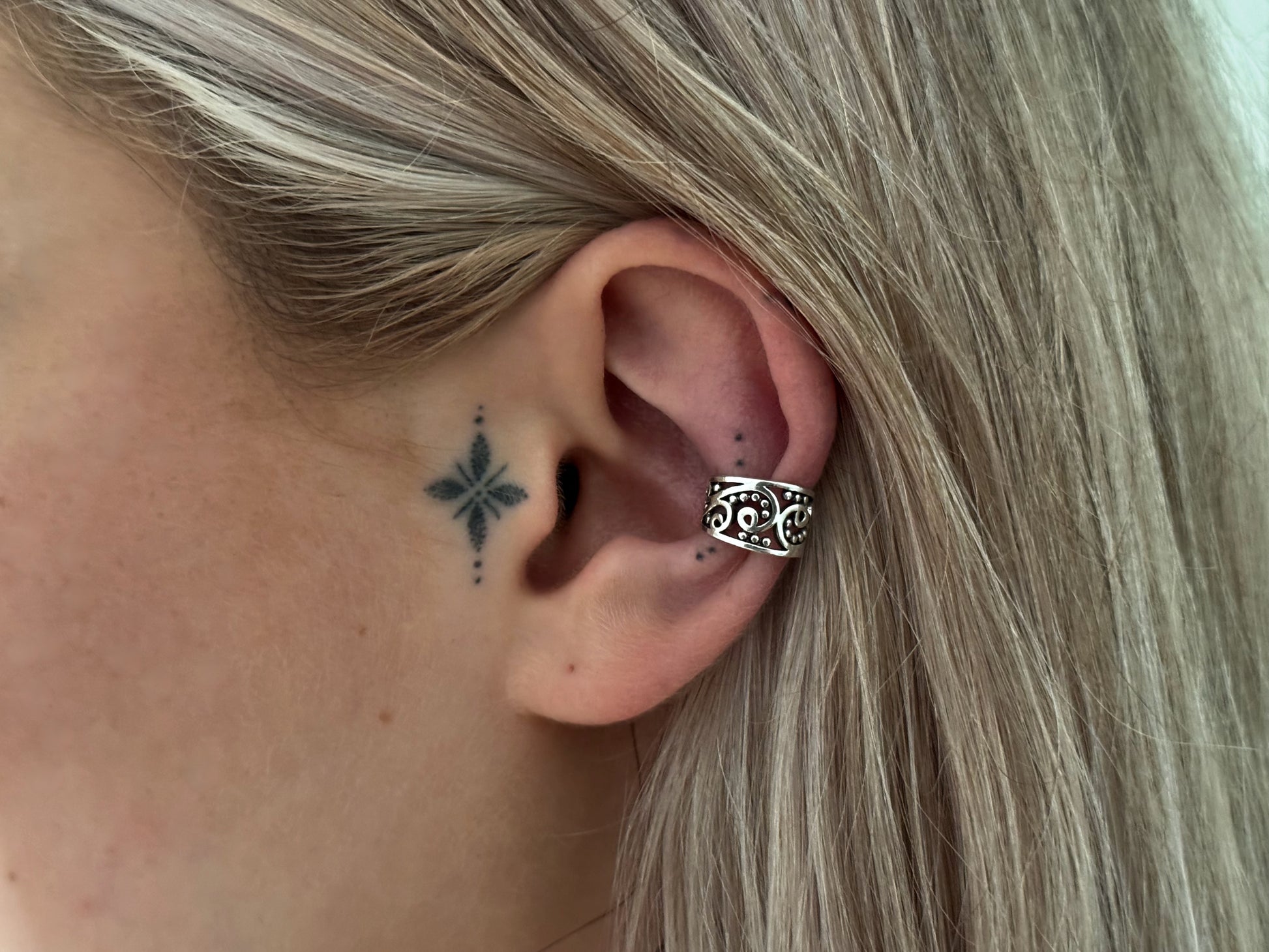 Ohrclip mit Spiralen und Pünktchen aus Silber, Ohrschmuck ohne Loch, Ohrmanschette