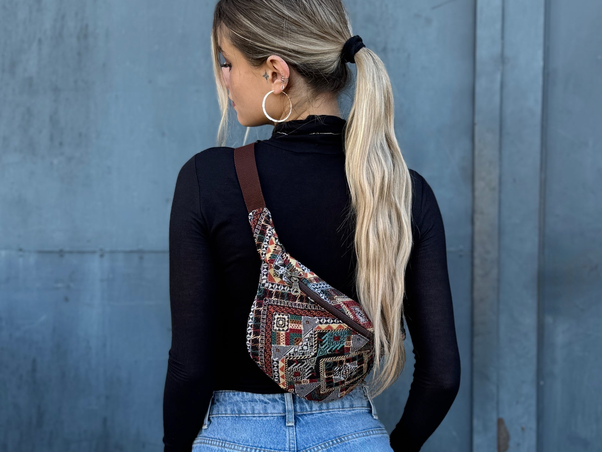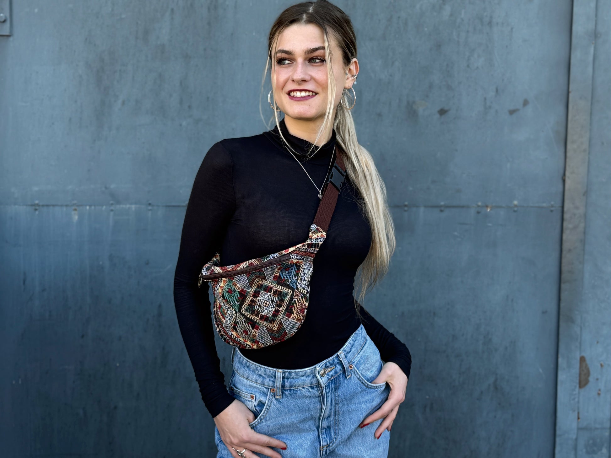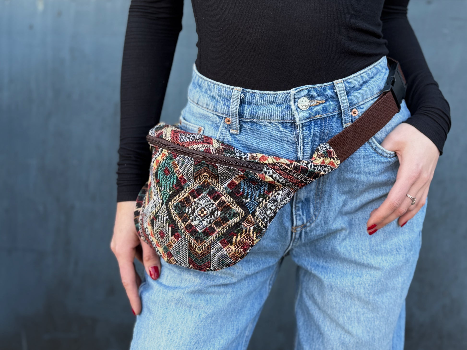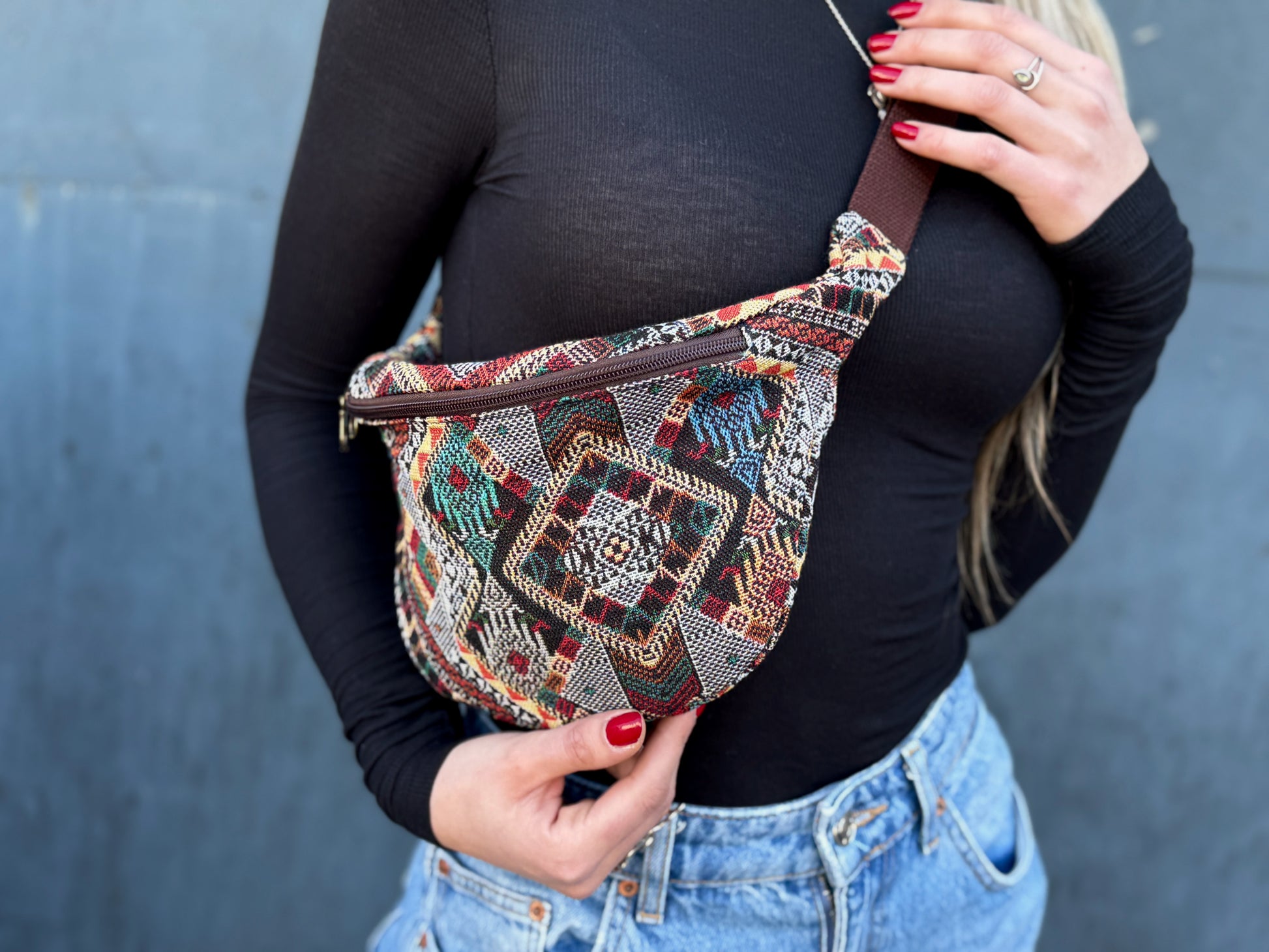 praktische Bauchtasche mit Reißverschluss und detailliertem bunten Muster