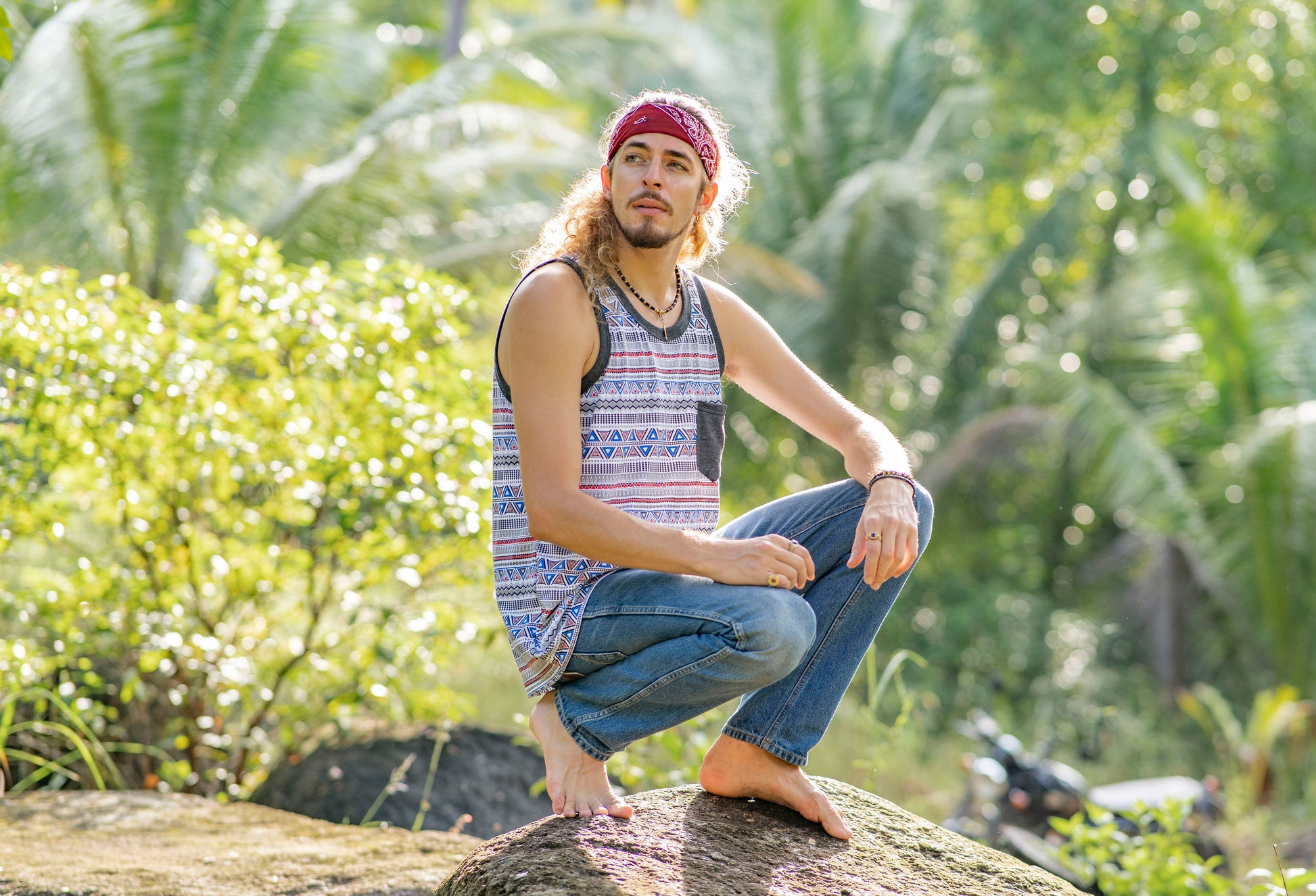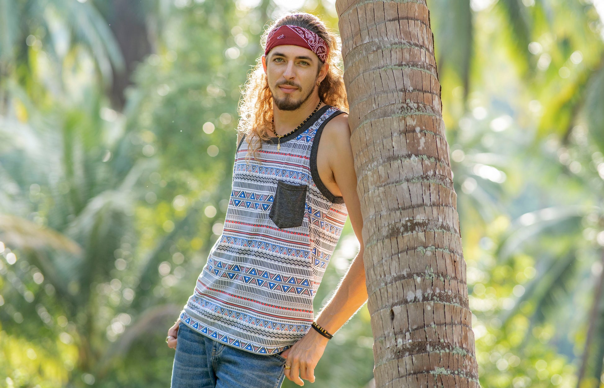 Colorful patterned tank top with chest pocket for men in a casual look , men's shirt, yoga shirt, summer top, tank, men's top