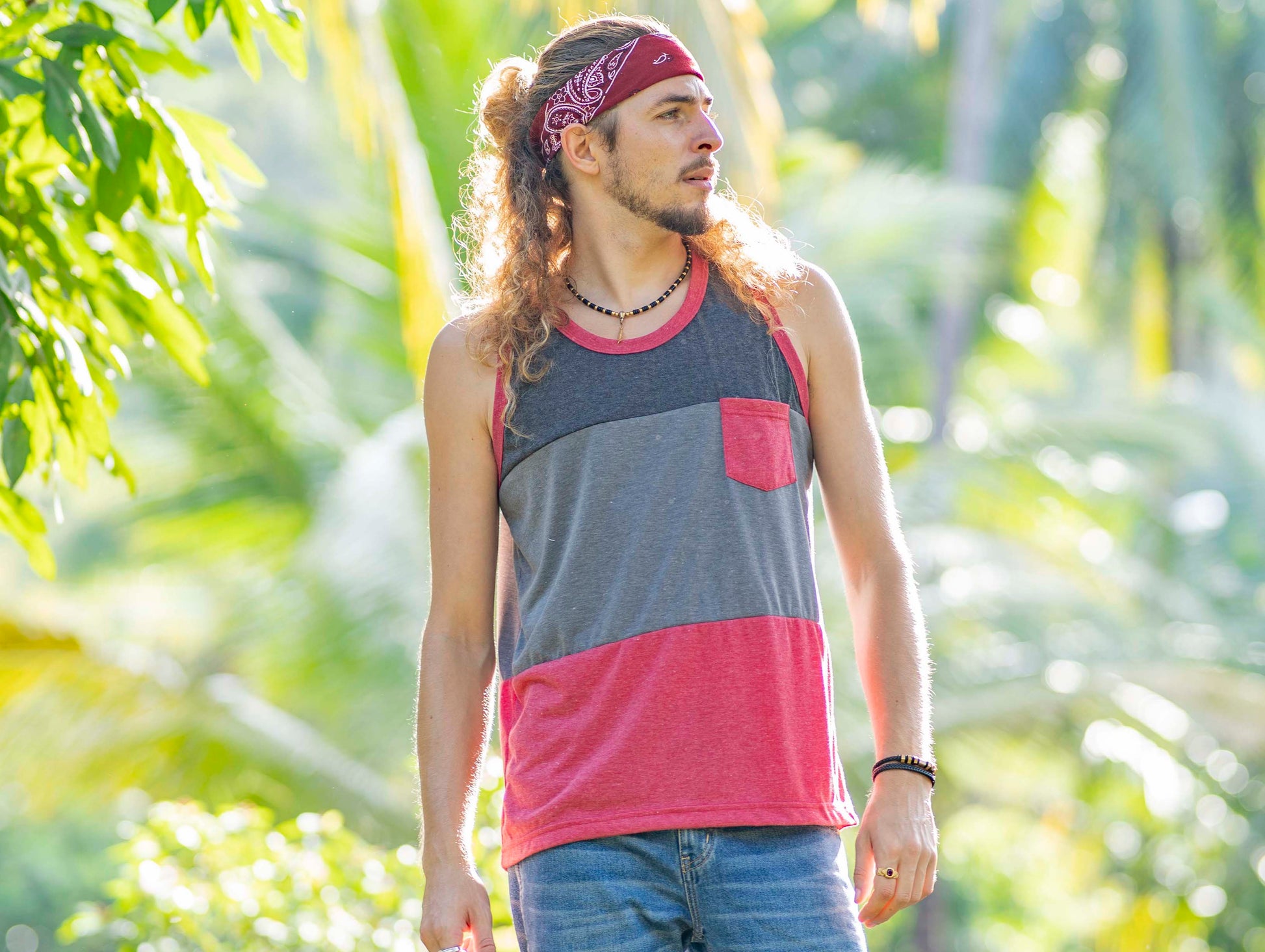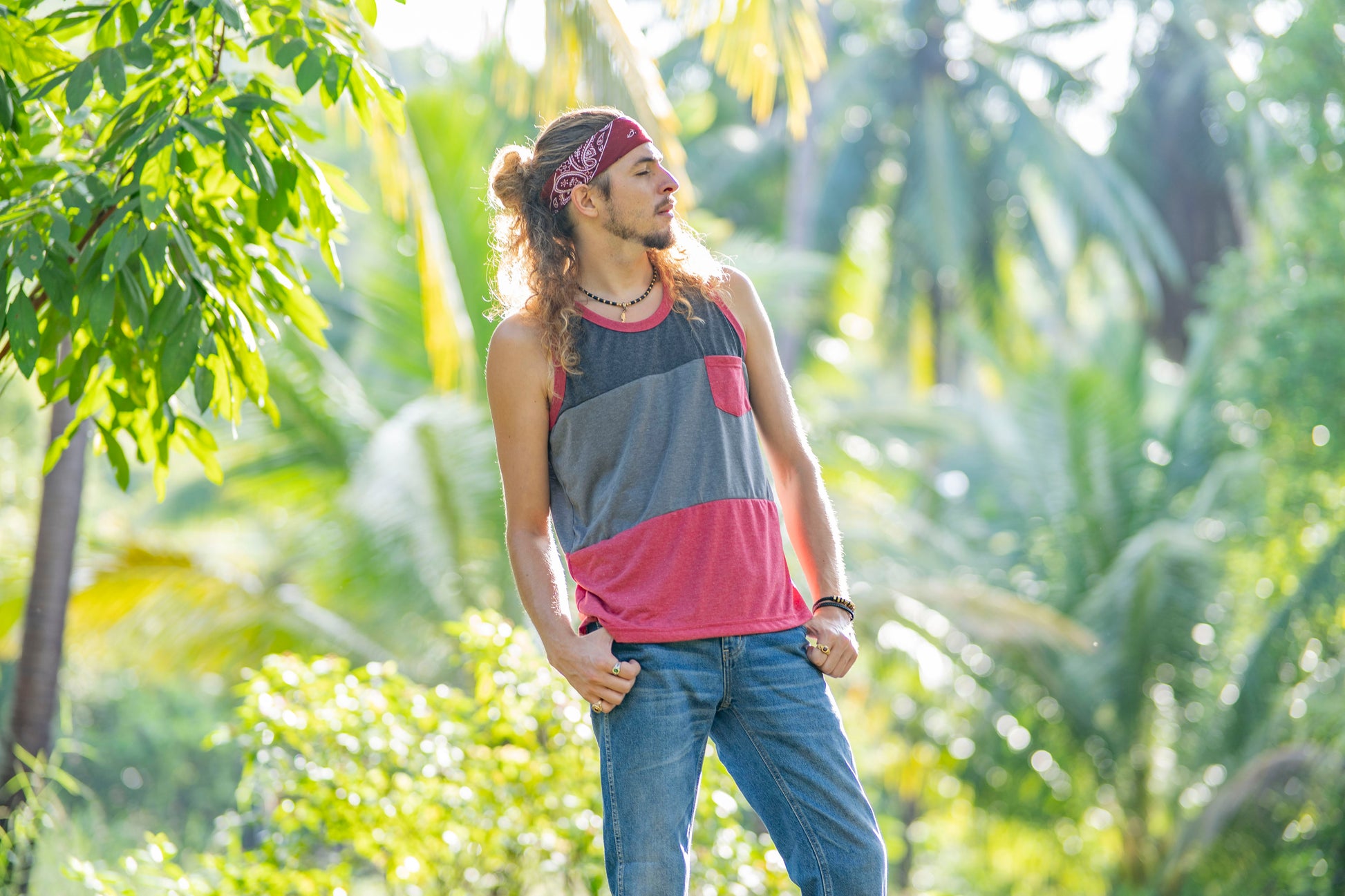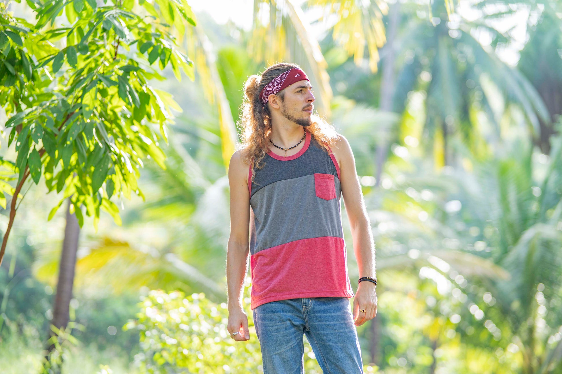 Tri-color tank top with chest pocket for men in a casual look , men's shirt, yoga shirt, summer top, tank, men's top
