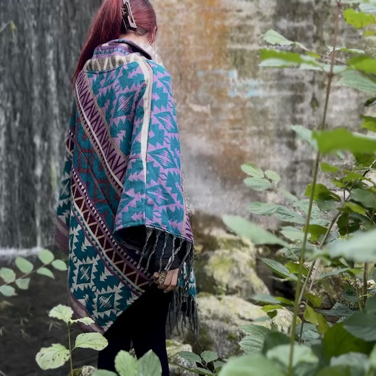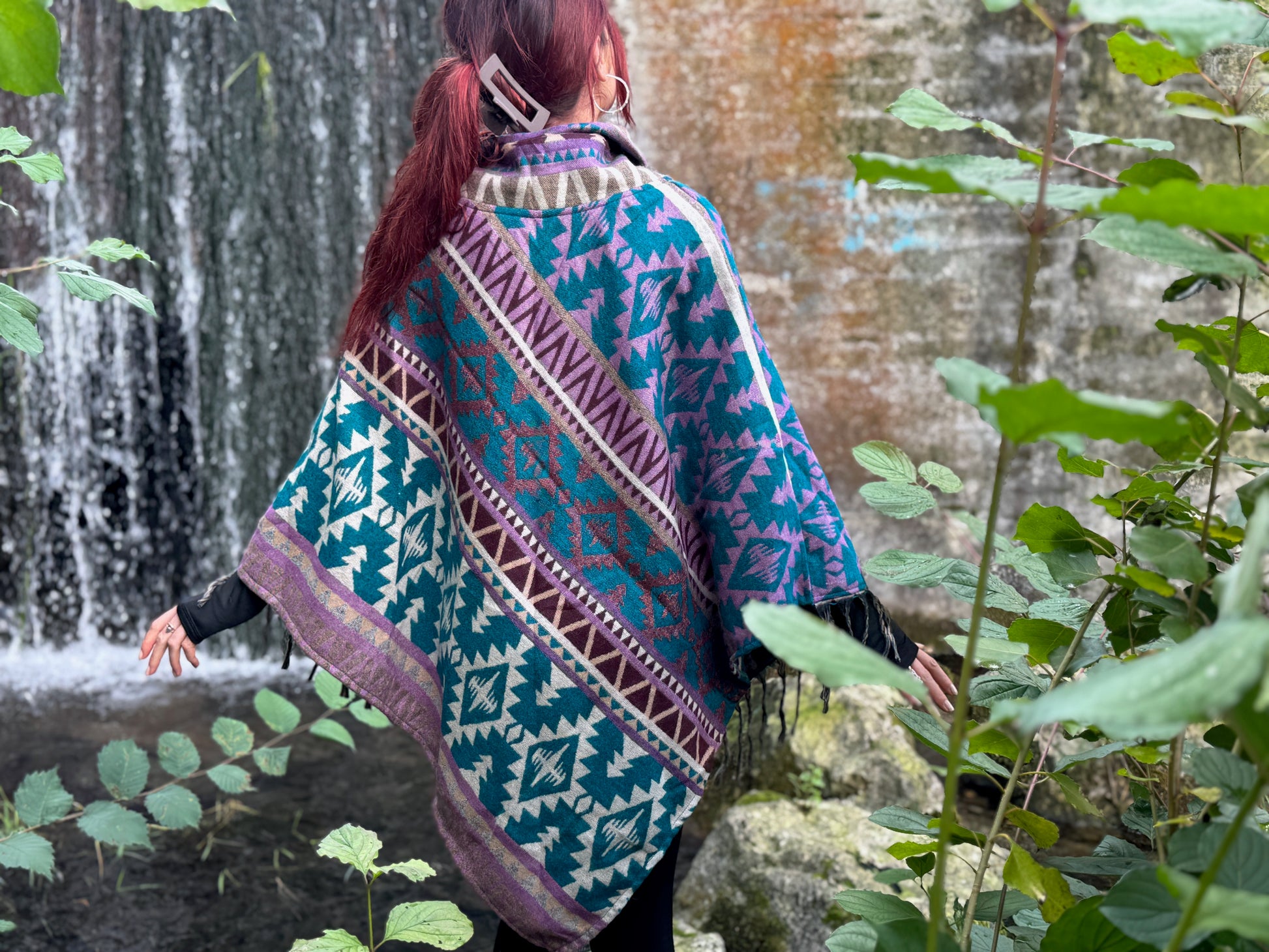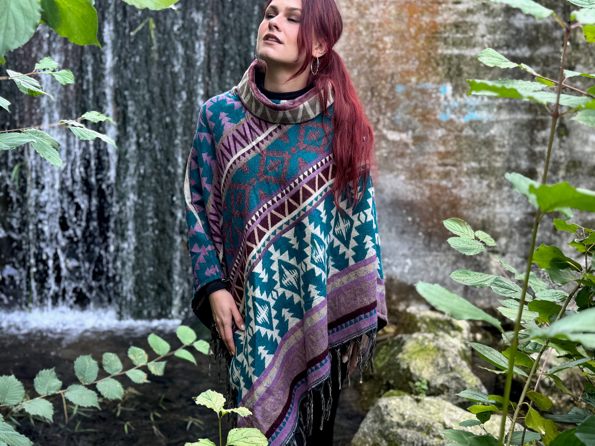 half-length, plain-colored knitted sweater with hood and thumbholes in rosé red