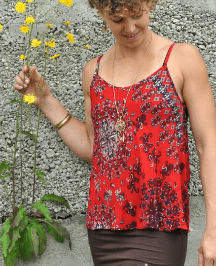 loose summer top with a floral pattern in red