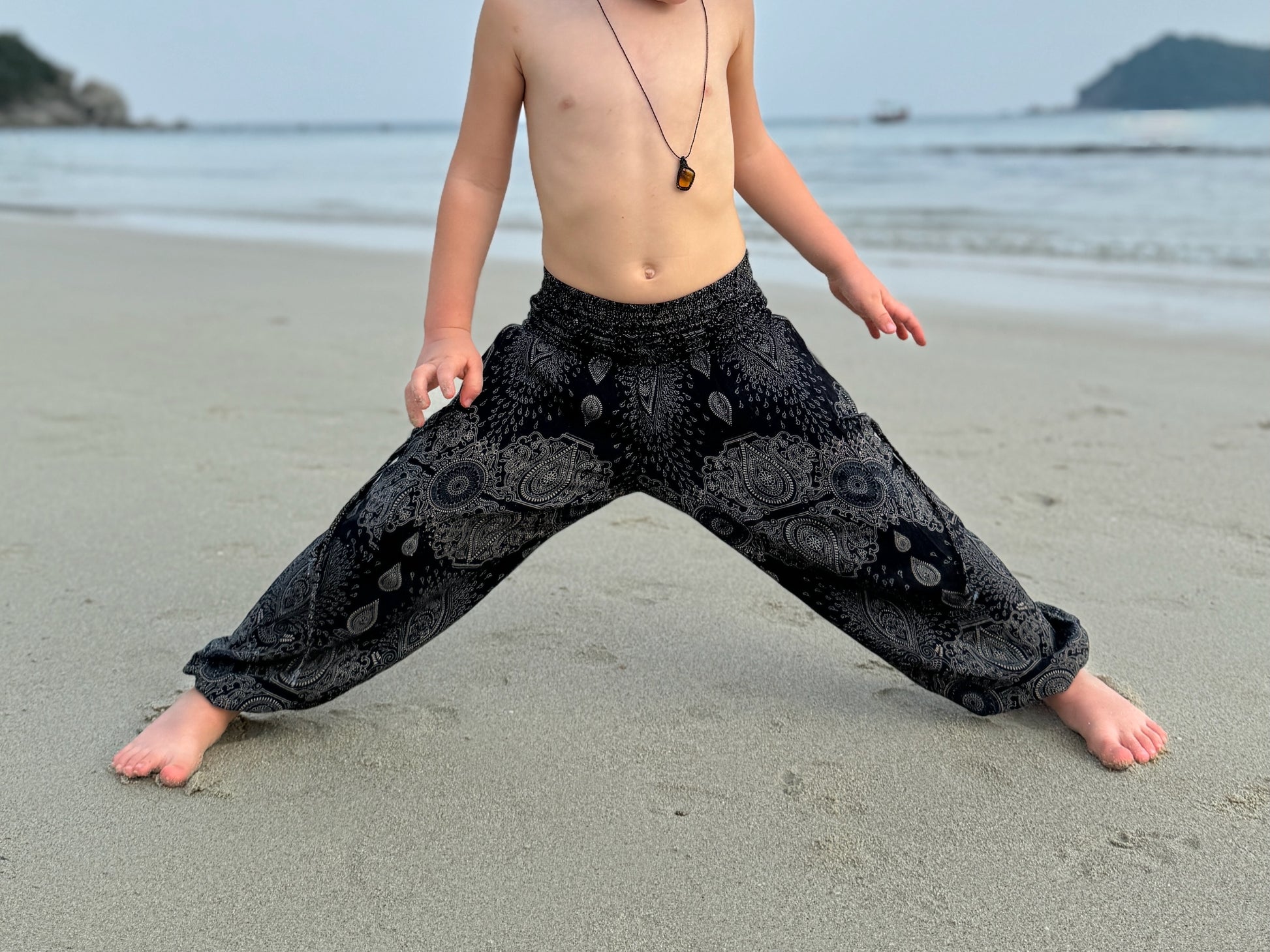 black patterned light harem pants for children