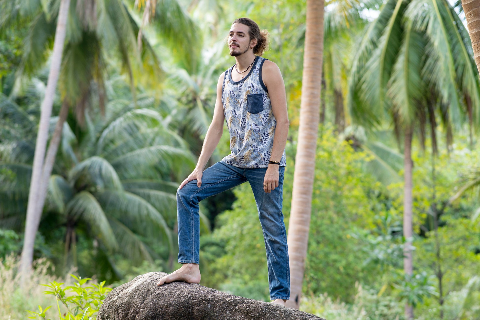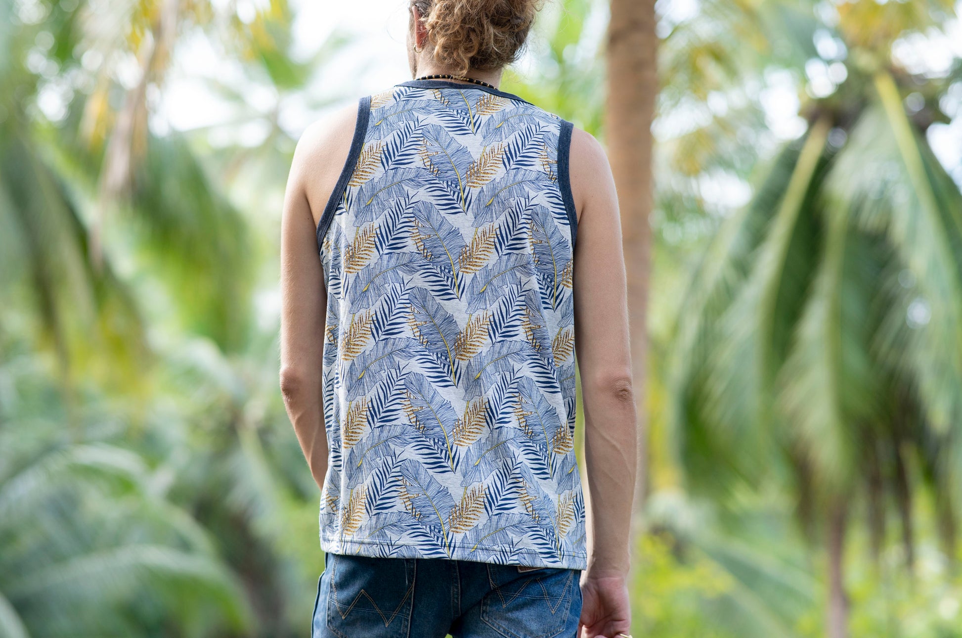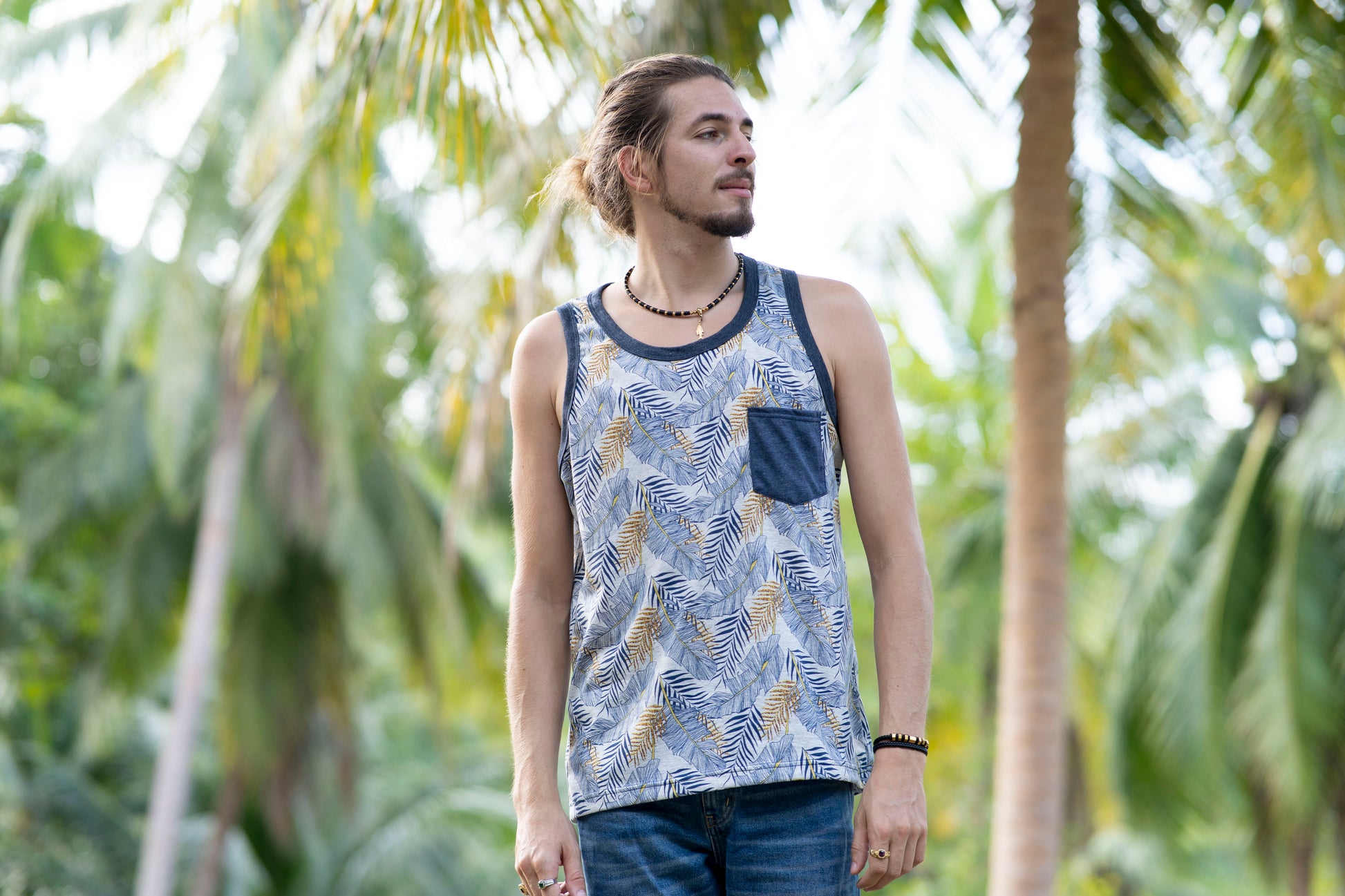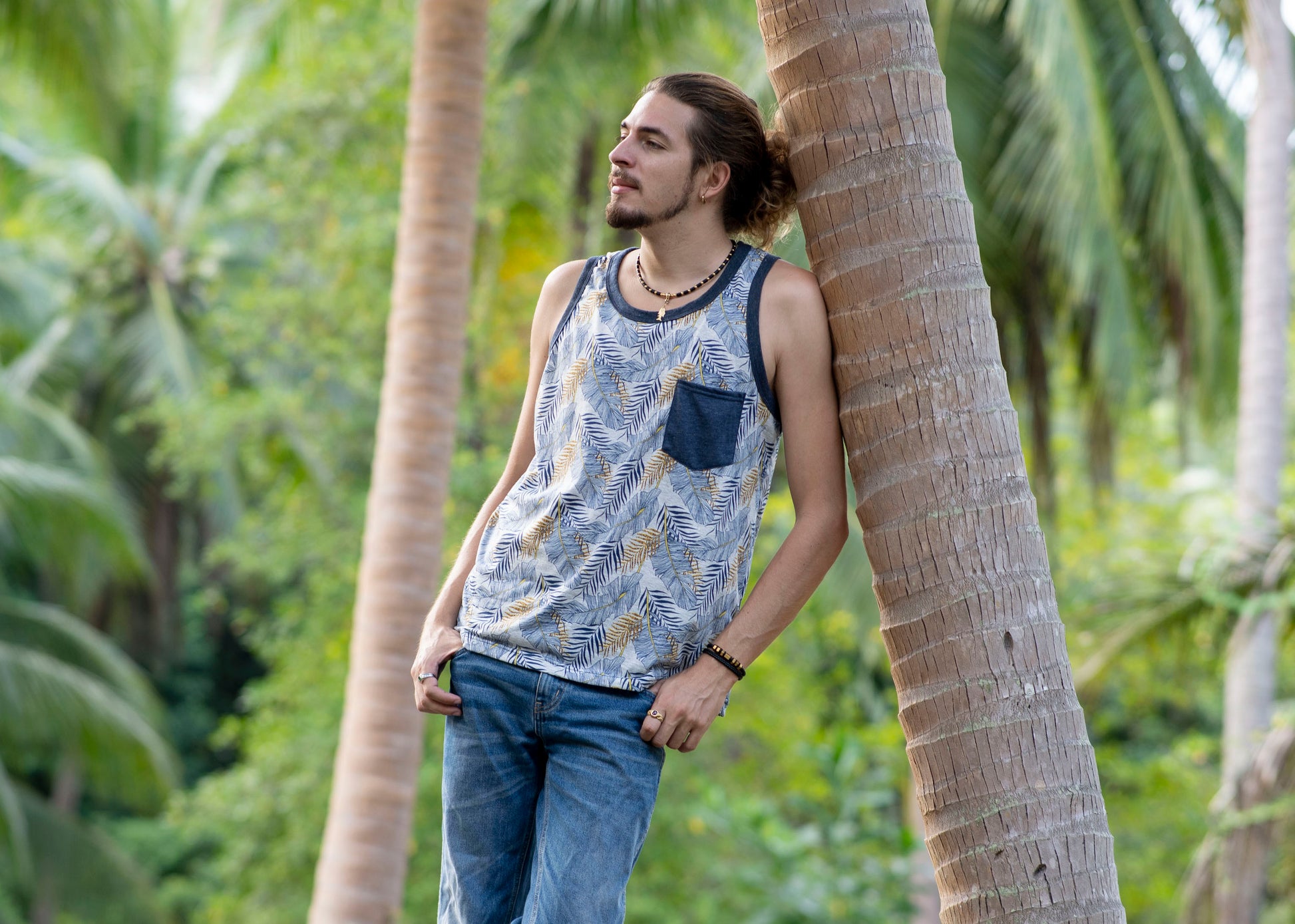 Colorful patterned tank top with chest pocket for men in a casual look , men's shirt, yoga shirt, summer top, tank, men's top