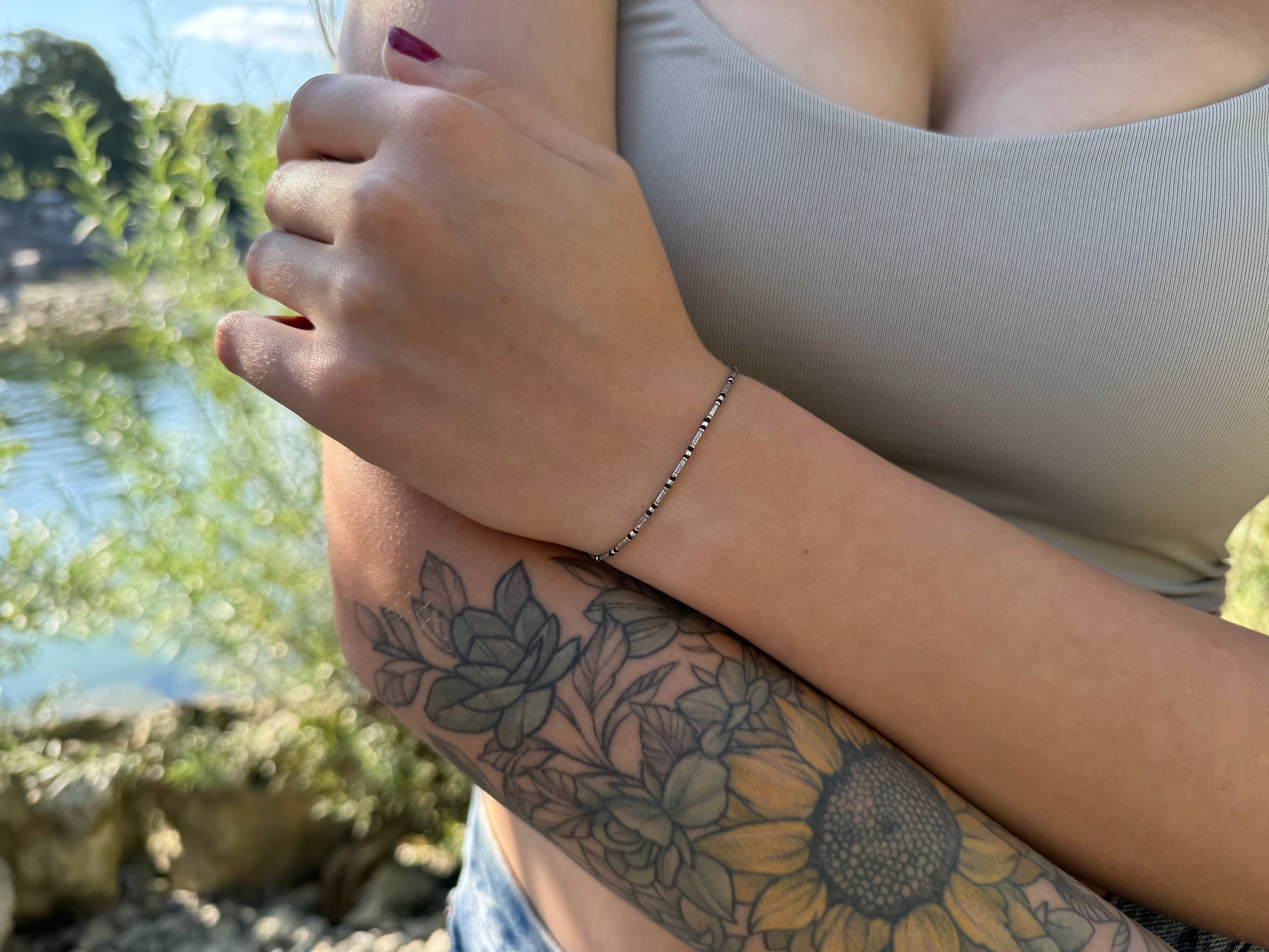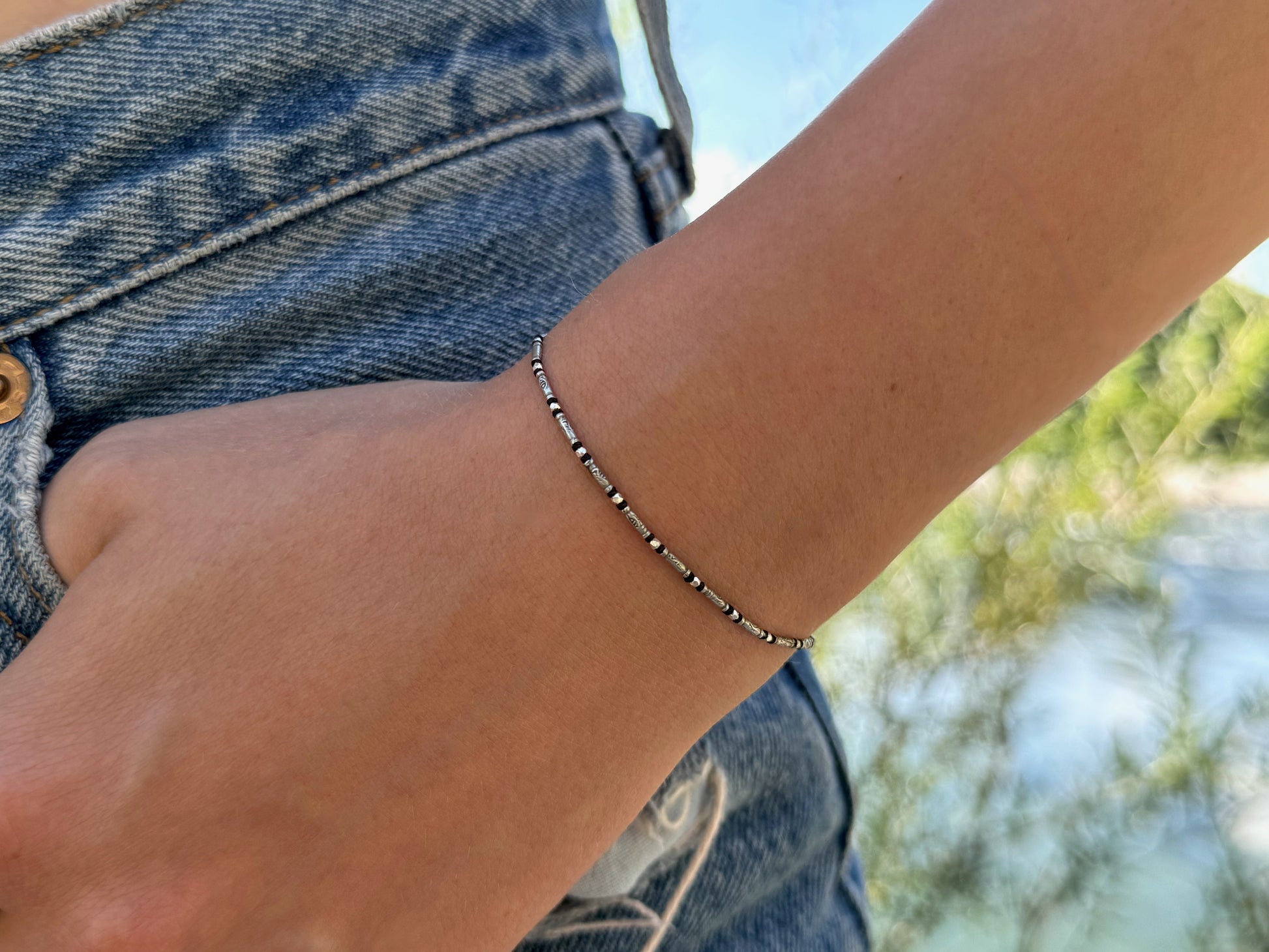 Bracelet made of silver beads with small flowers