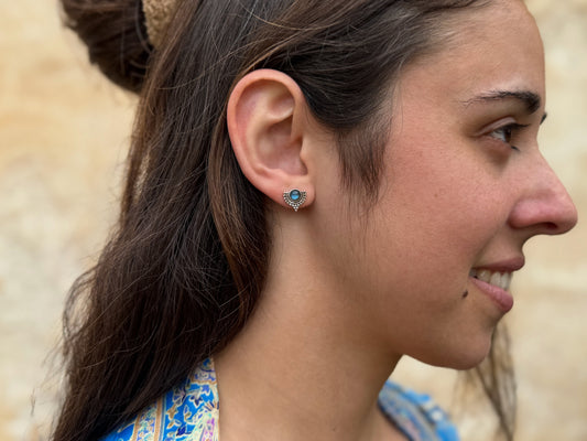 Boho Kette Tropfen aus Messing – Orientalischer Schmuck im marokkanischen Stil, Ethno Halskette für Damen, blau
