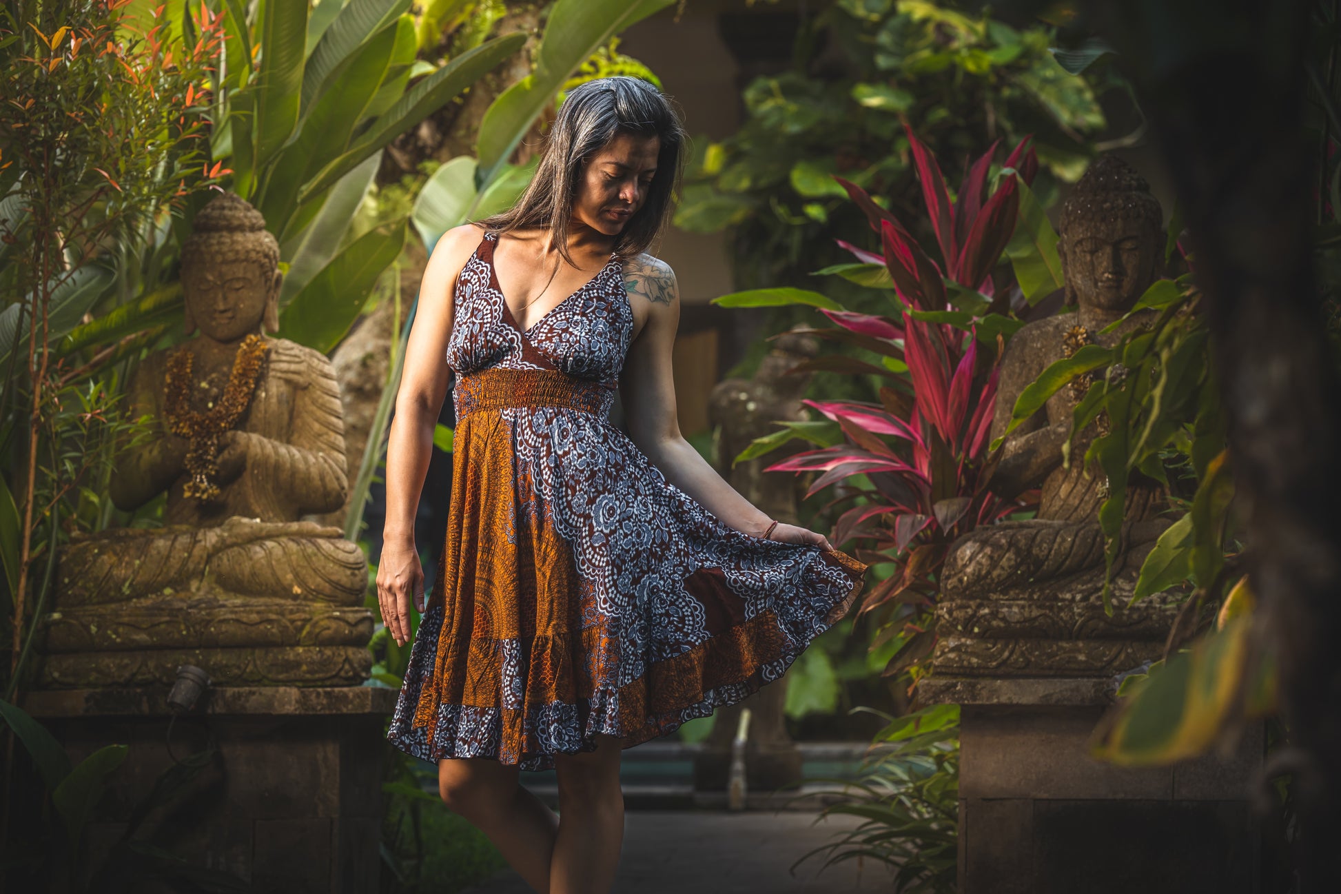 locker geschnittenes Sommerkleid mit Rüschen und V-Ausschnitt