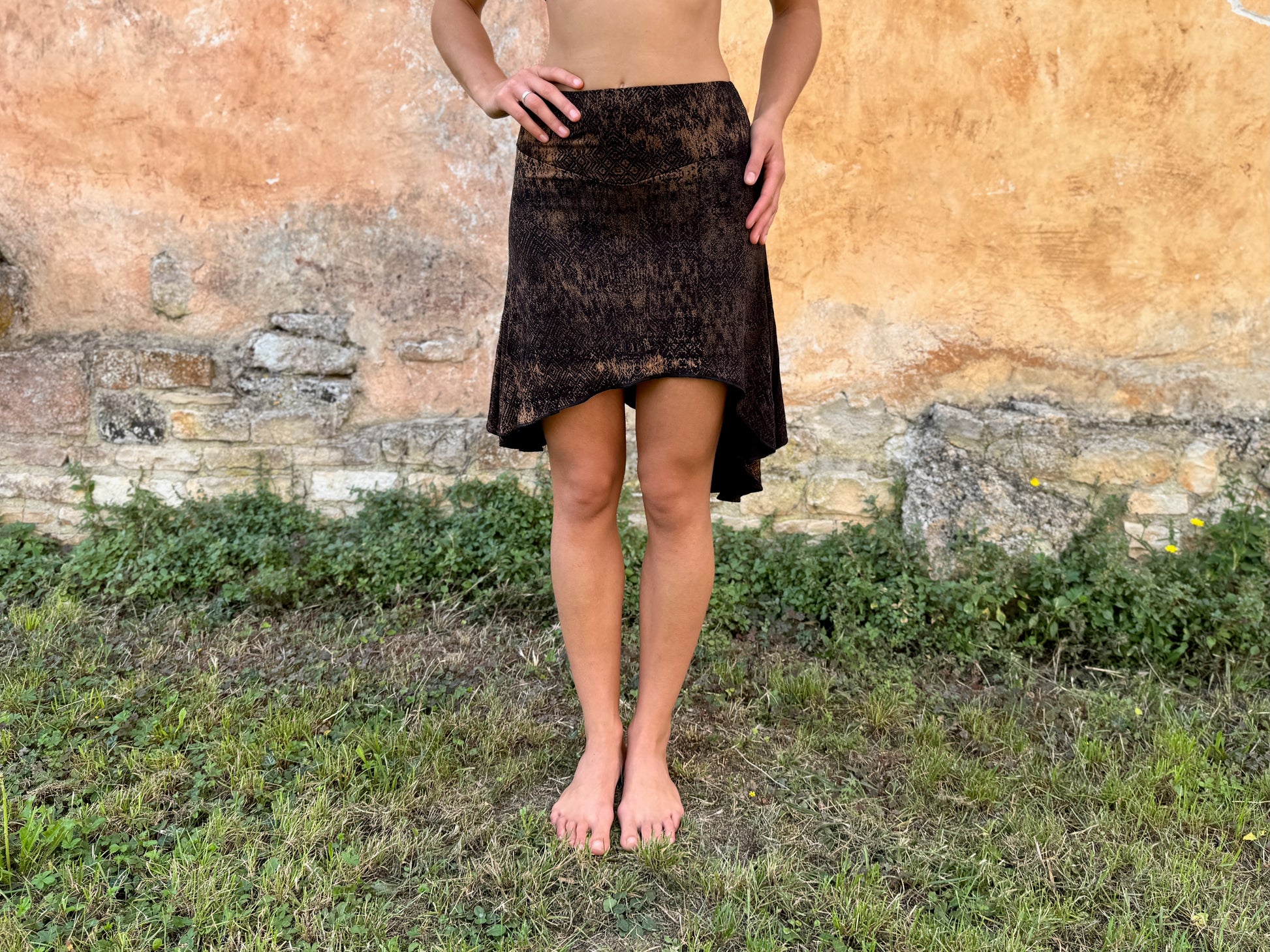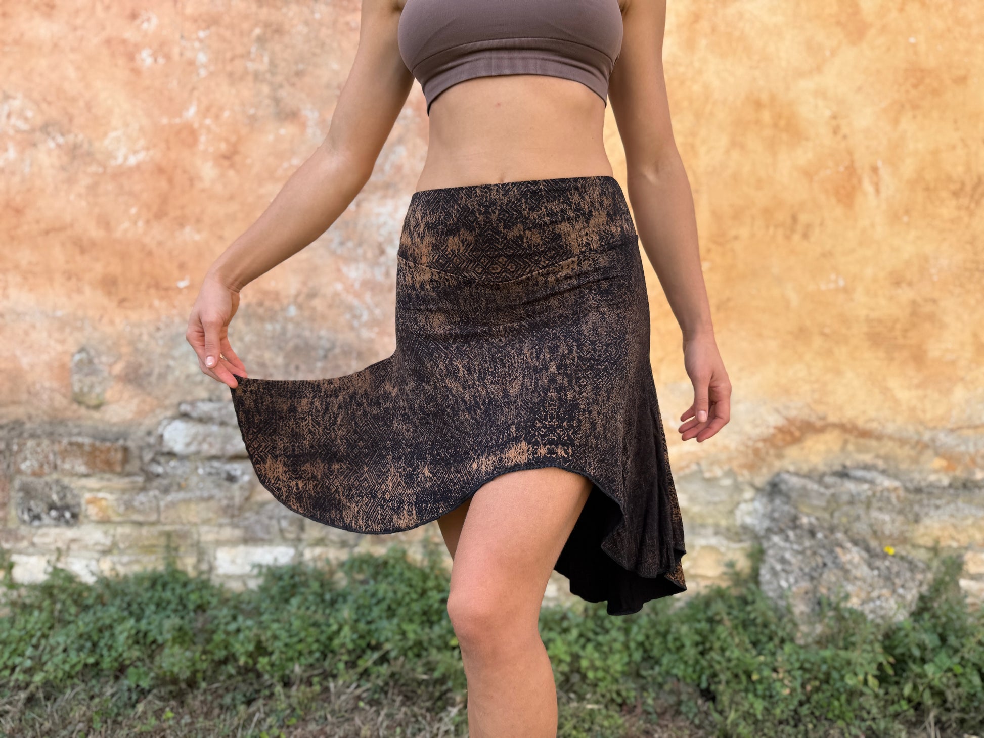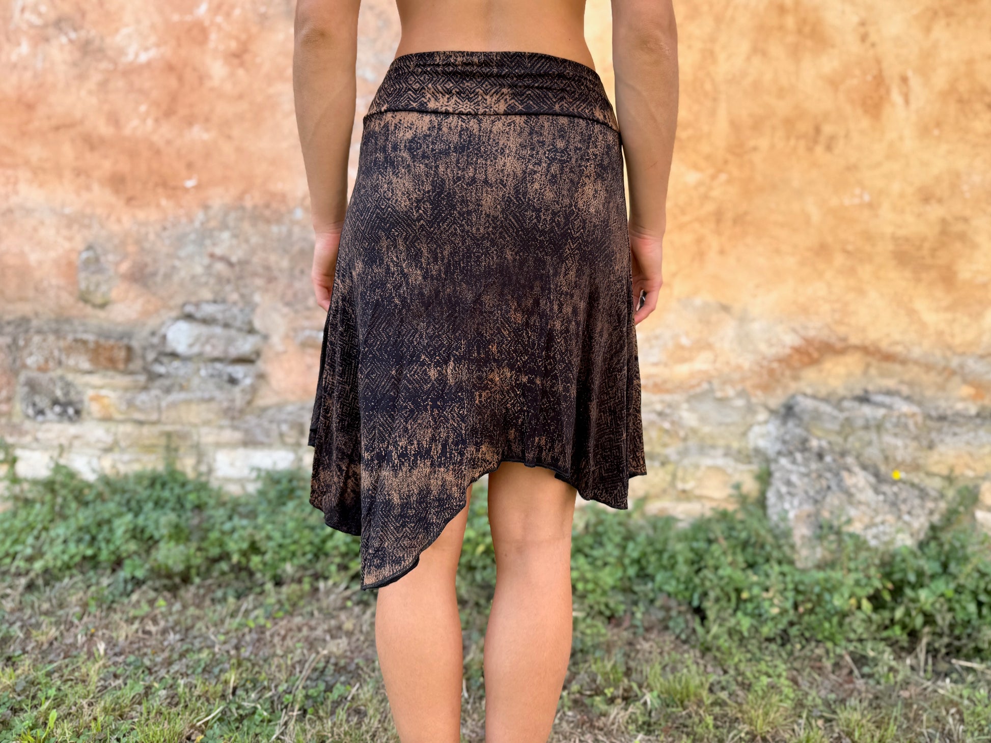 asymmetrischer Rock mit Batik-Muster in braun