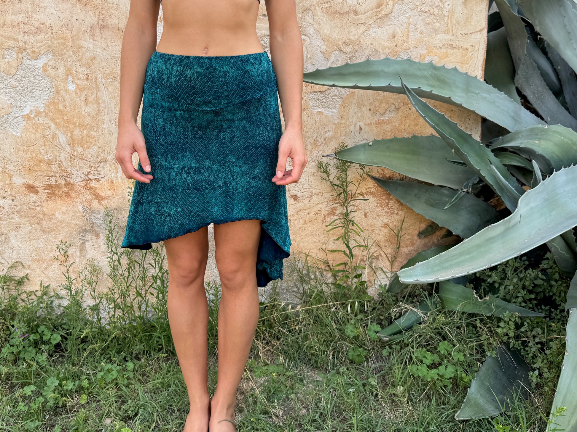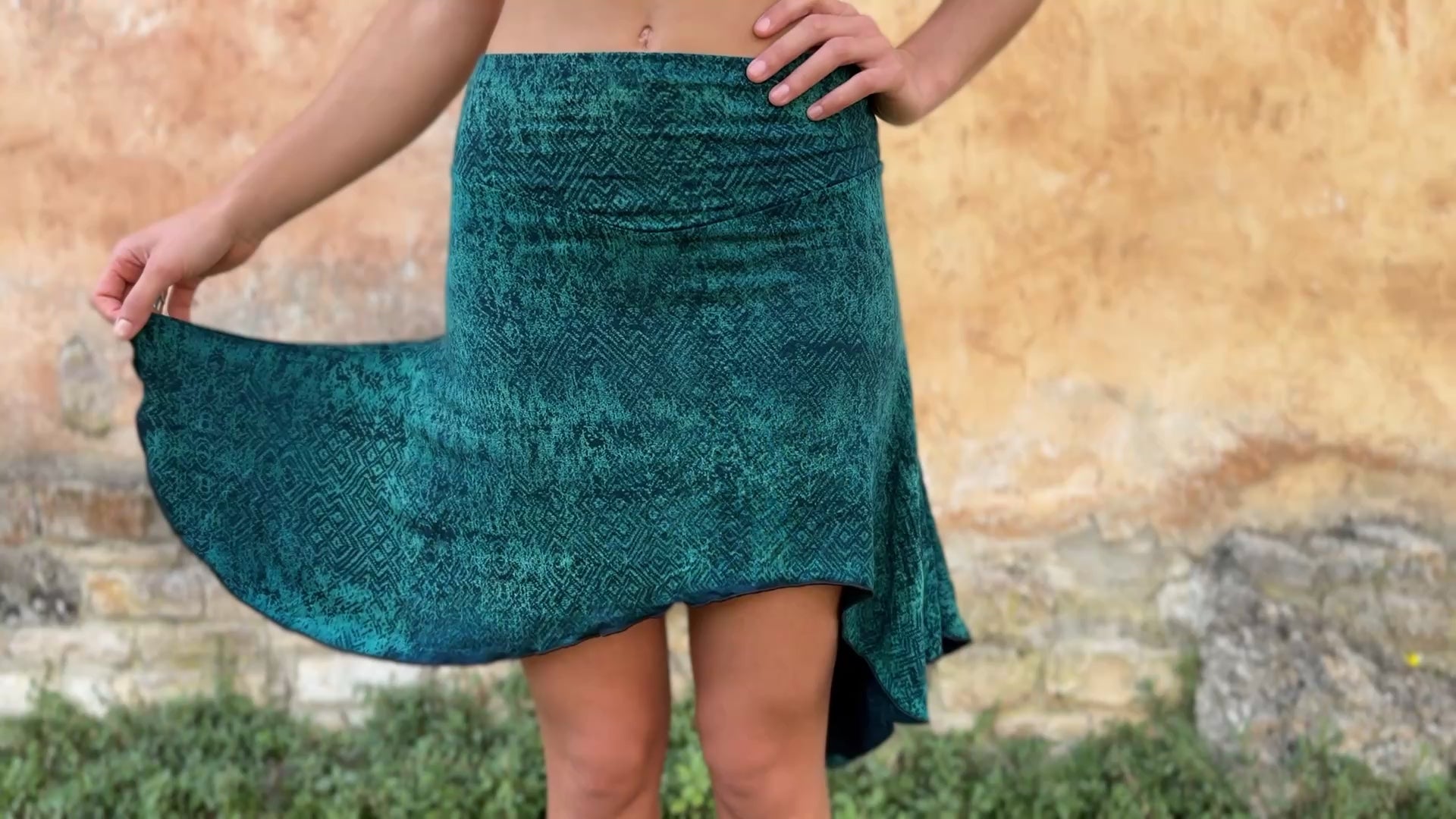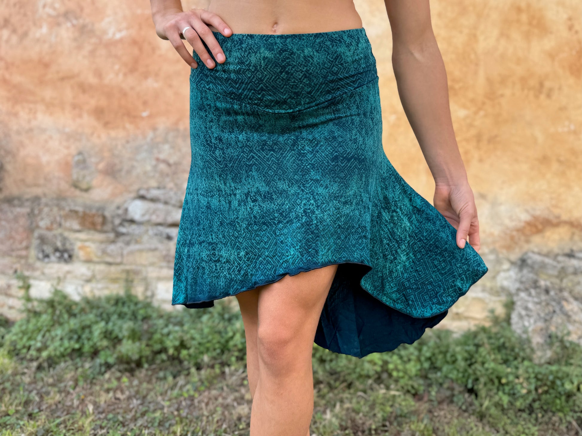 Da jeder Rock einzeln von Hand gefertigt wird, sind die Farben und Muster einzigartig. Bitte beachte: Leichte Abweichungen gehören zum Charakter dieses Färbe-Verfahrens und machen jedes Stück zu einem Unikat.