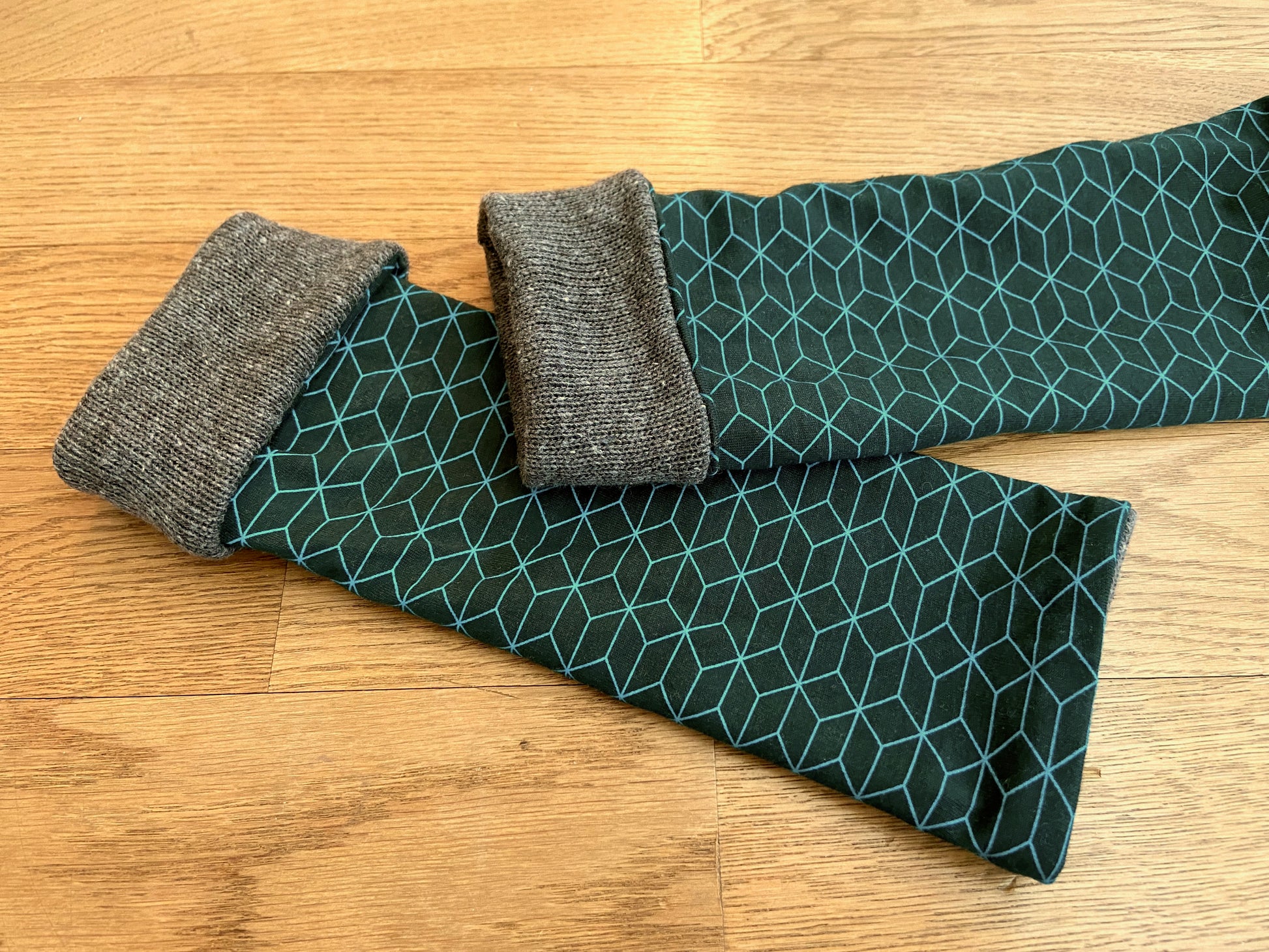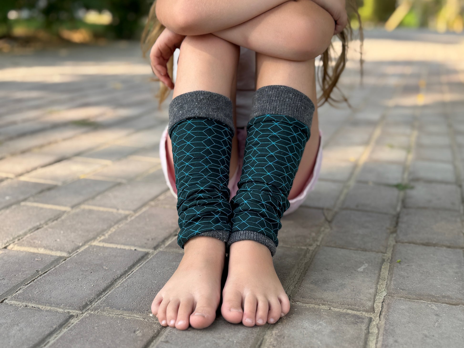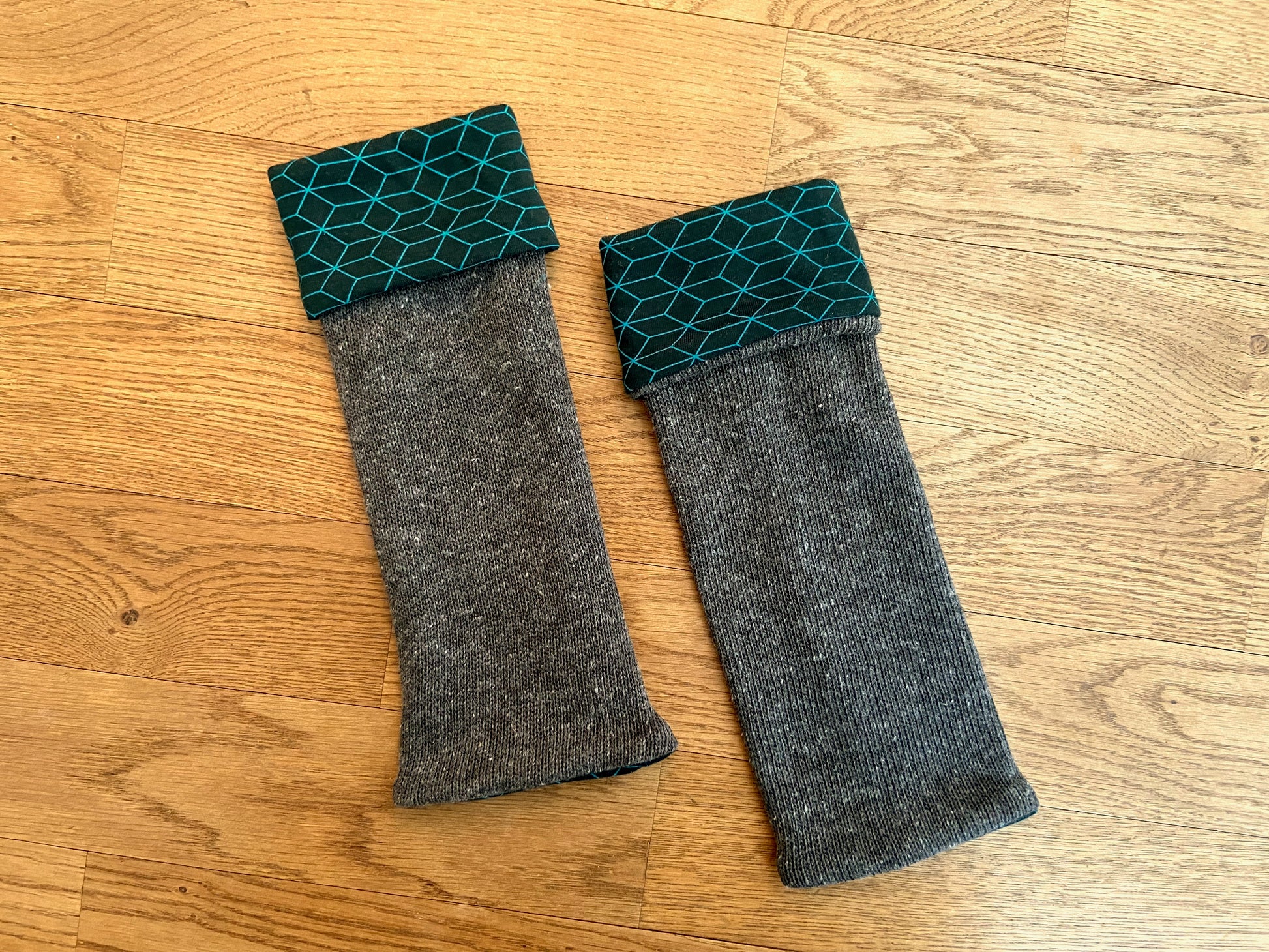 Beinstulpen zum Wenden für Kinder. Die Stulpen können entweder mit der einfarbigen oder der gemusterten Seite nach aussen getragen werden. Jeweils kann ein Teil der Stulpen umgeschlagen werden, so dass du den Look individuell anpassen kannst.