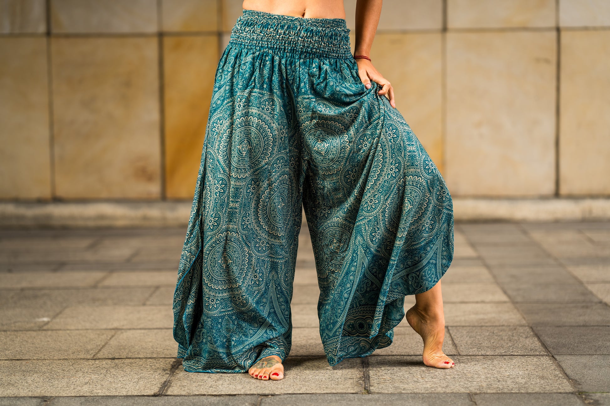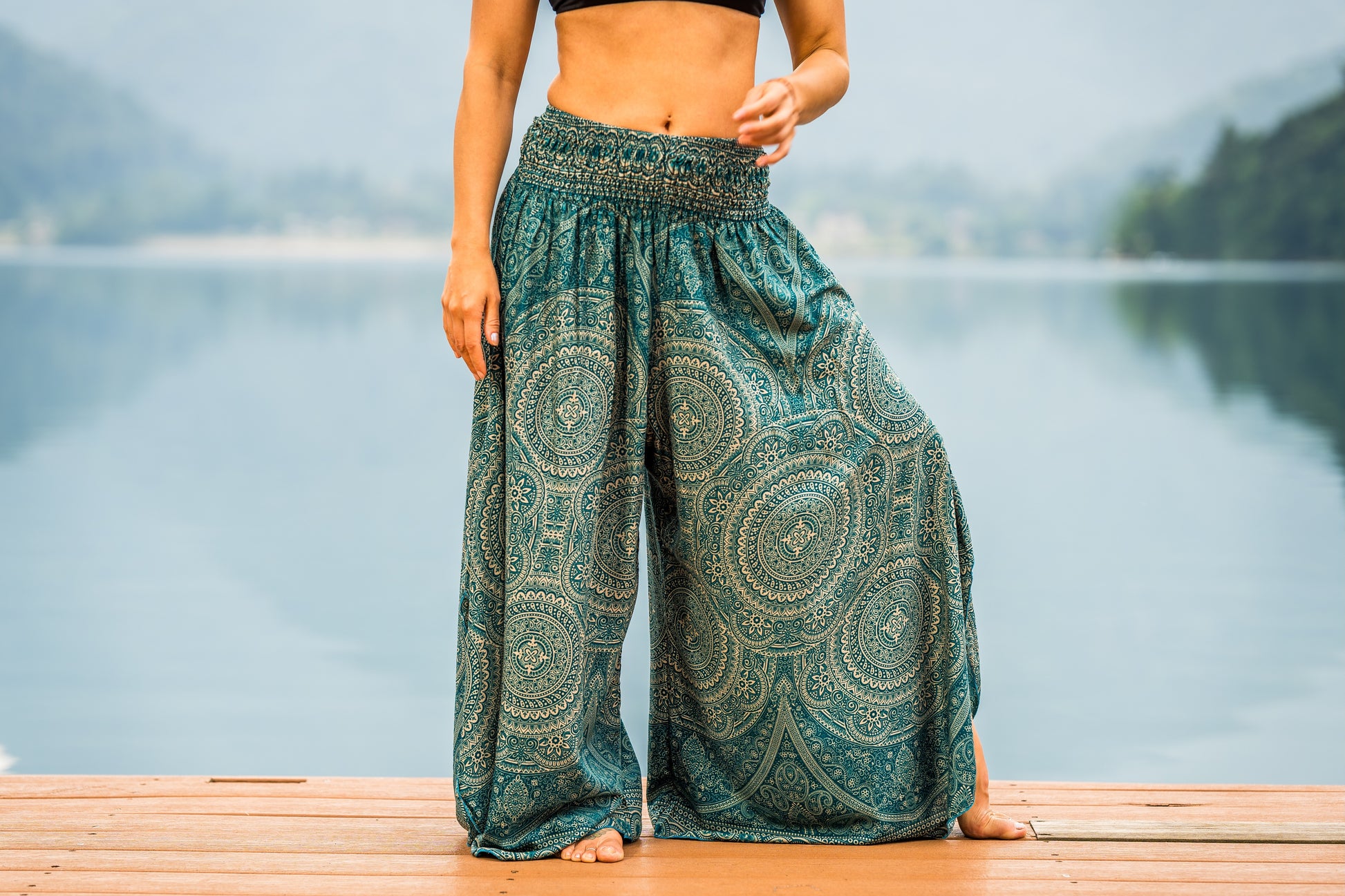 Diese weiche, fließende Hose ist ideal für warme Tage – ob beim Yoga, am Strand, im Alltag oder auf dem Festival. Sie sitzt locker, ist super bequem und fällt durch ihr Mandala-Muster und den luftigen Schnitt sofort ins Auge.