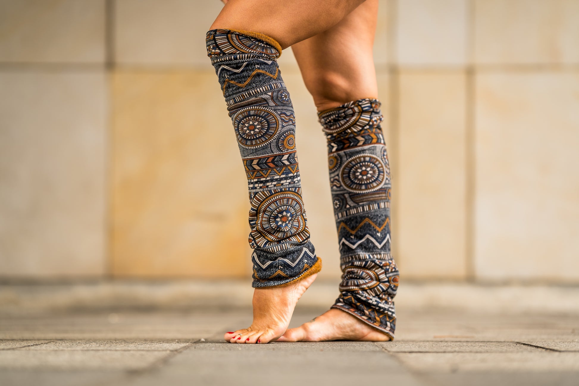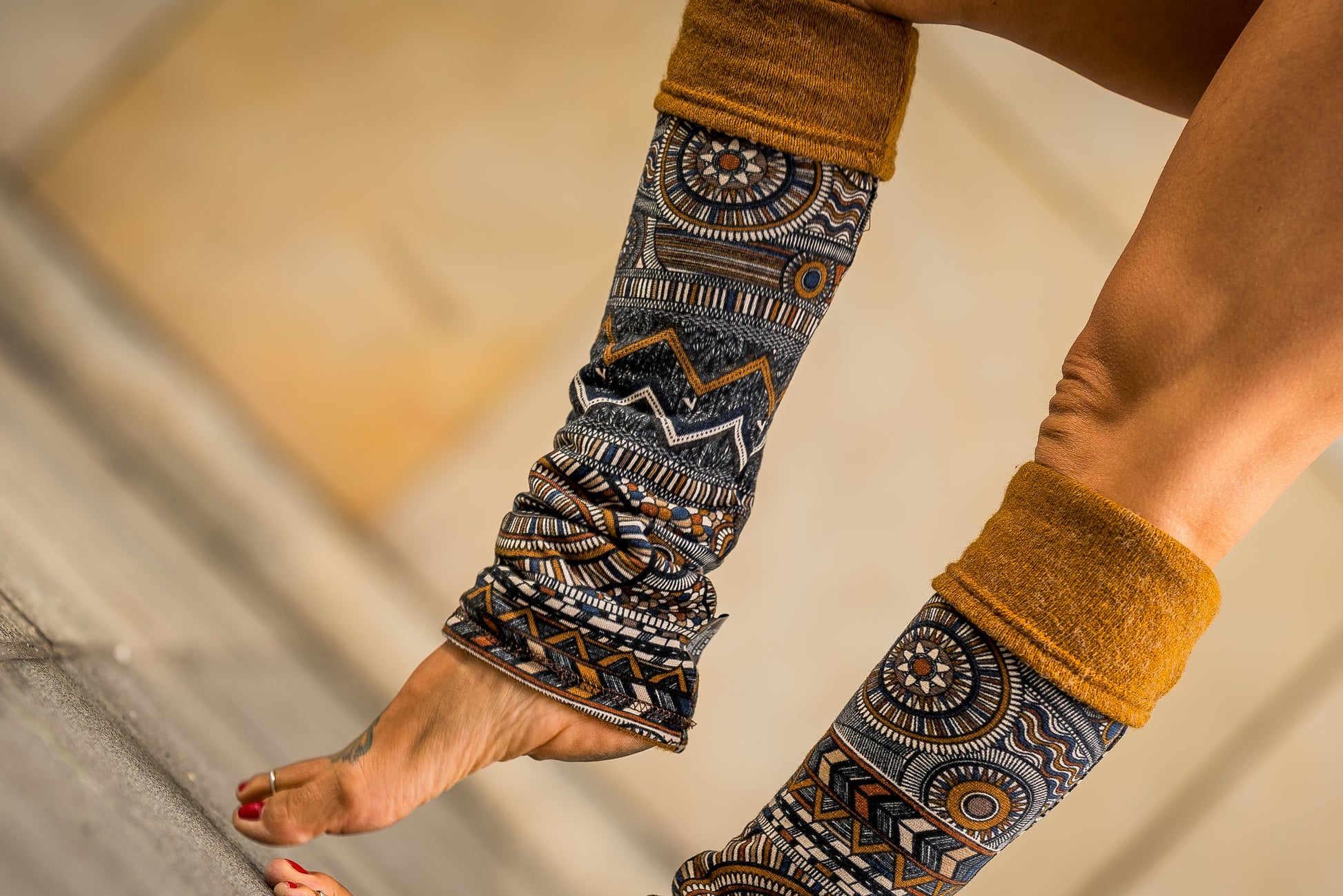 Boho Wendestulpen – Beinstulpen, Yoga & Tanz Stulpen, 4-in-1 Legwarmers Damen in beige/ gemustert