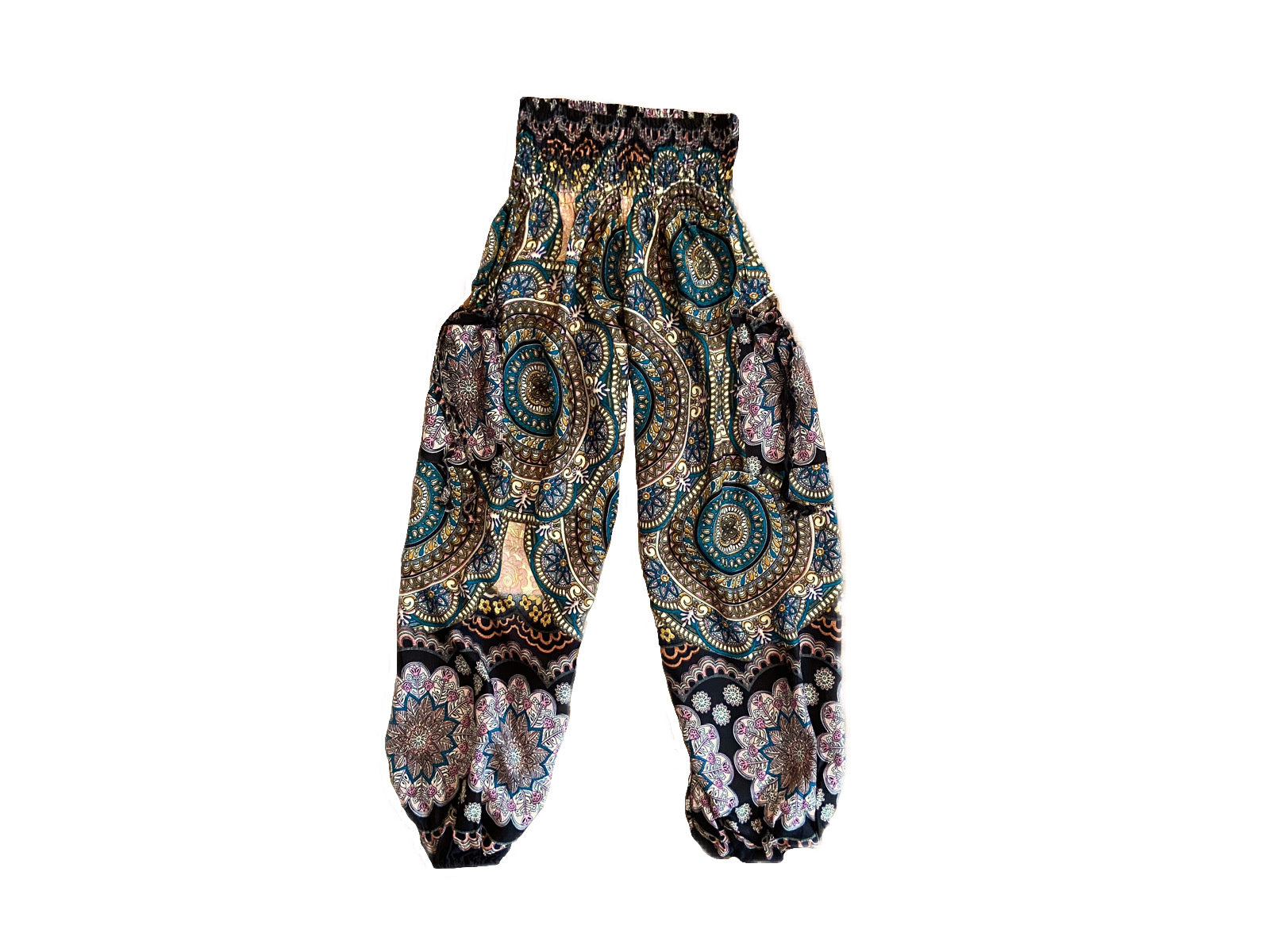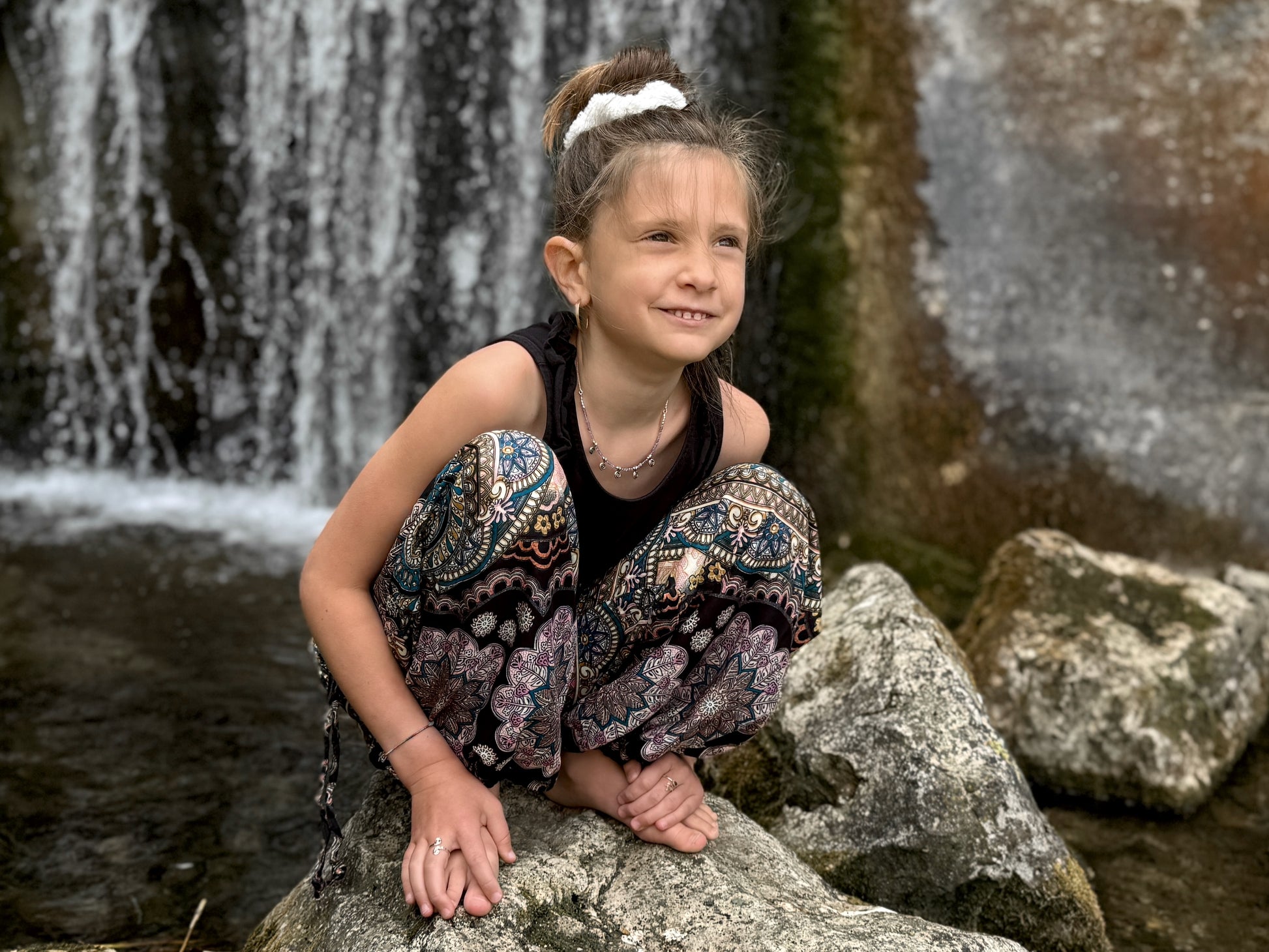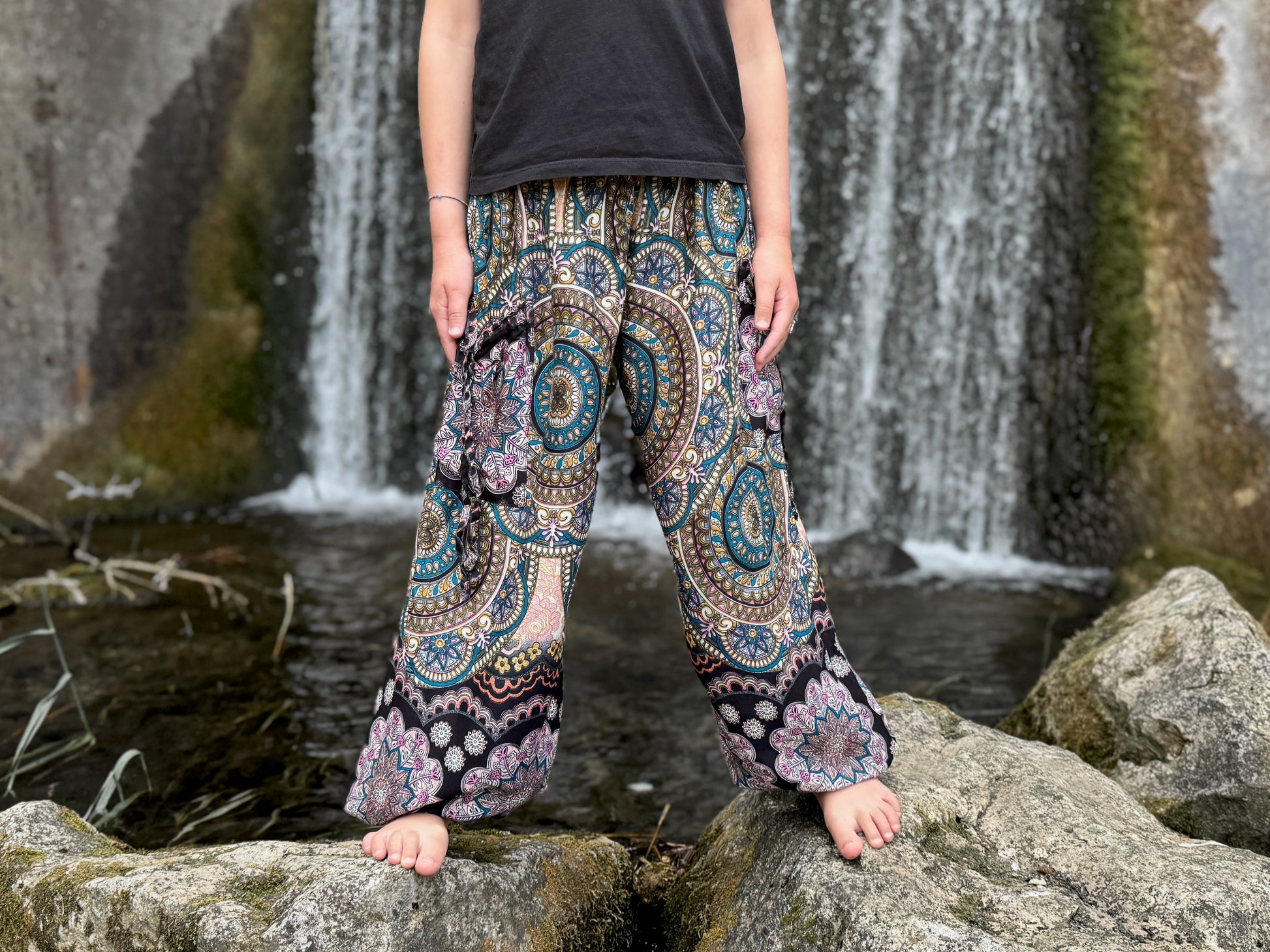 bunt schwarz gemusterte leichte Pluderhose für Kinder