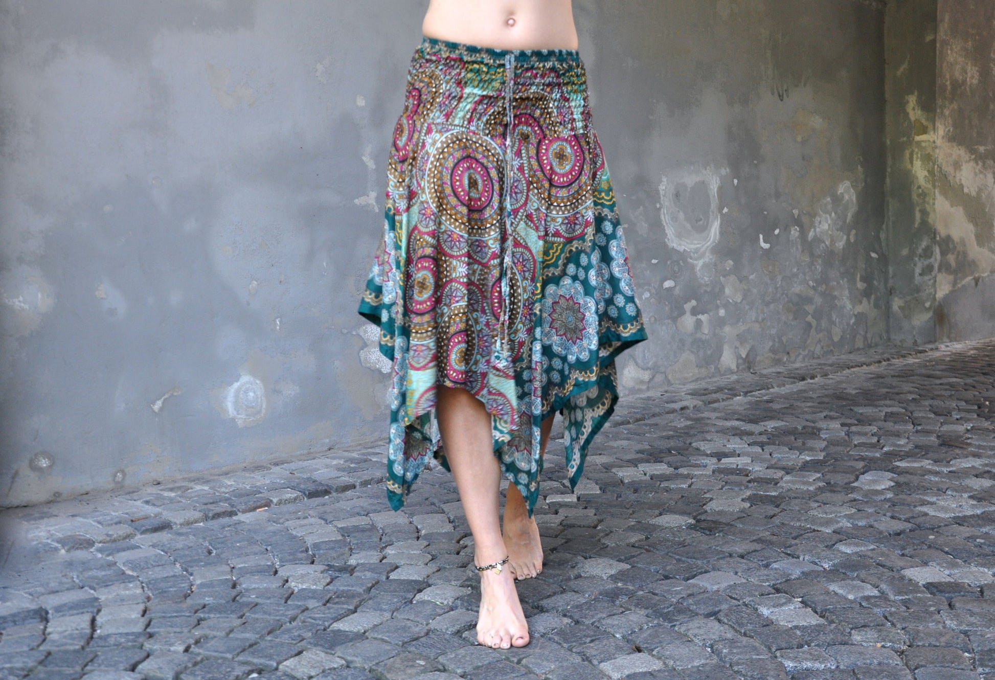 bunter gemusterter Rock mit Fransen, Sommerkleid, Elfenkleid, Zipfelrock, Fransenrock