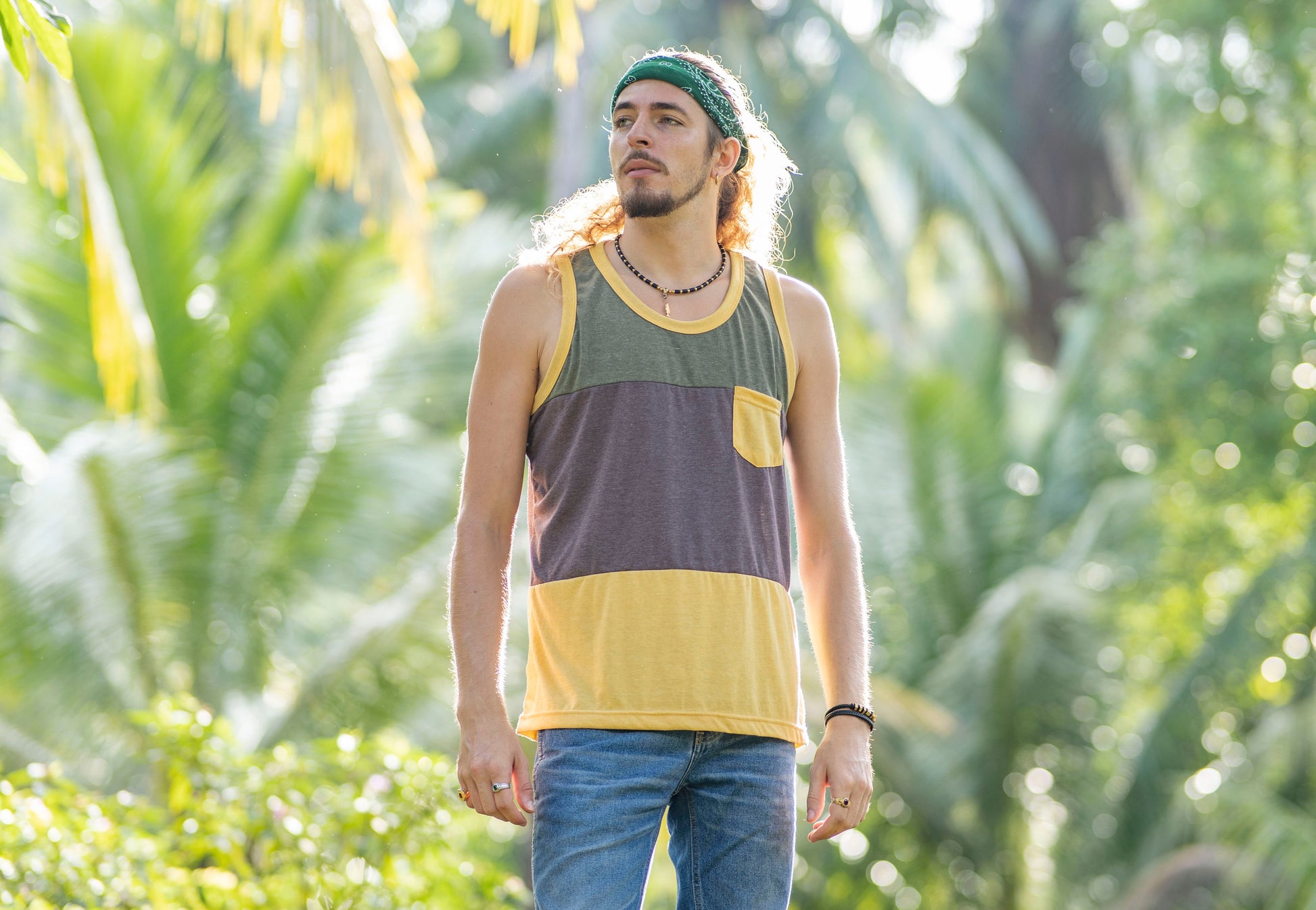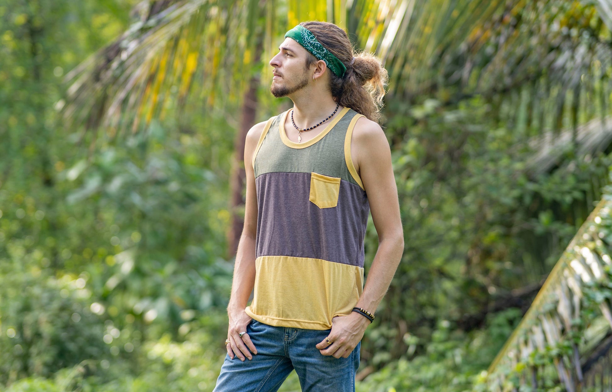 dreifarbiges Tanktop mit Brusttasche für Männer in gelb