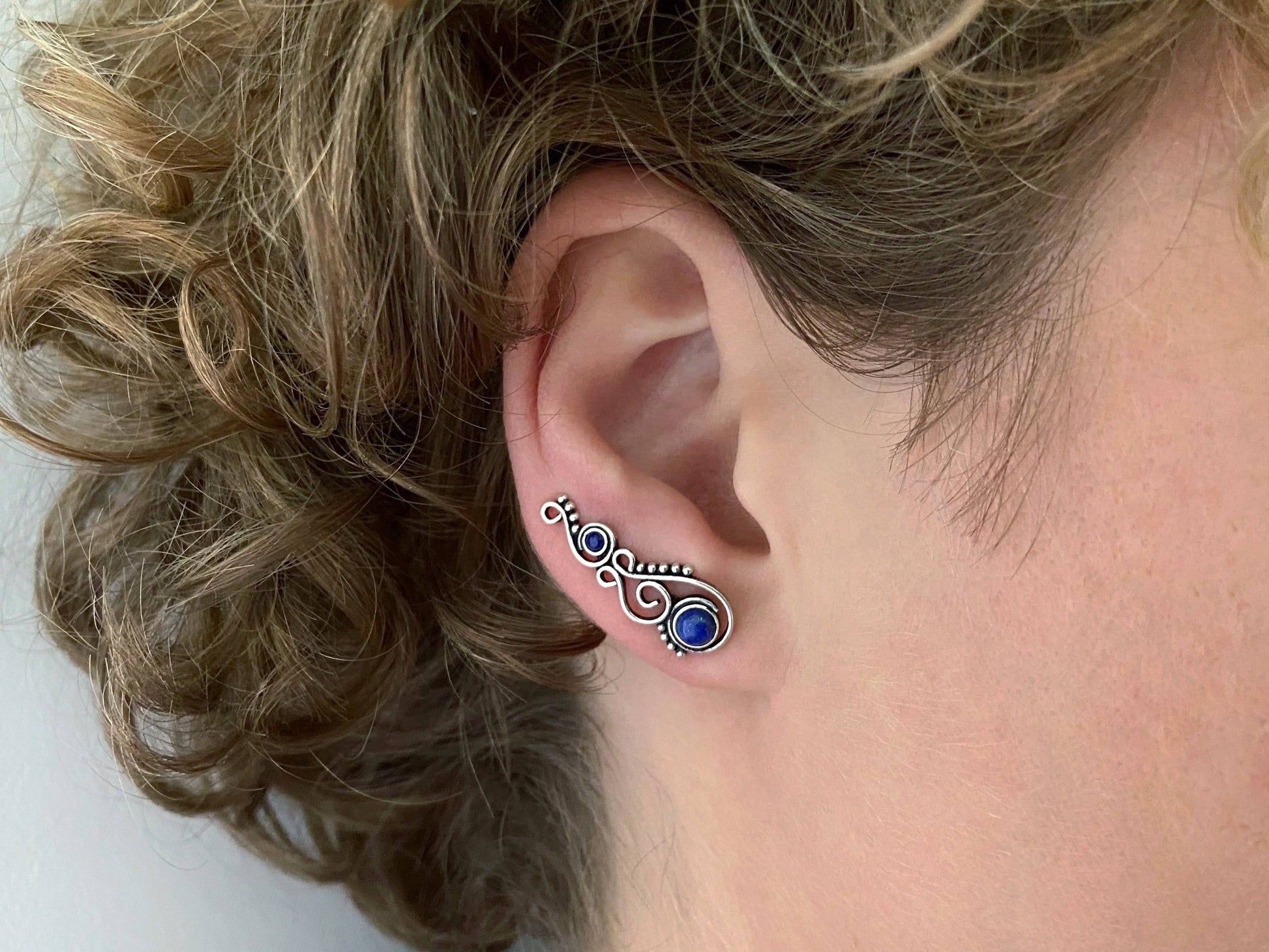 Earclimber Ohrringe mit Lapislazuli Steinen aus Silber