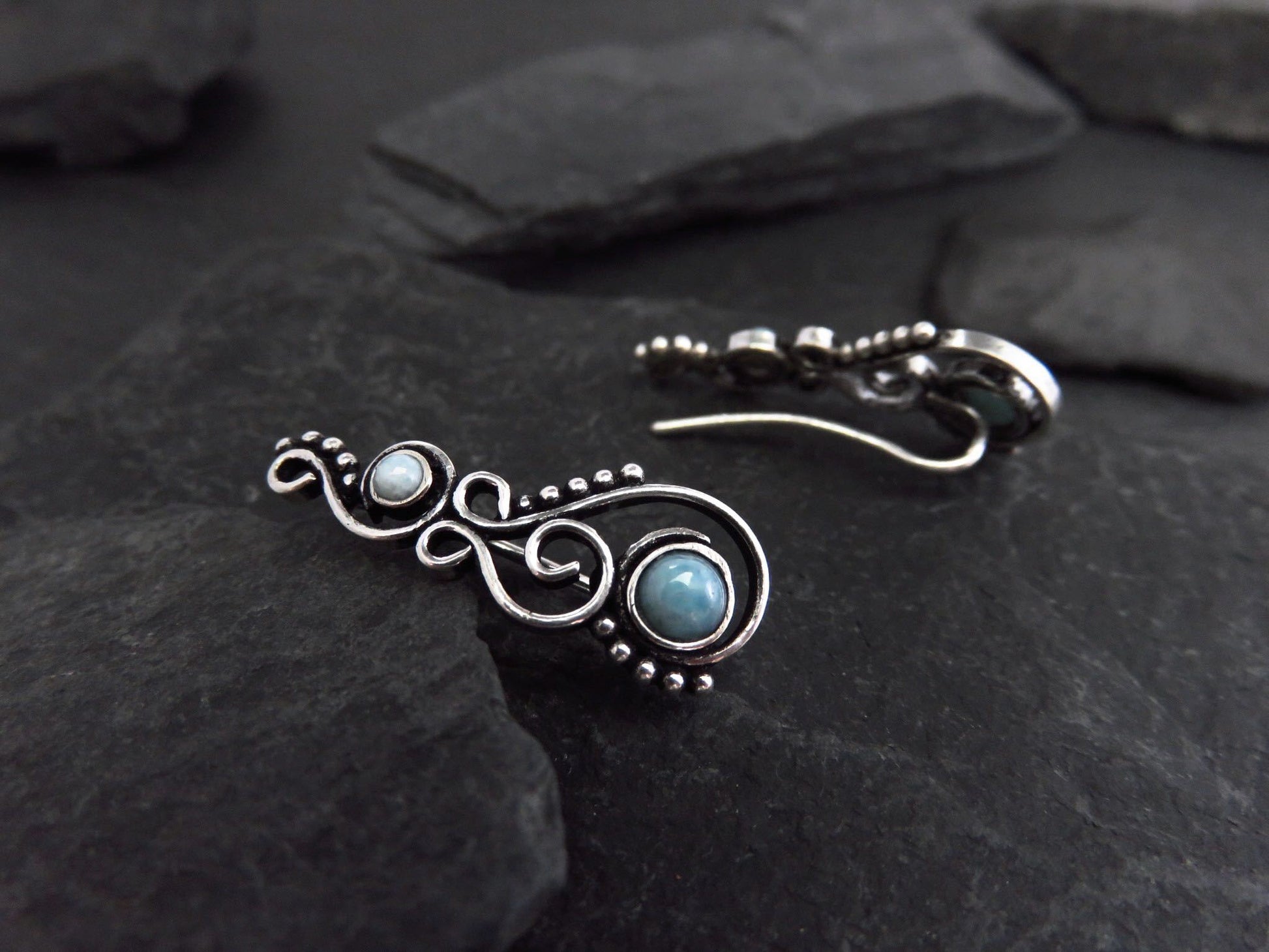 Earclimber Ohrringe mit Larimar Steinen aus Silber