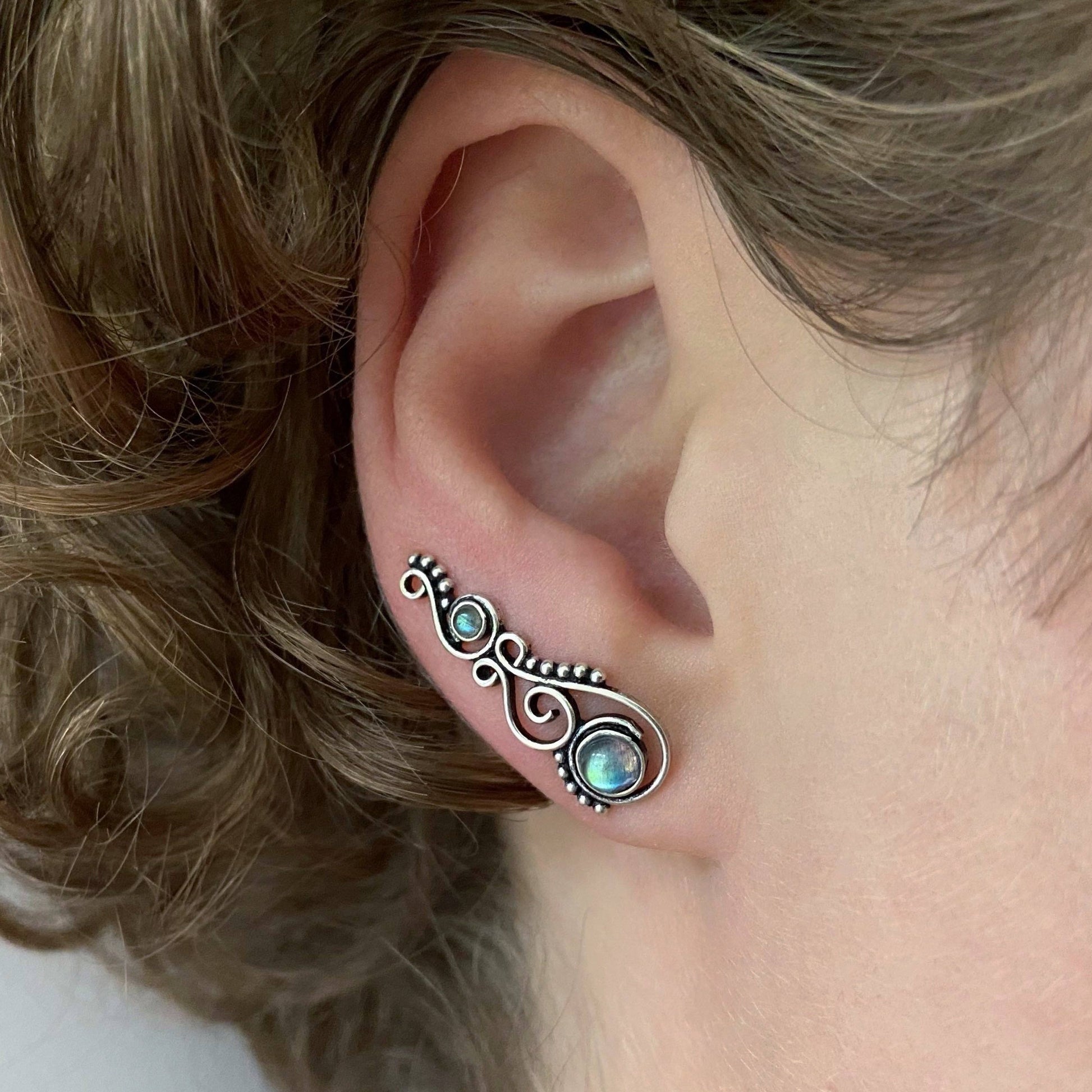 Earclimber Ohrringe mit Labradorit Steinen aus Silber
