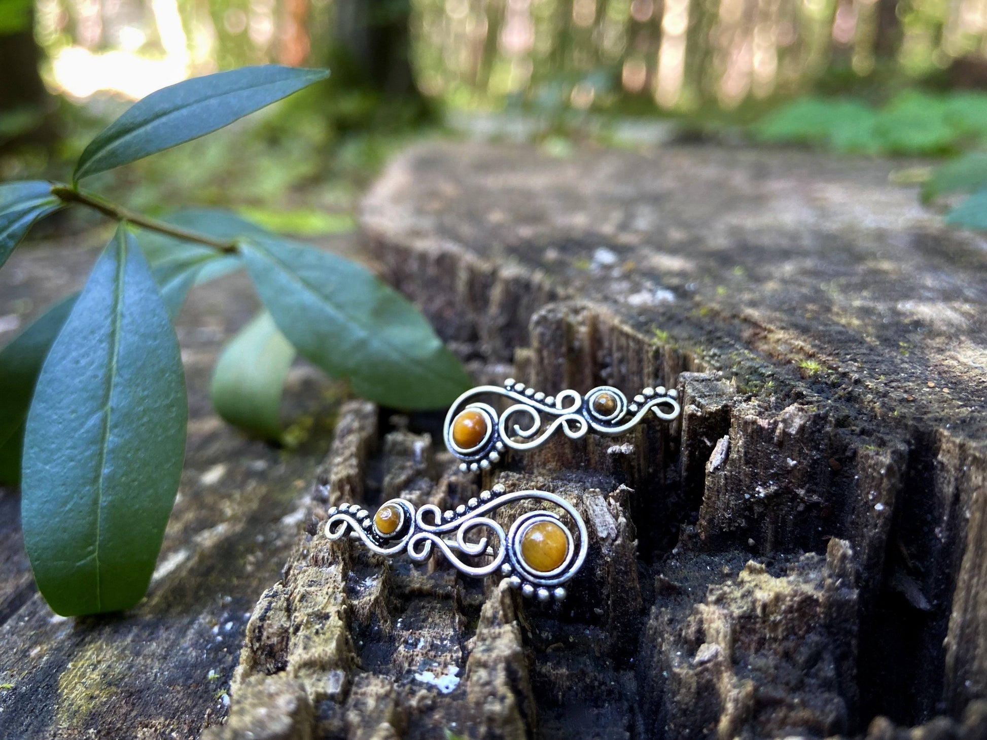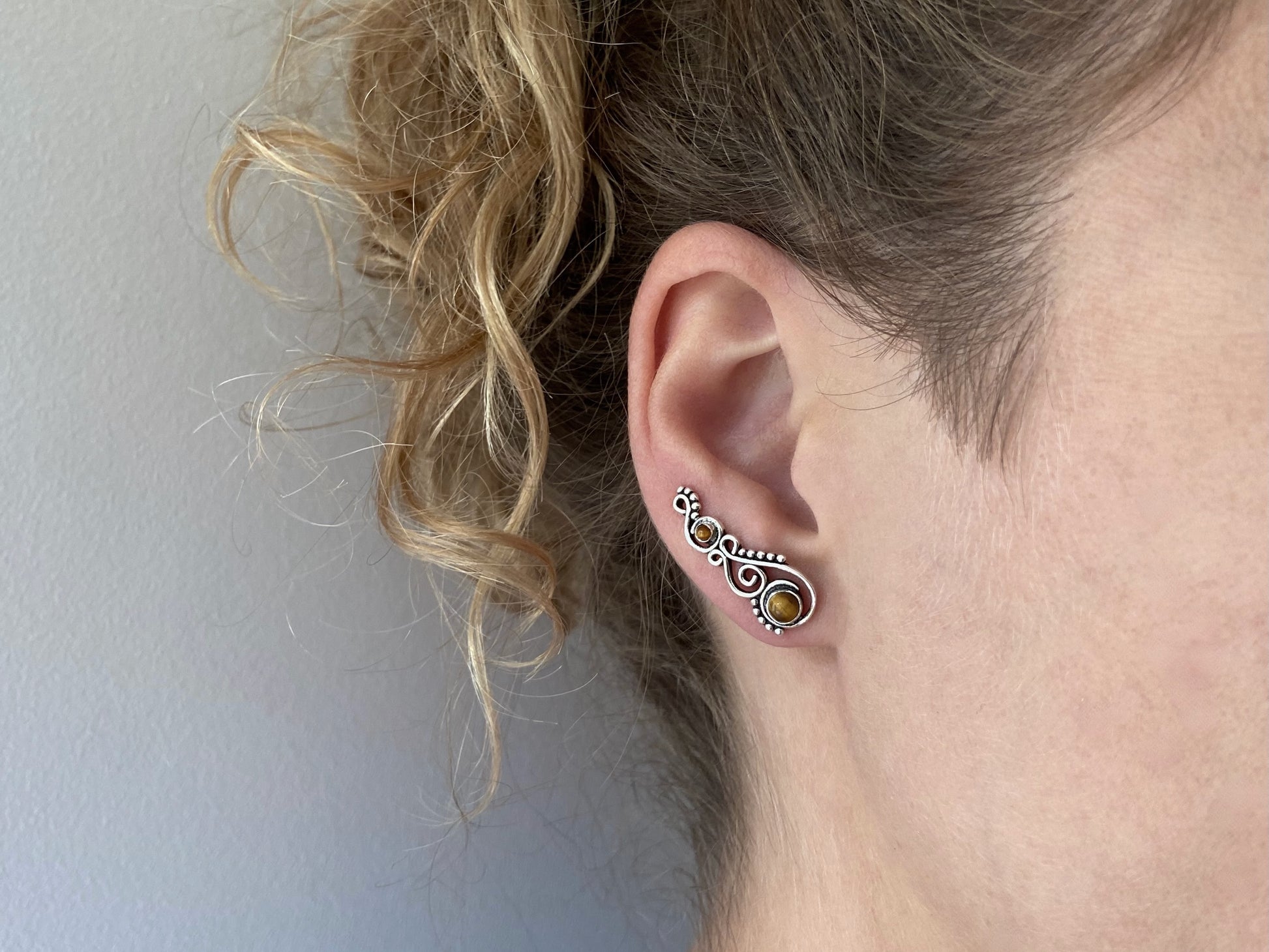Earclimber Ohrringe mit Tigerauge Steinen aus Silber