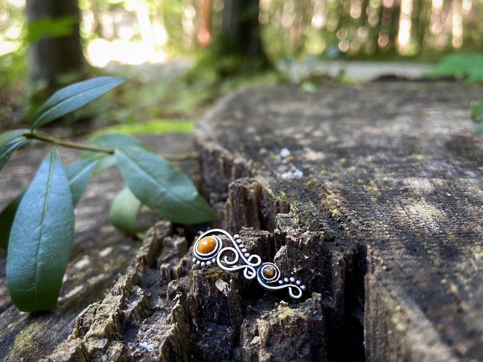 Ohrspange mit Spiralen, Pünktchen und Steinen aus Silber