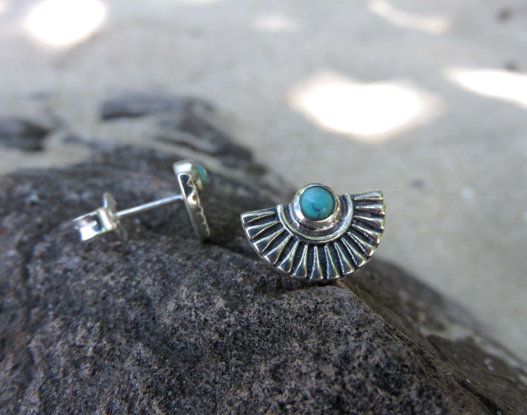 fächerförmige Ohrstecker mit Türkis aus Silber