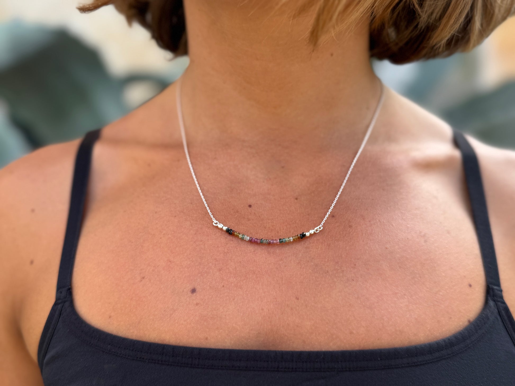 Feine Silberkette mit echten facettierten Tourmalinen– zarte Edelstein-Kette Damen, handgefertigt