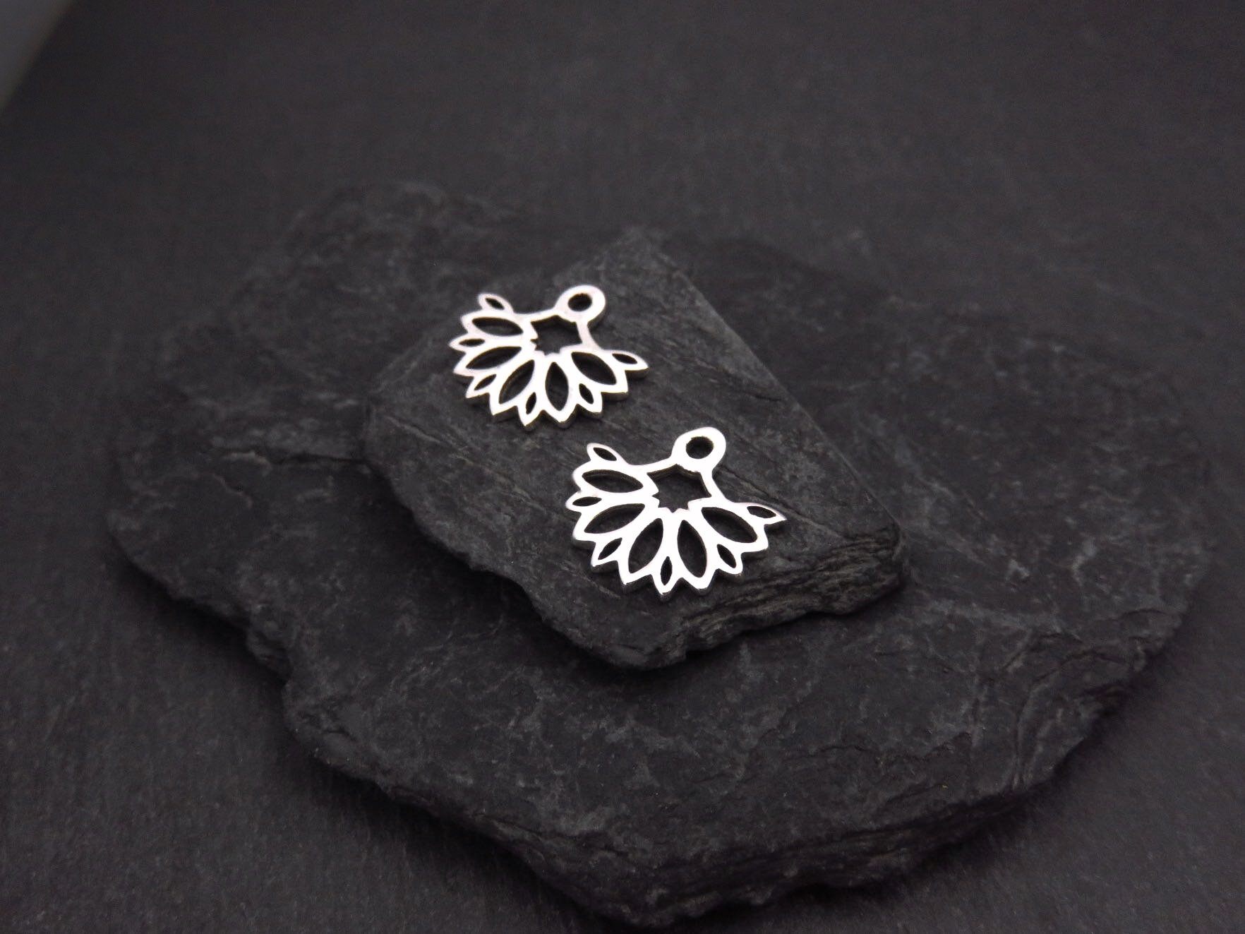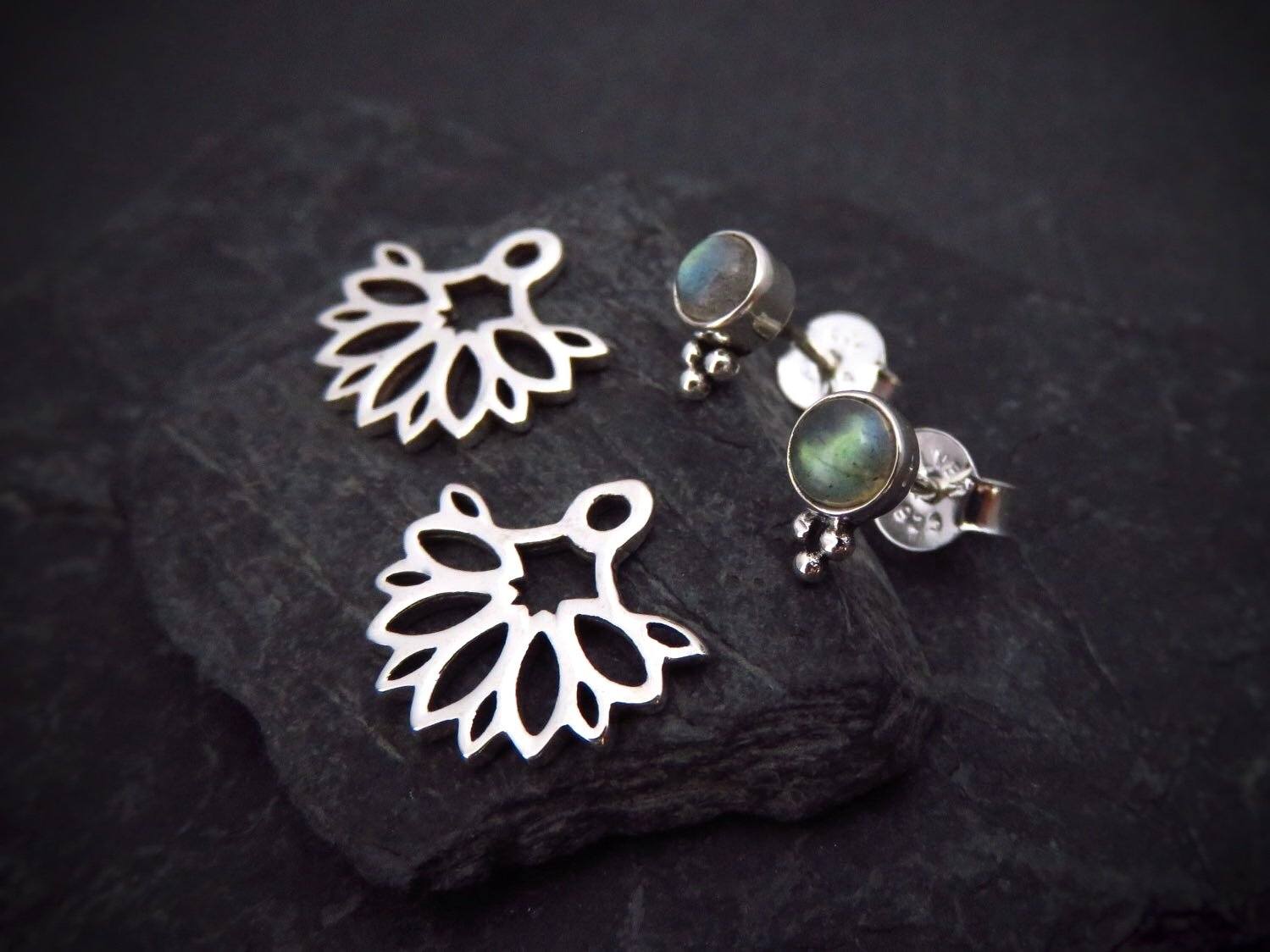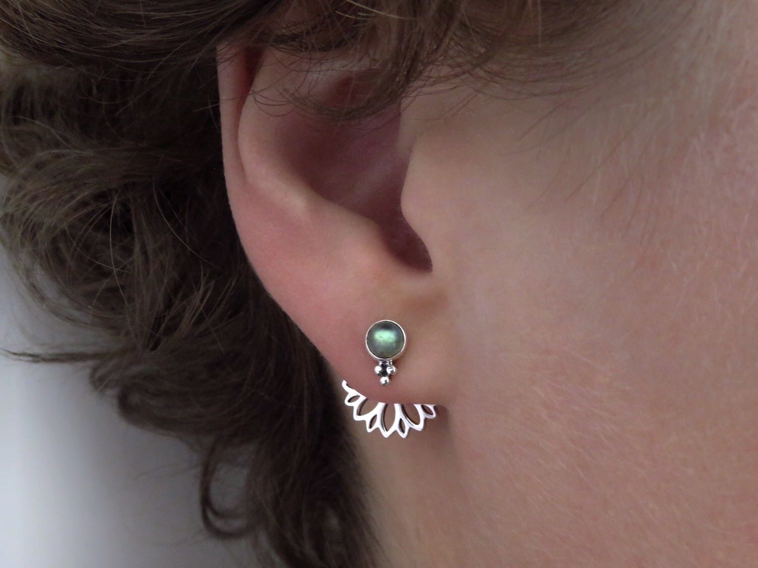 Diese Ohrstecker können variabel getragen werden. Eine Option ist nur den kleinen Stecker ohne Aufsatz zu tragen. Dann gibt es die Möglichkeit den Aufsatz hinter dem Ohr, sowie davor einzusetzen. Der Aufsatz kann auch mit anderen schon vorhandenen Ohrsteckern kombiniert werden.
