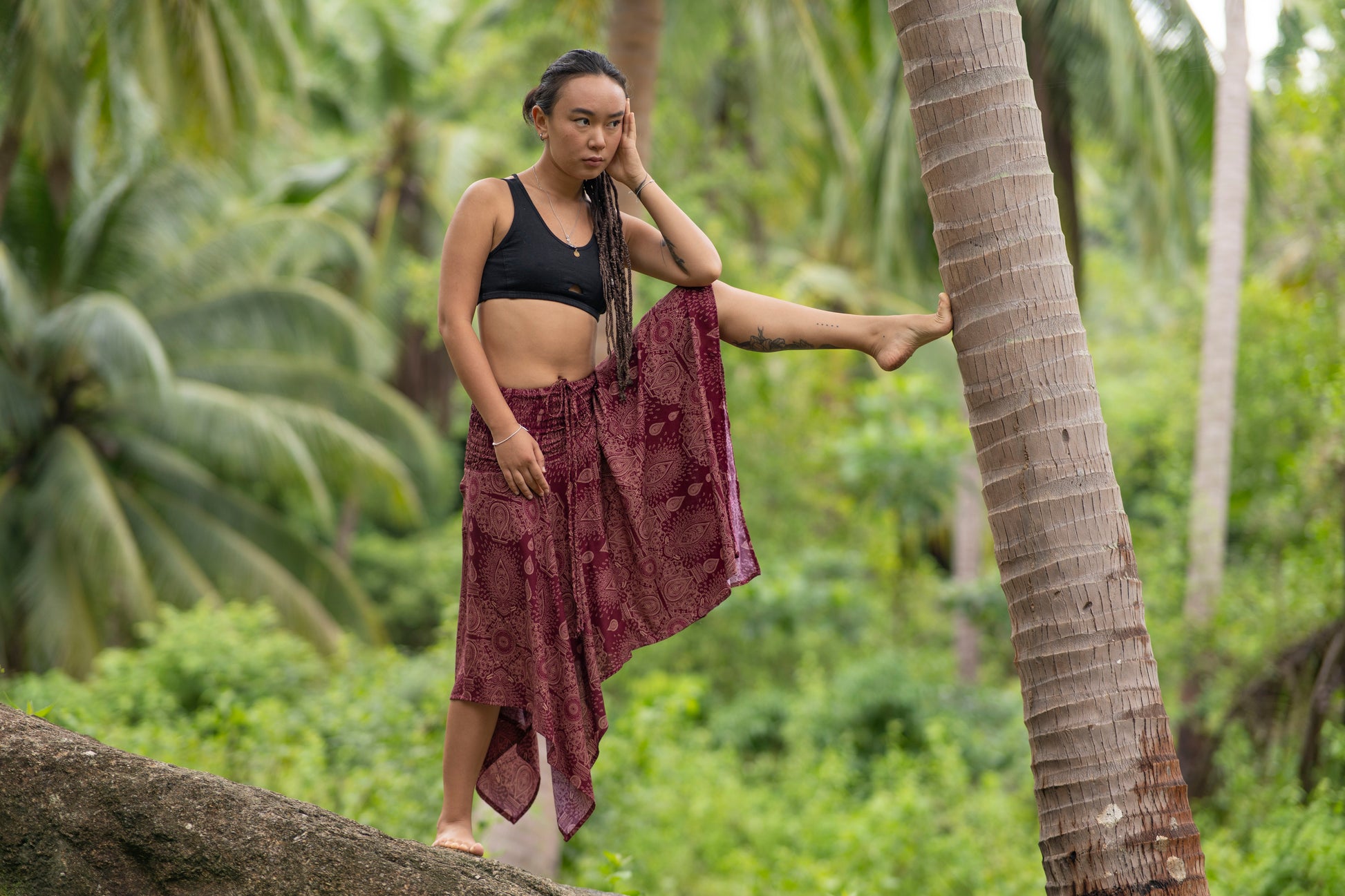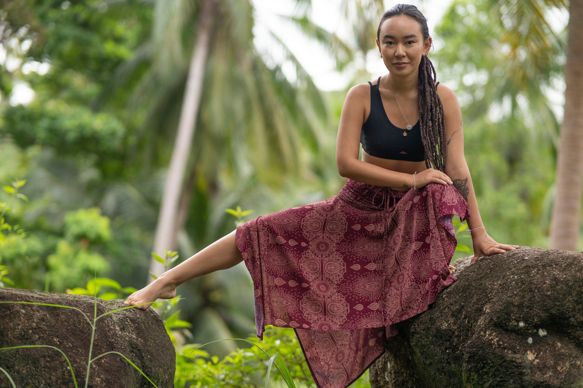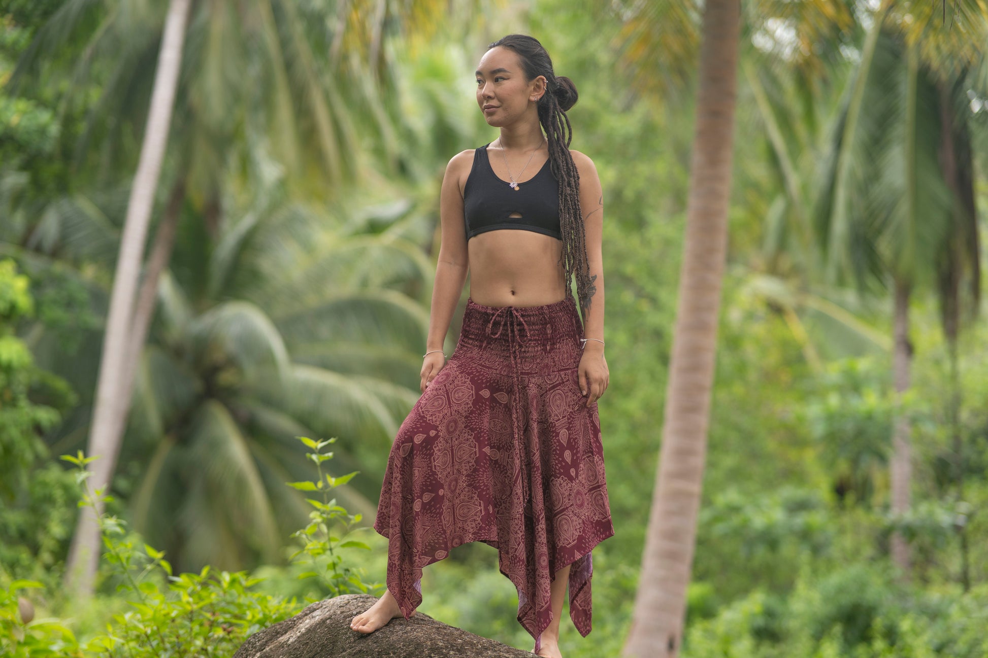 gemusterter Rock mit Fransen, Sommerkleid, Elfenkleid, Zipfelrock, Fransenrock in rot mit filigranem Muster