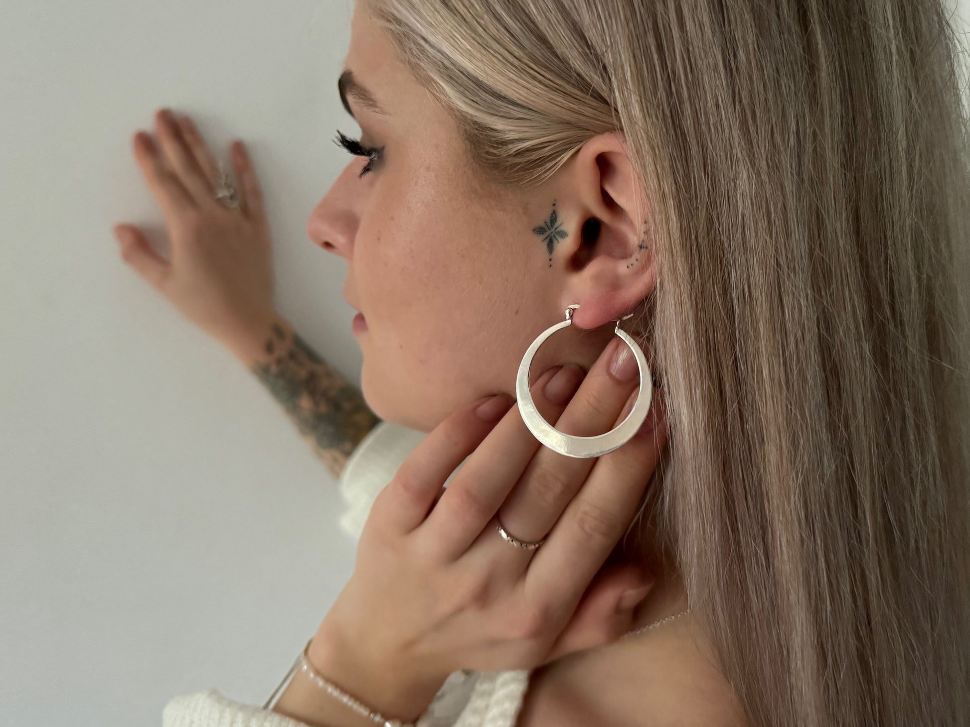 große gewölbte Ohrringe mit detailliertem Muster aus Silber