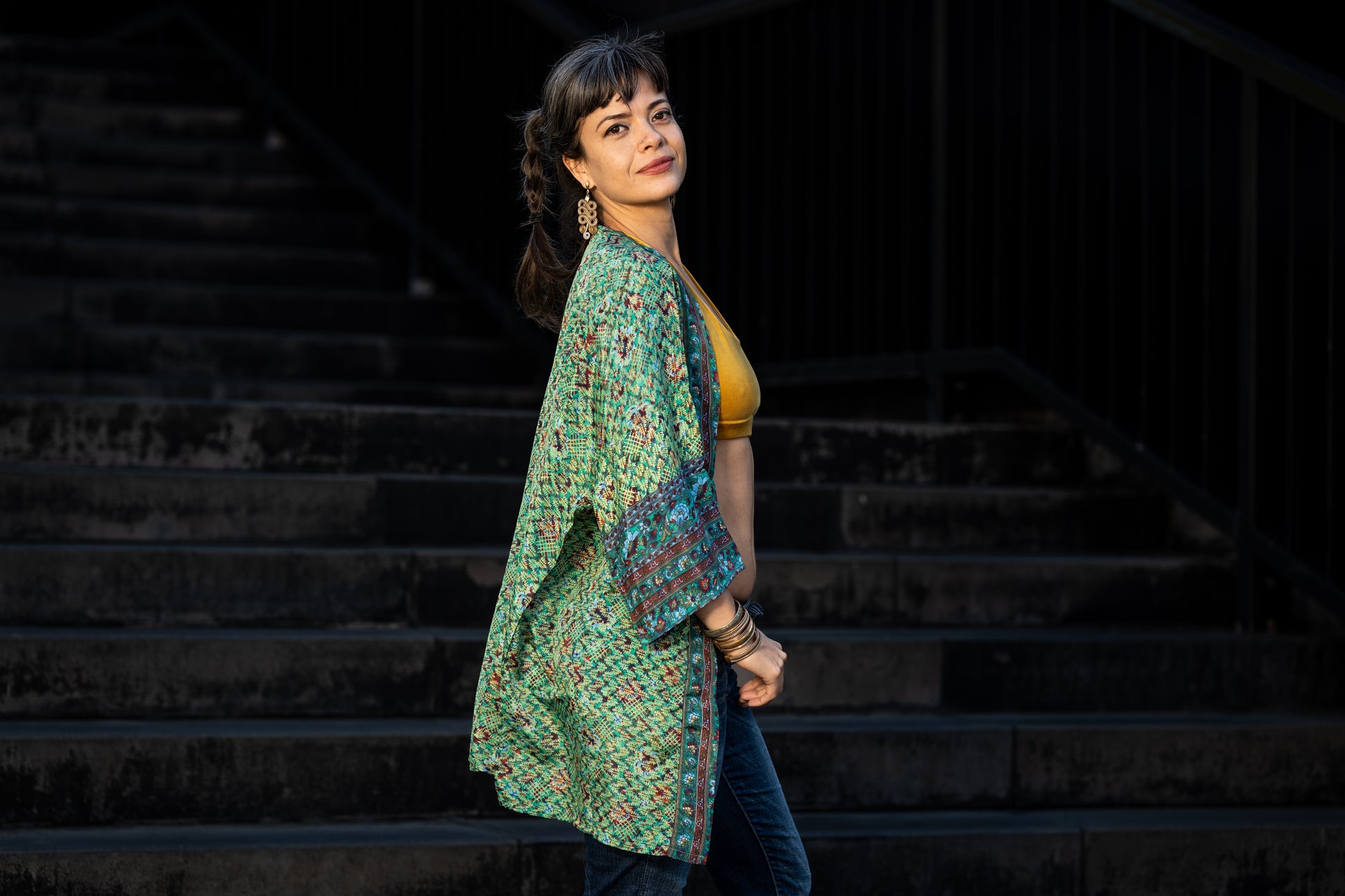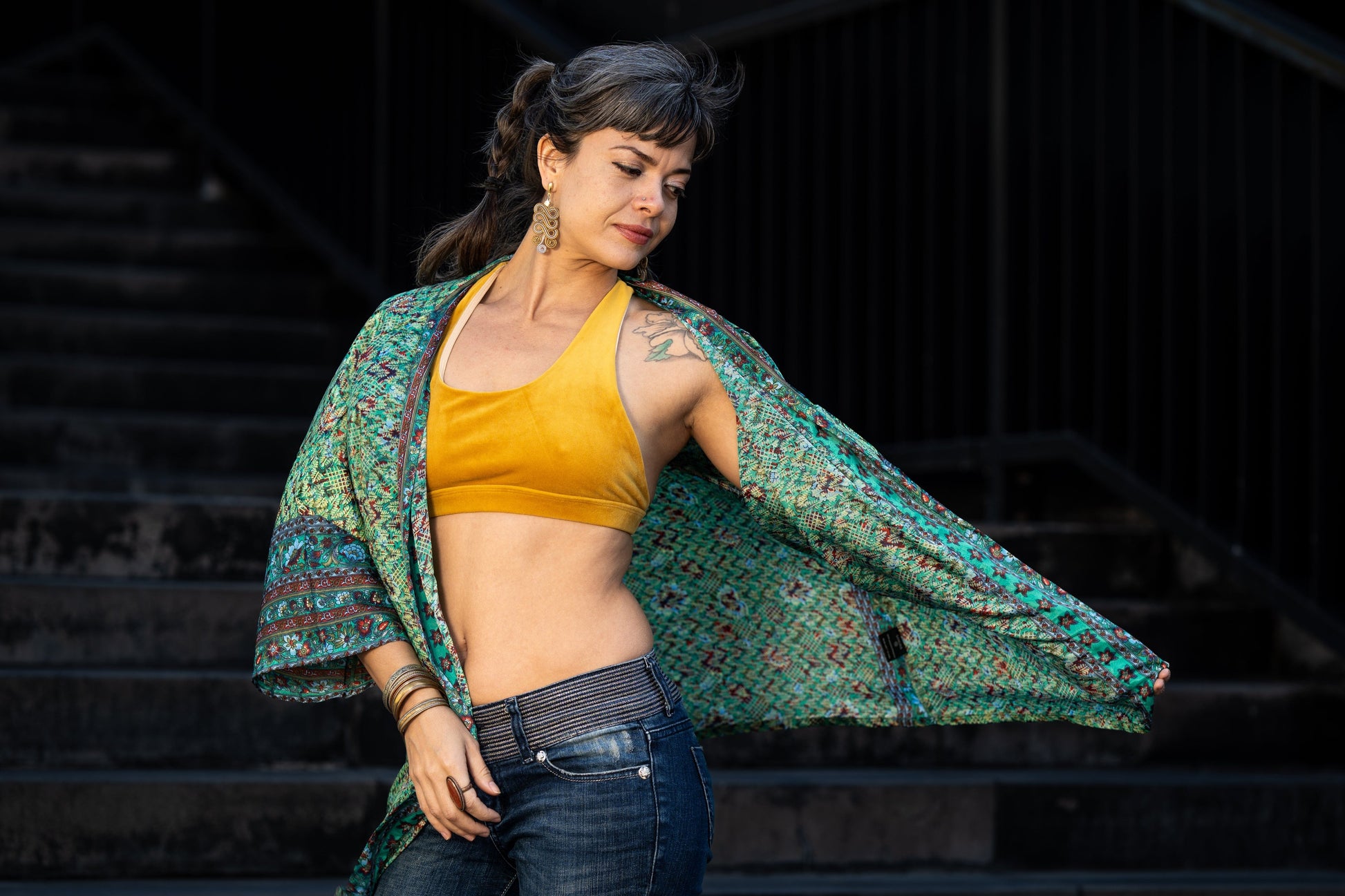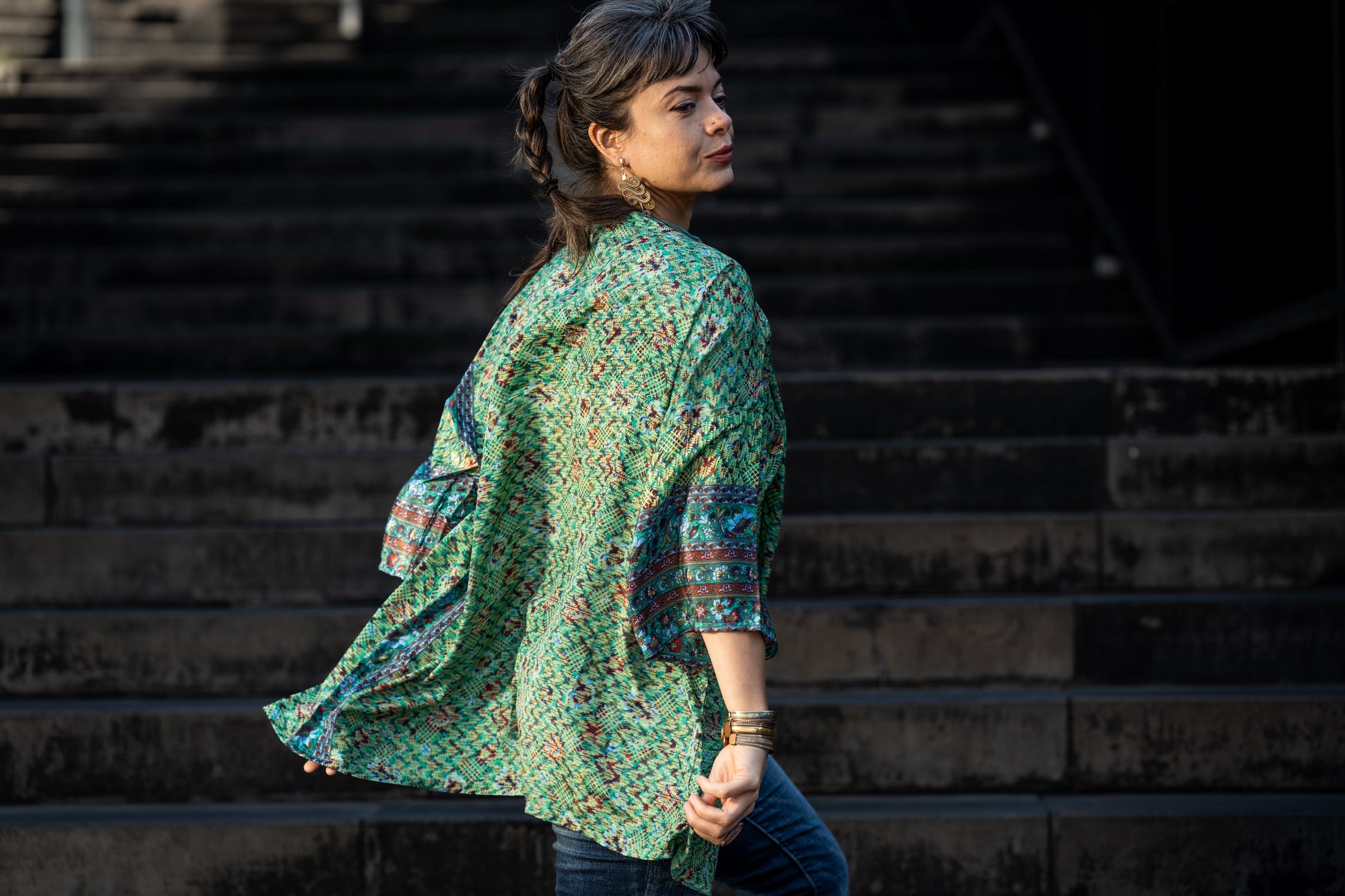grün blau rot gemusterter Kimono, Bluse, Überwurf, leichte Jacke