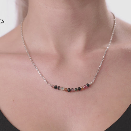 Kette mit kleinen Turmalin Steinchen aus Silber