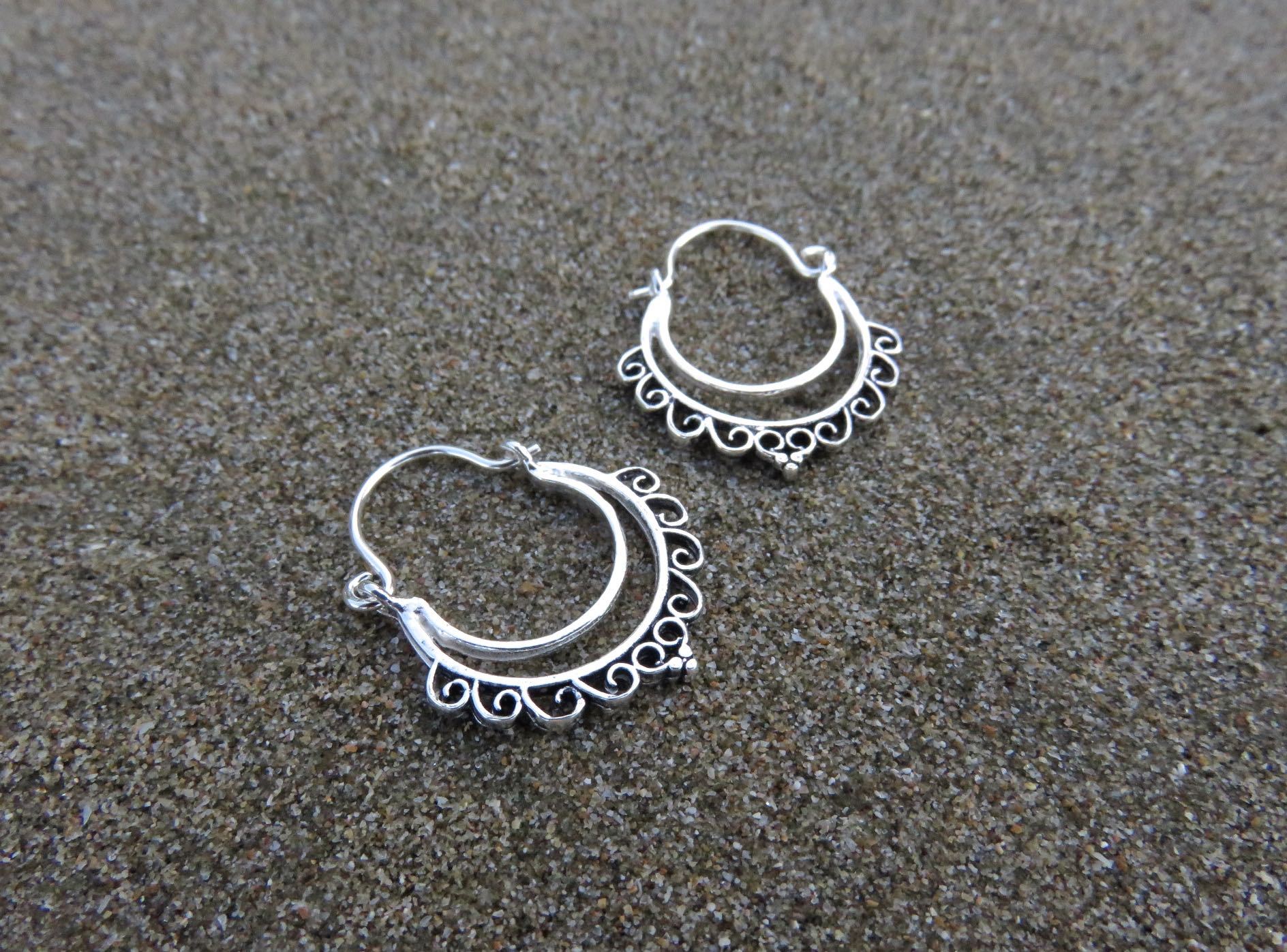 kleine Creolen mit filigranem Spiralmuster aus Silber