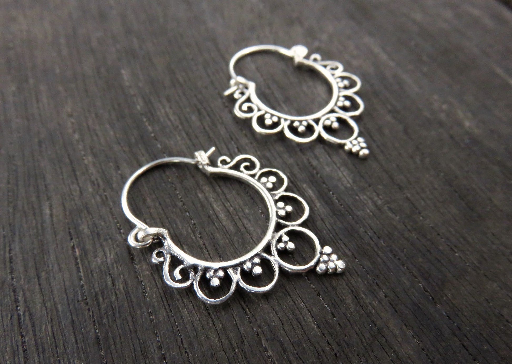kleine Creolen mit Kreisen und Pünktchen aus Silber