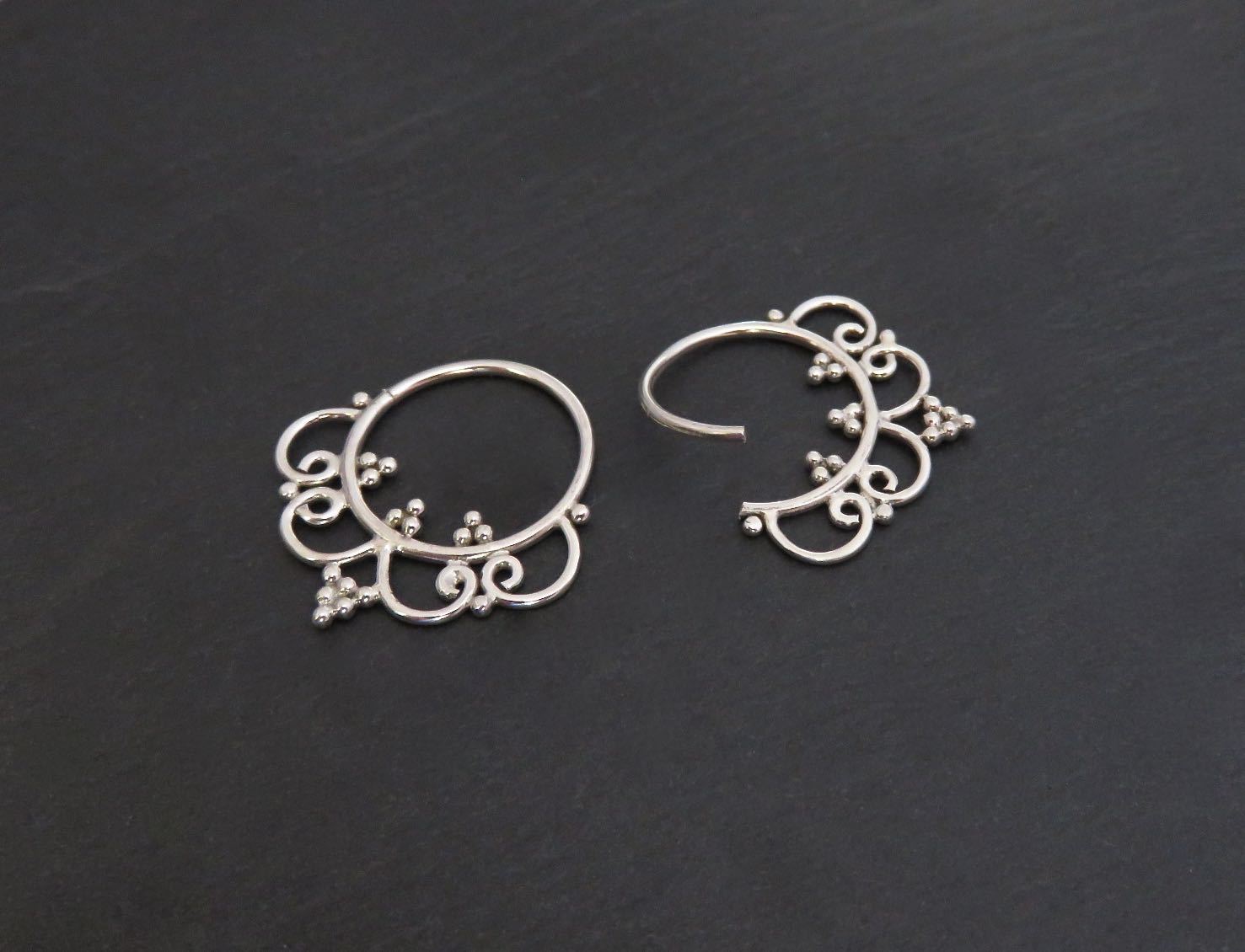 kleine Creolen verziert mit Punkten und Spiralen aus Silber