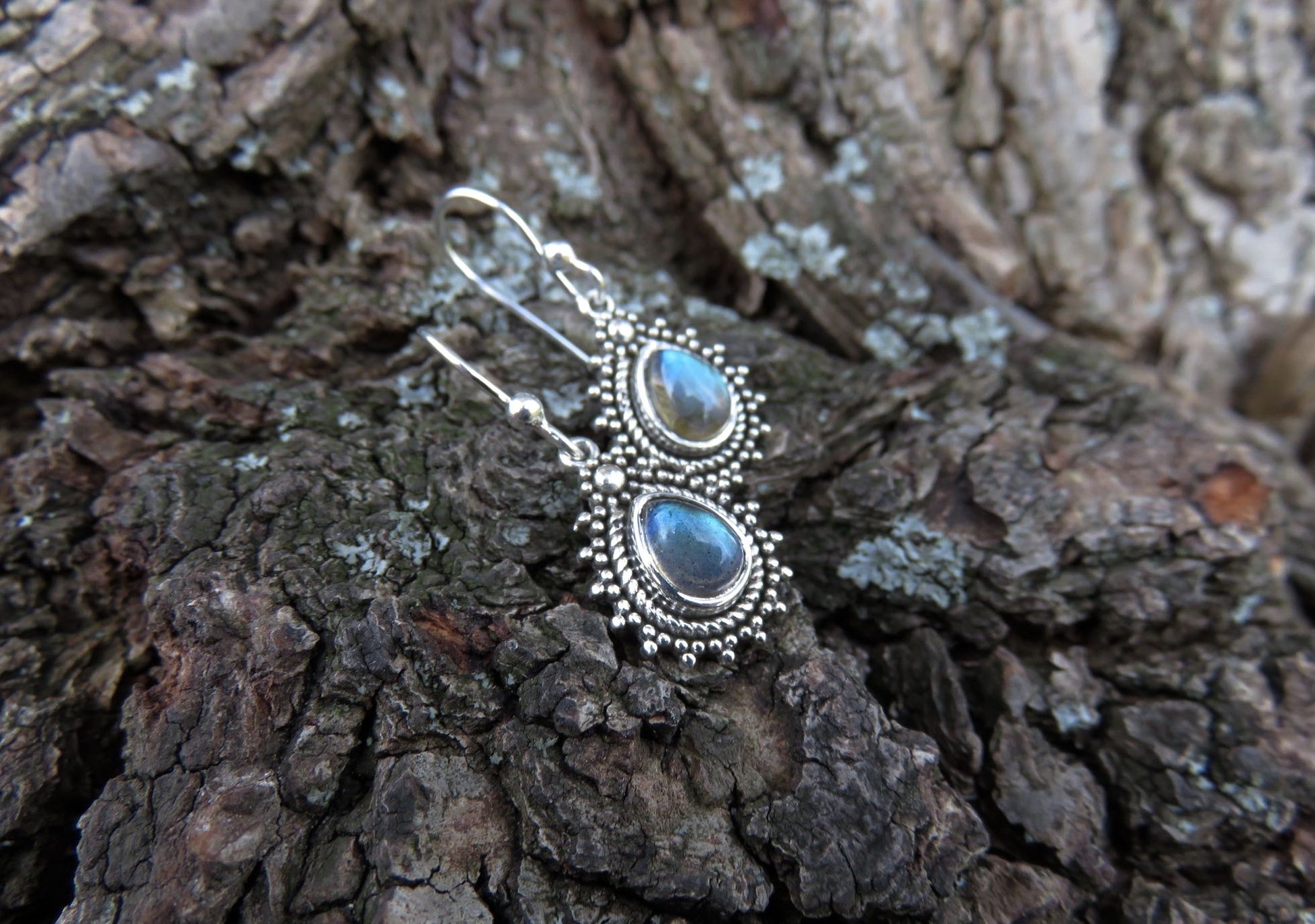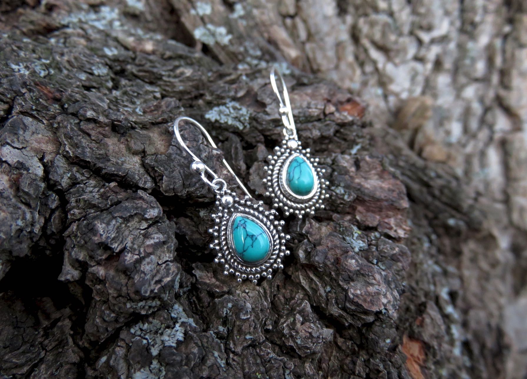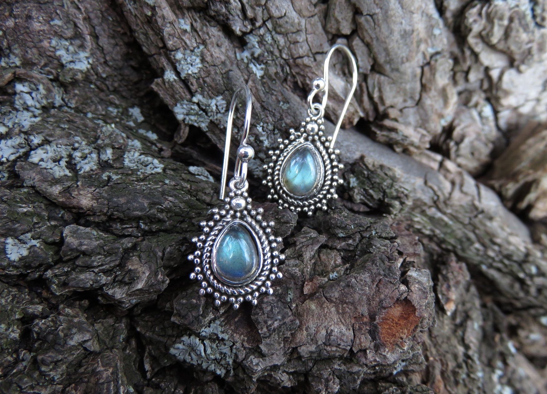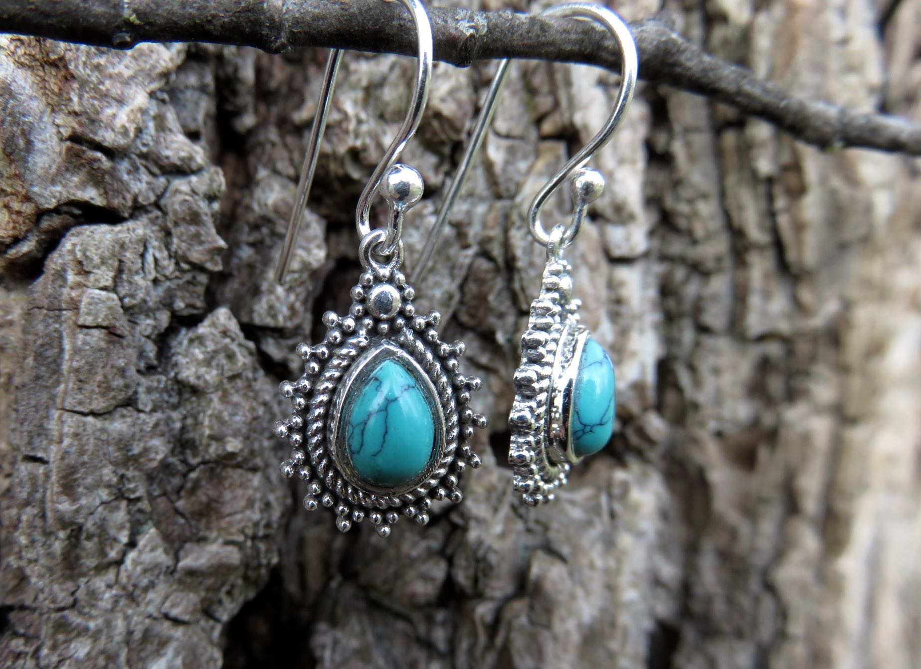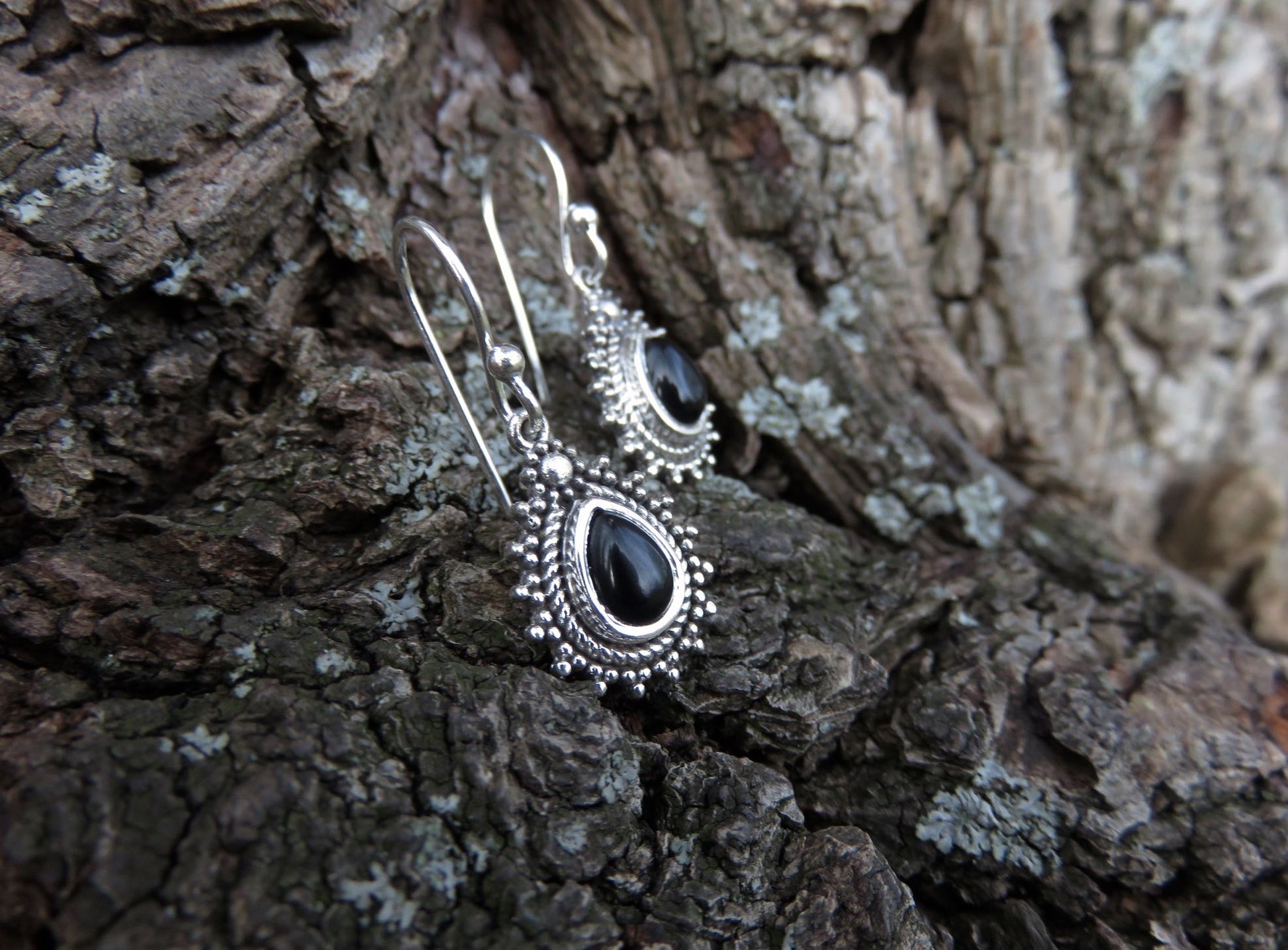 kleine Ohrringe aus Silber mit Stein in Tropfenform