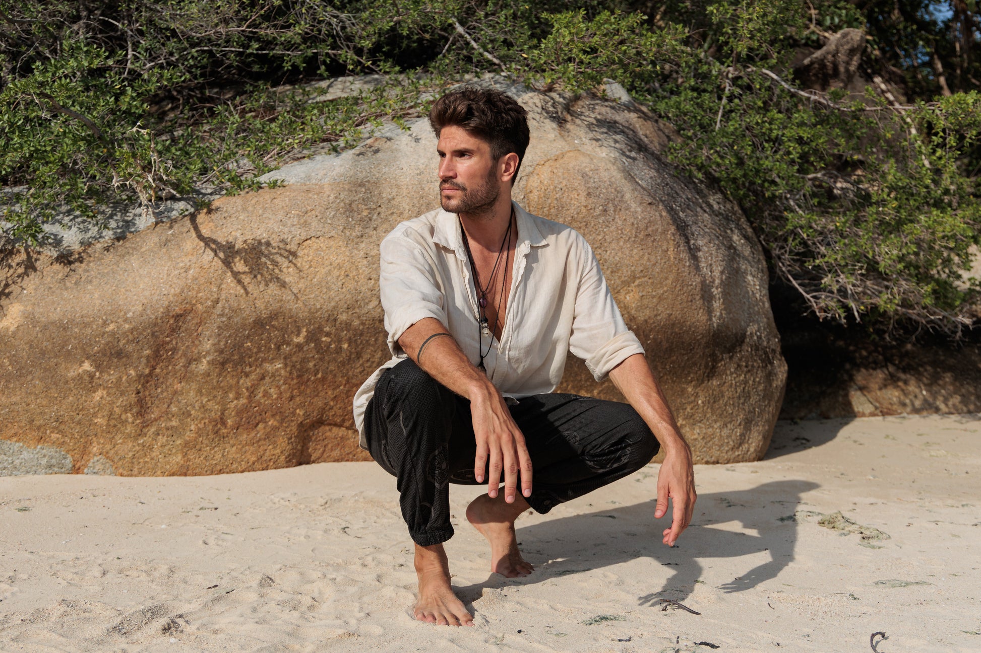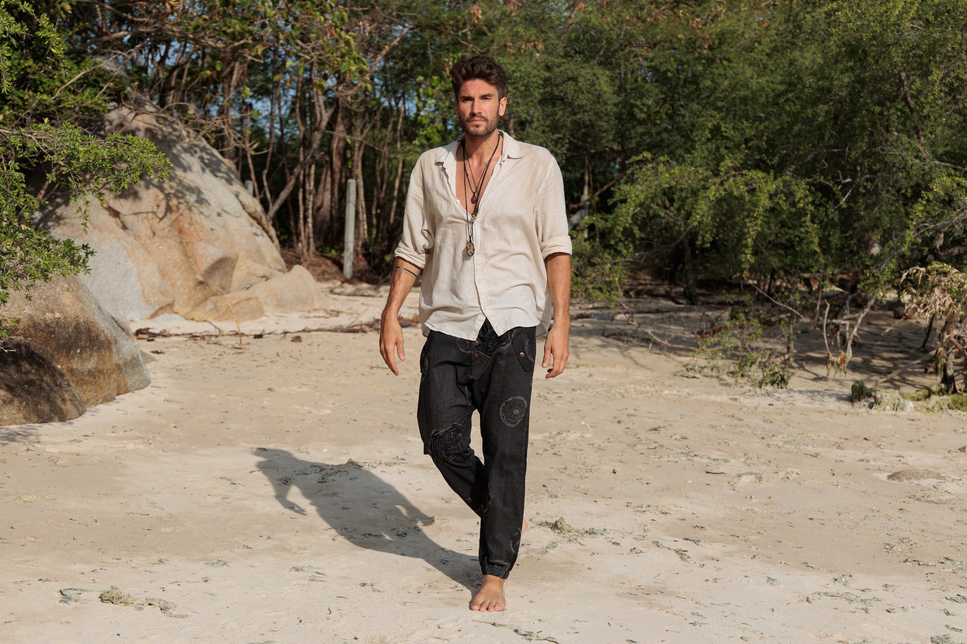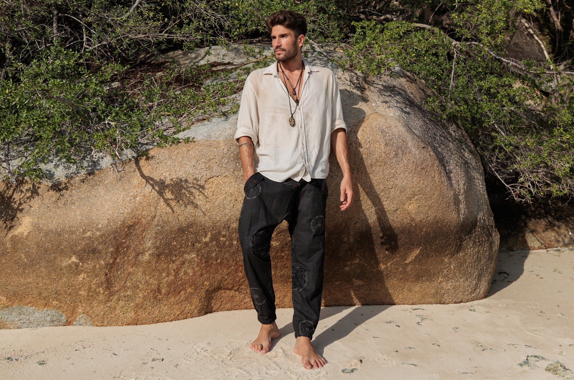 lange Pumphose für Männer aus Baumwolle schwarz gemustert Kreise