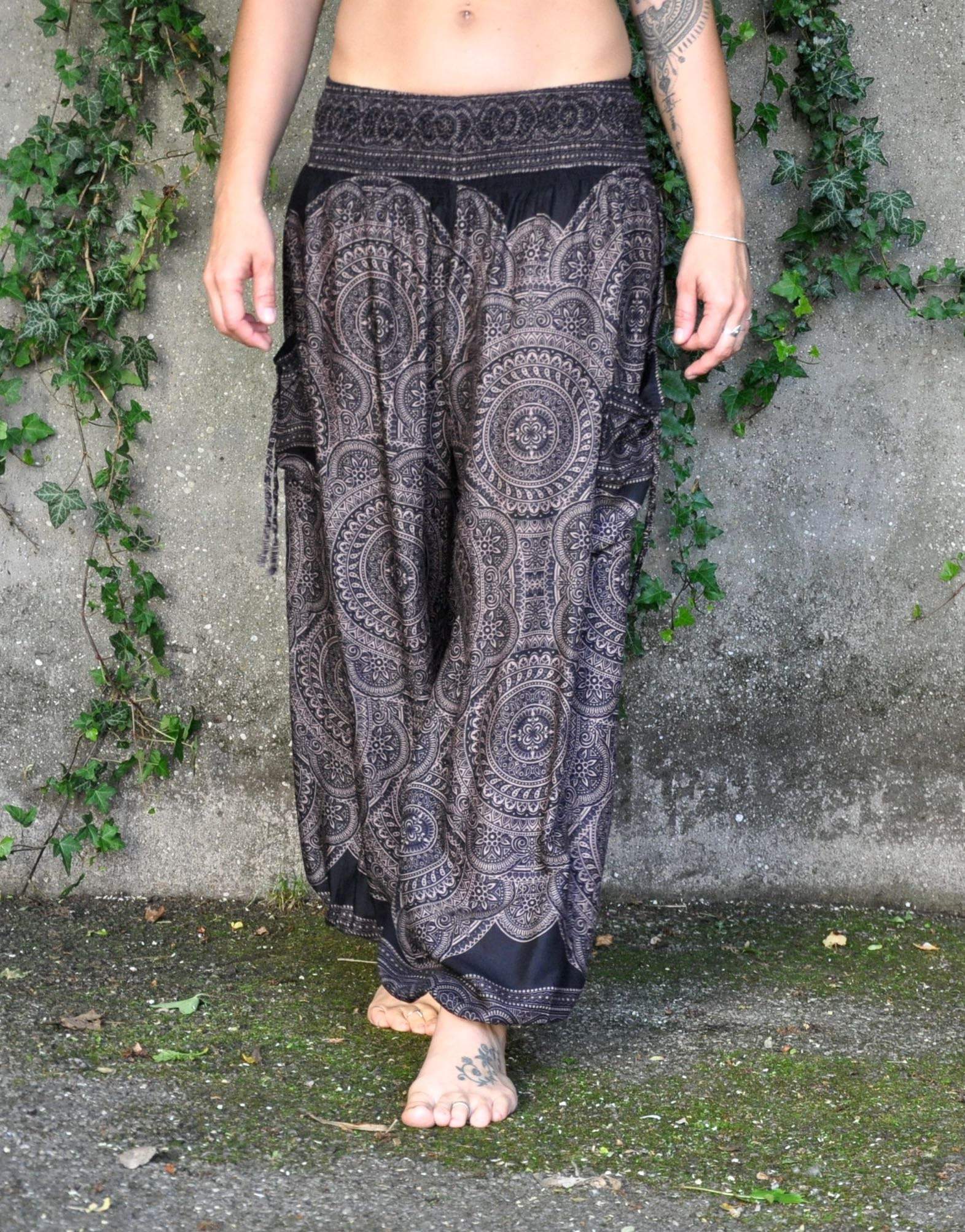 luftige Pluderhose mit Mandalamuster in schwarz mit Taschen