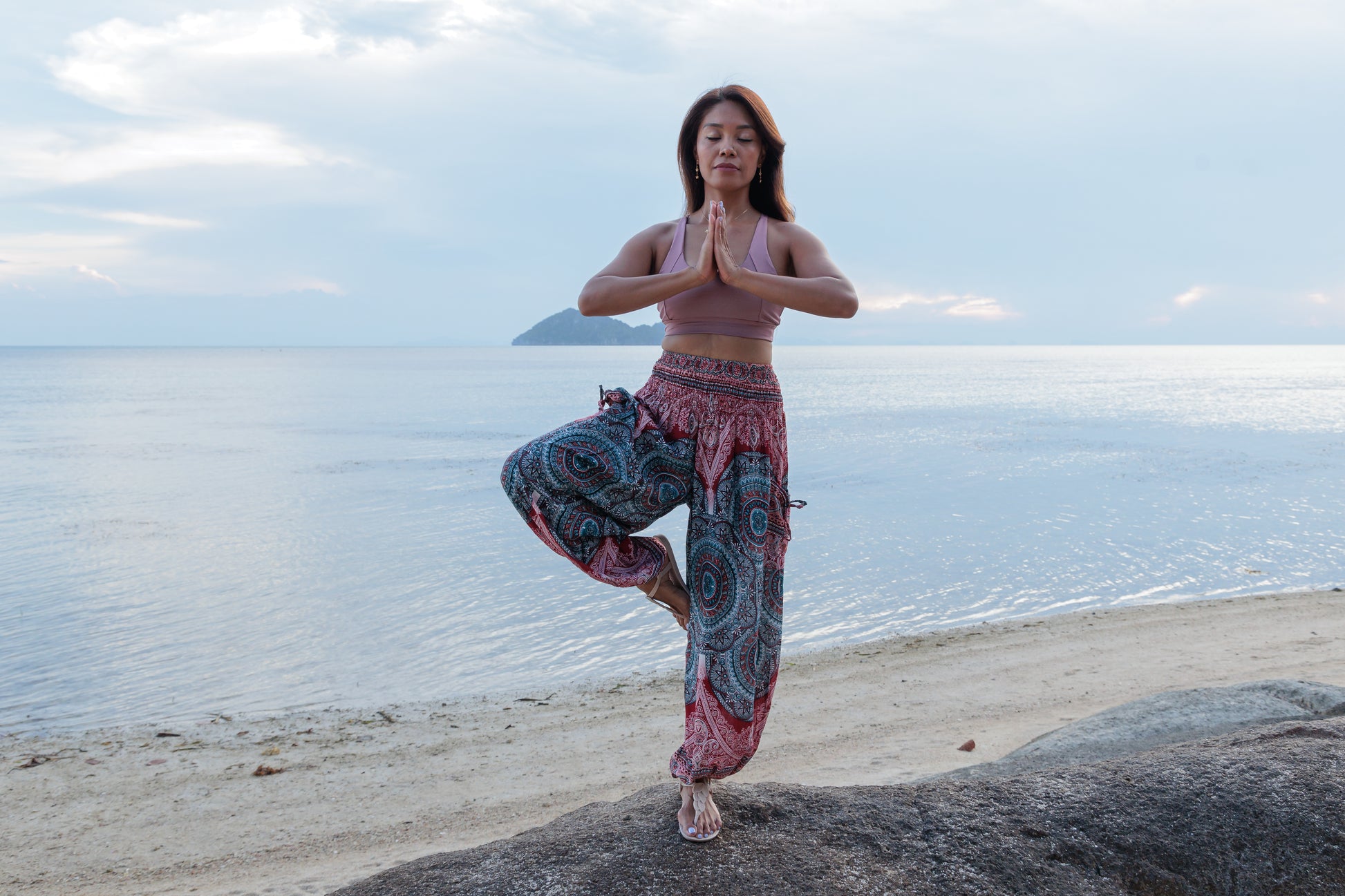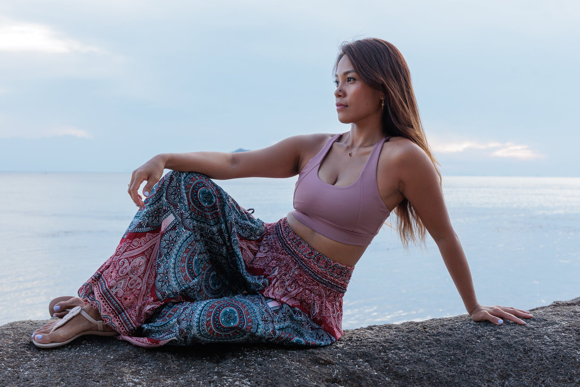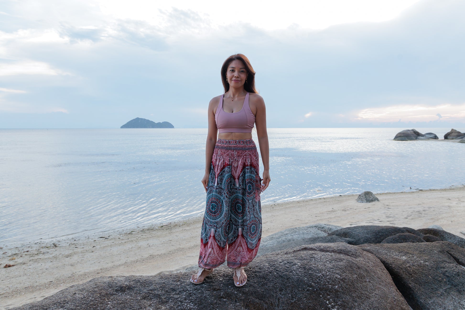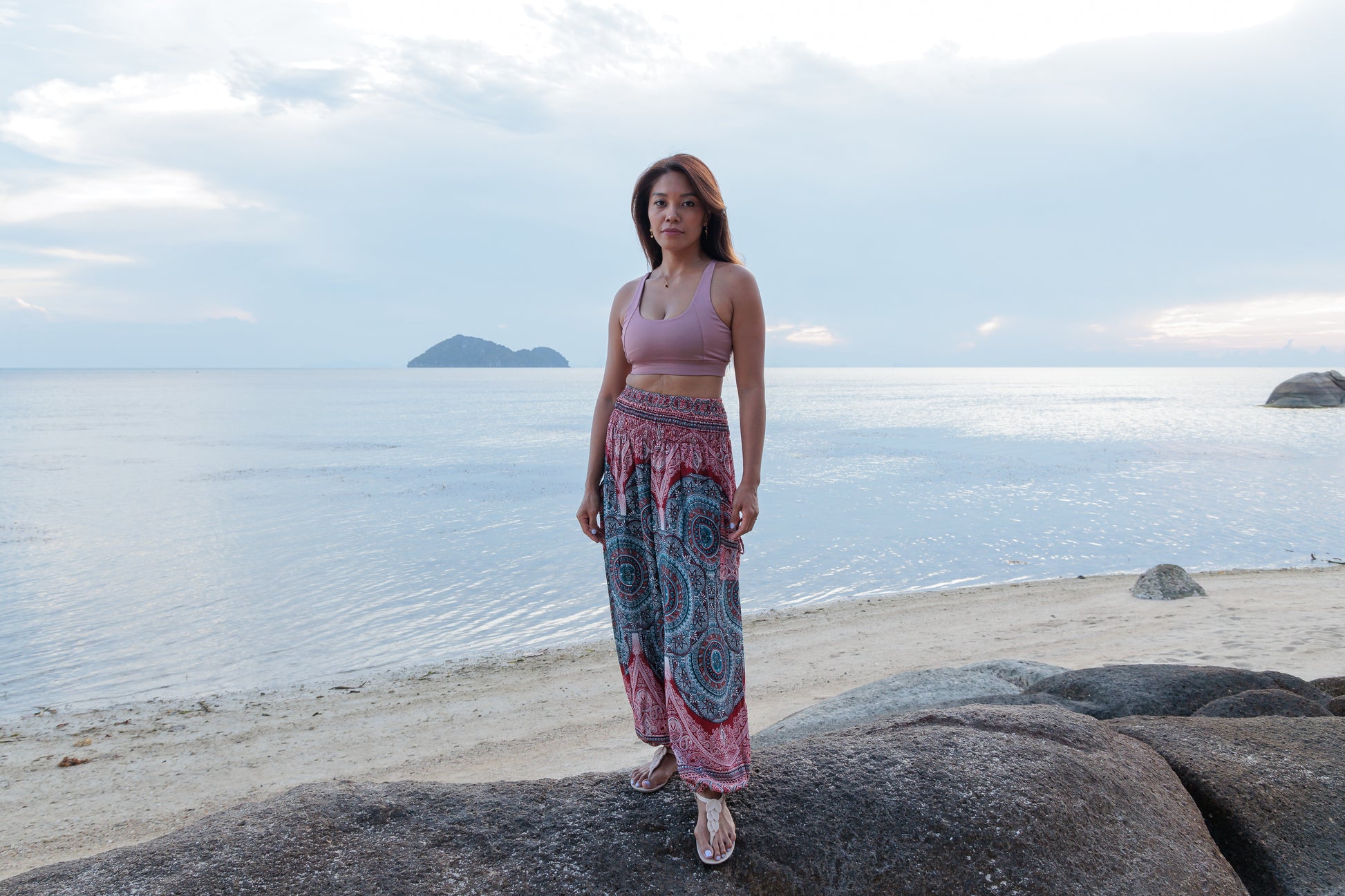 luftige Pluderhose mit Mandalamuster in rot/rosa/blau