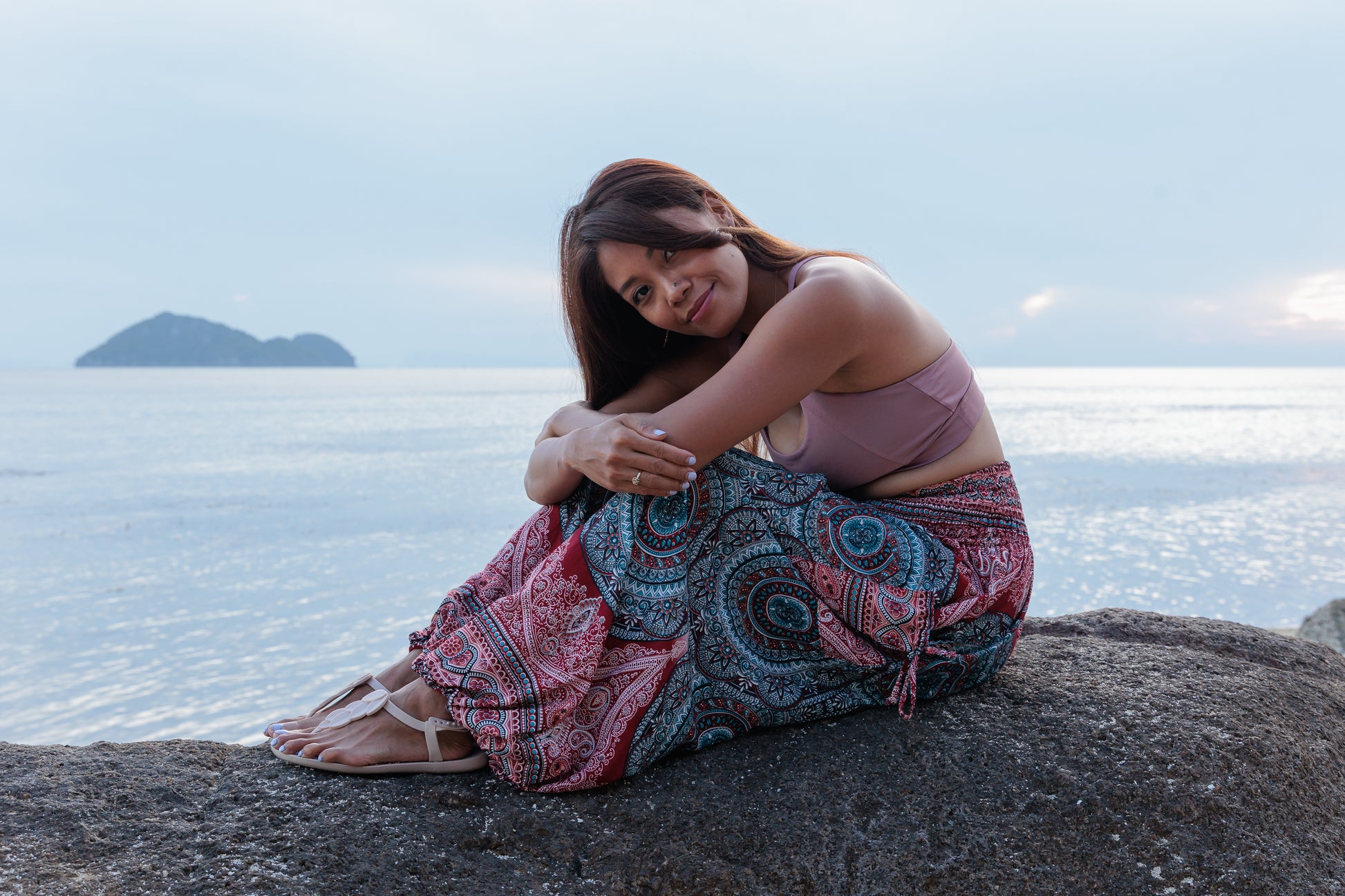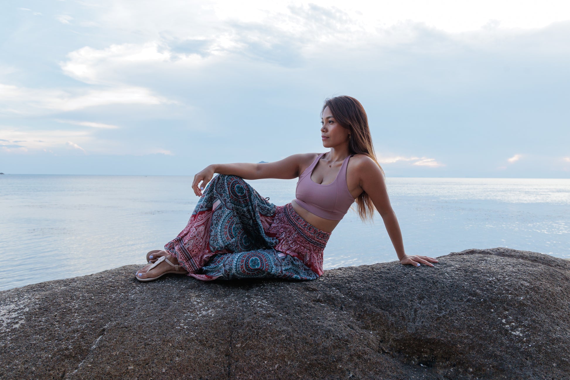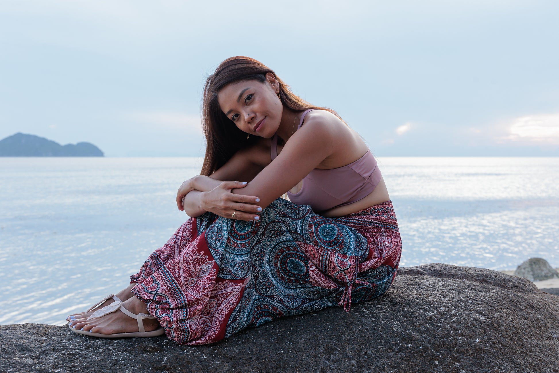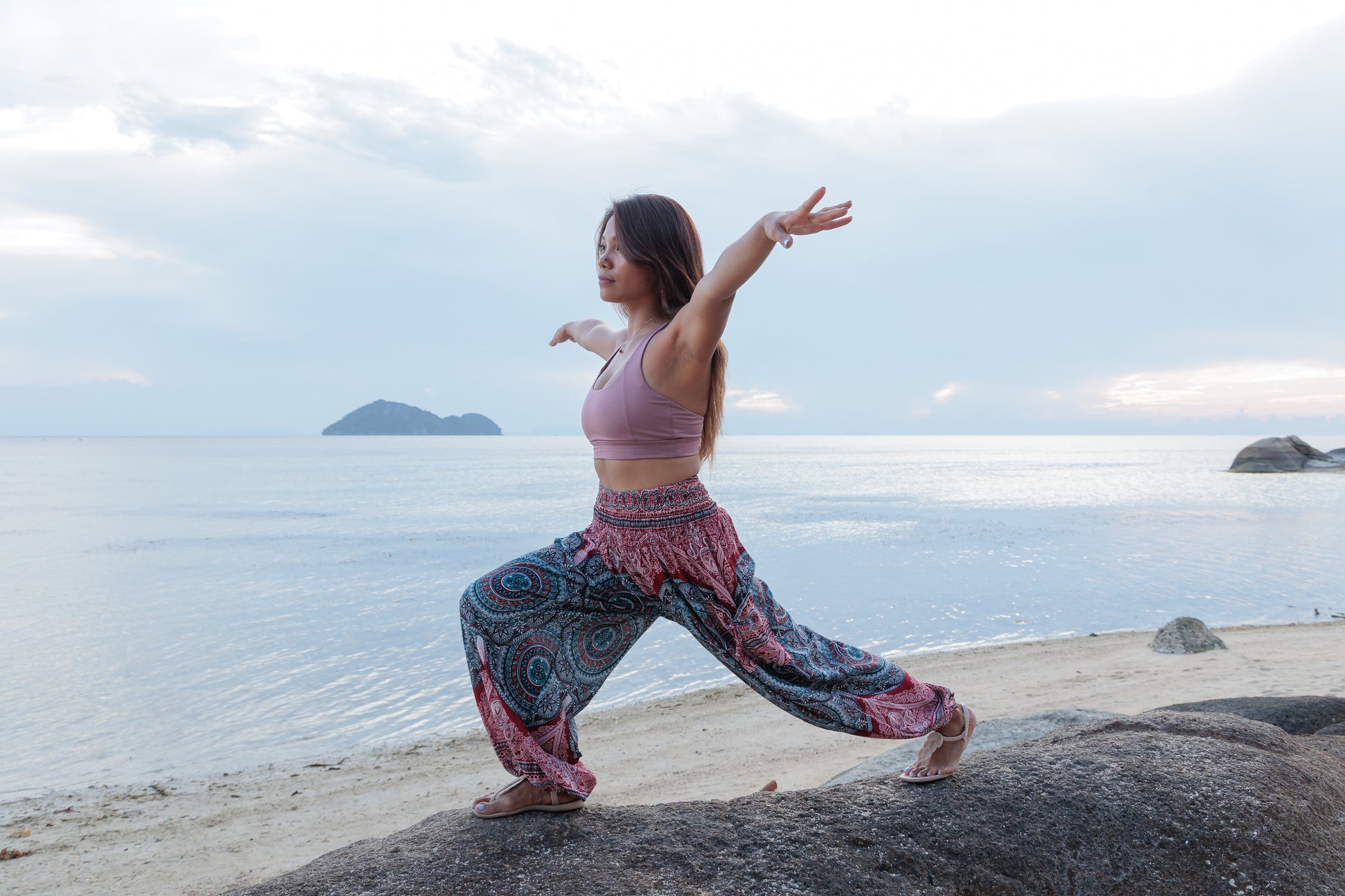 luftige Pluderhose mit Mandalamuster in rot/rosa/blau