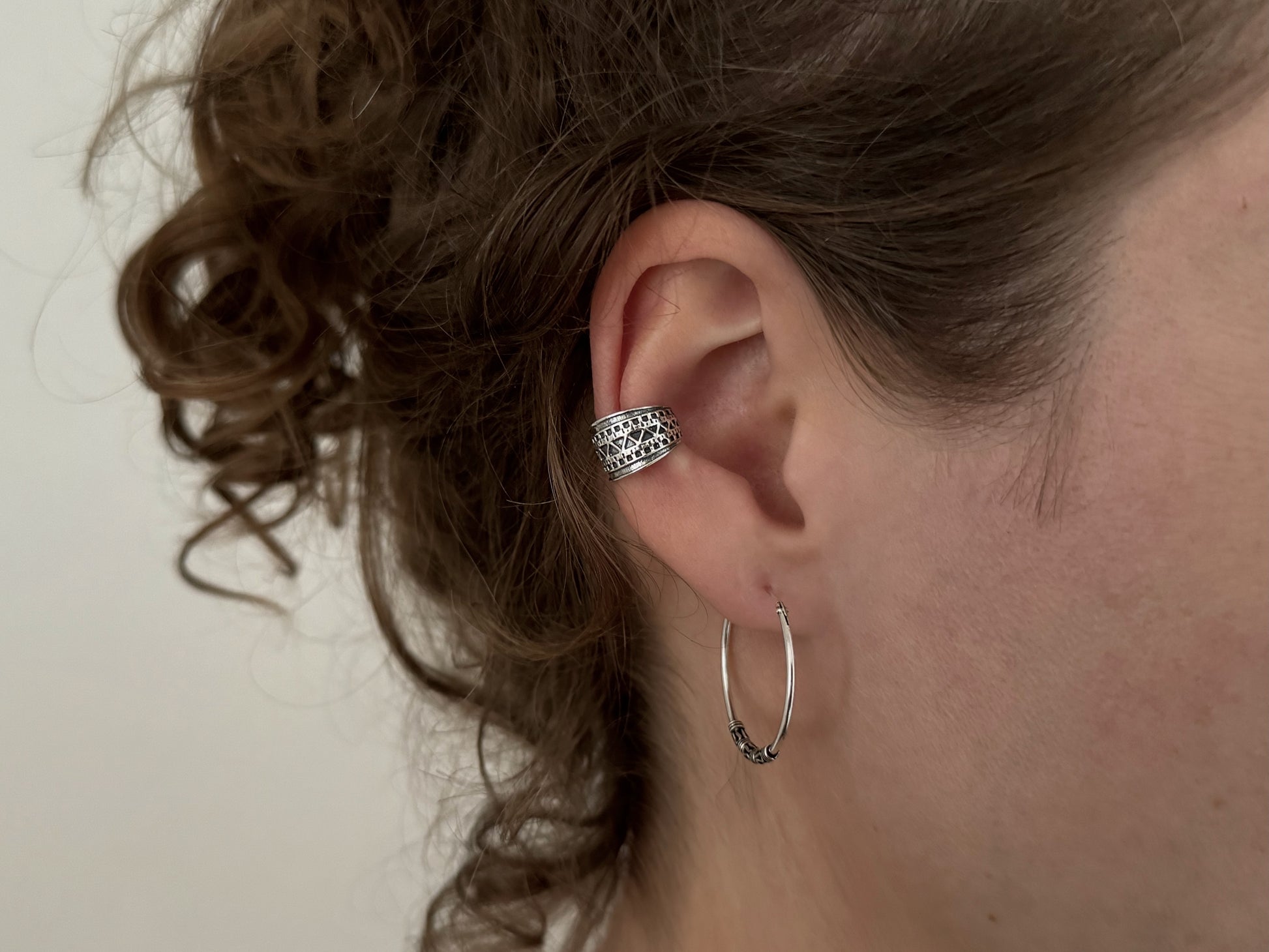 Die Creole ist nicht im Preis enthalten. Es handelt sich nur um die Ohrmanschette mit filigranem Muster.