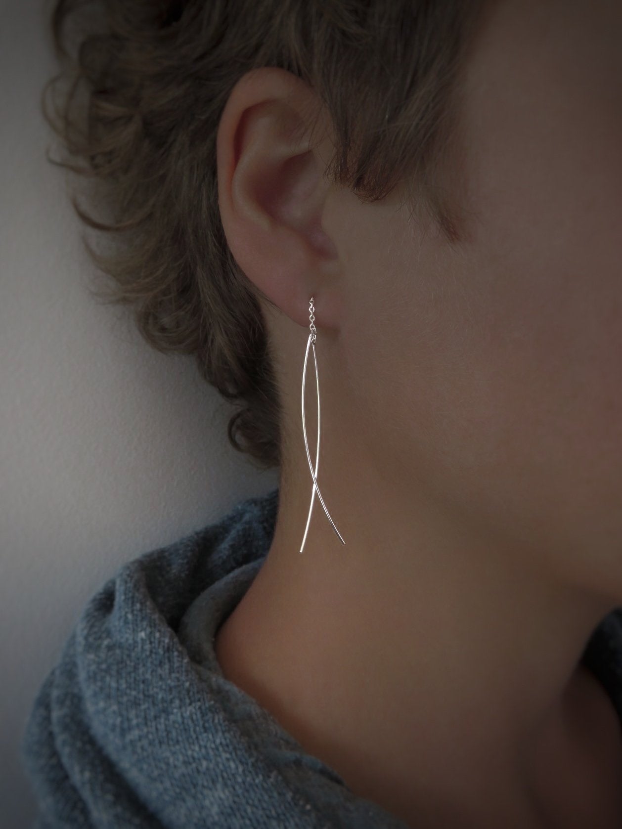 edle Ohrhänger mit Kettchen und baumelnden Stiften aus Silber