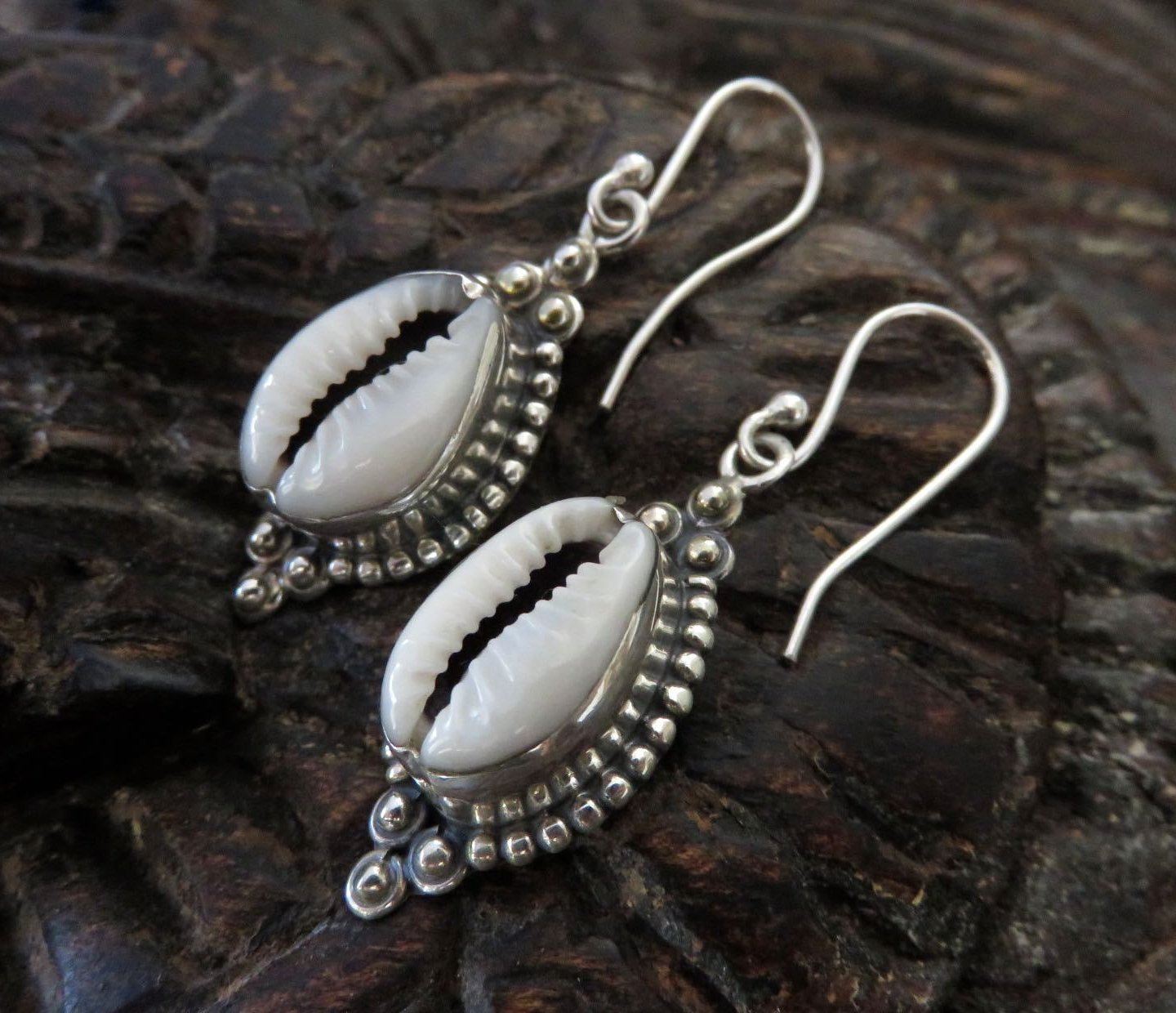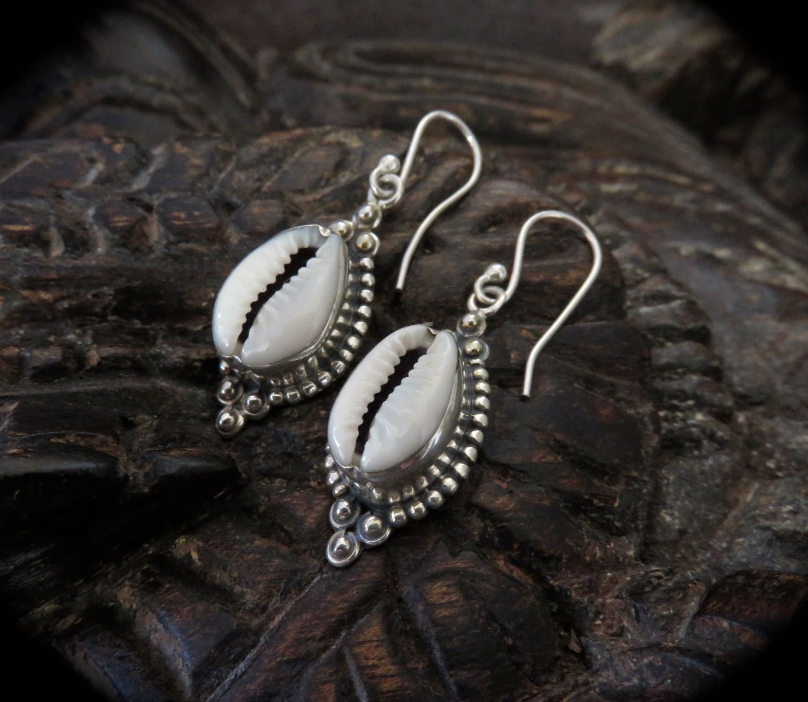 Muschelohrringe verziert mit kleinen Pünktchen aus Silber
