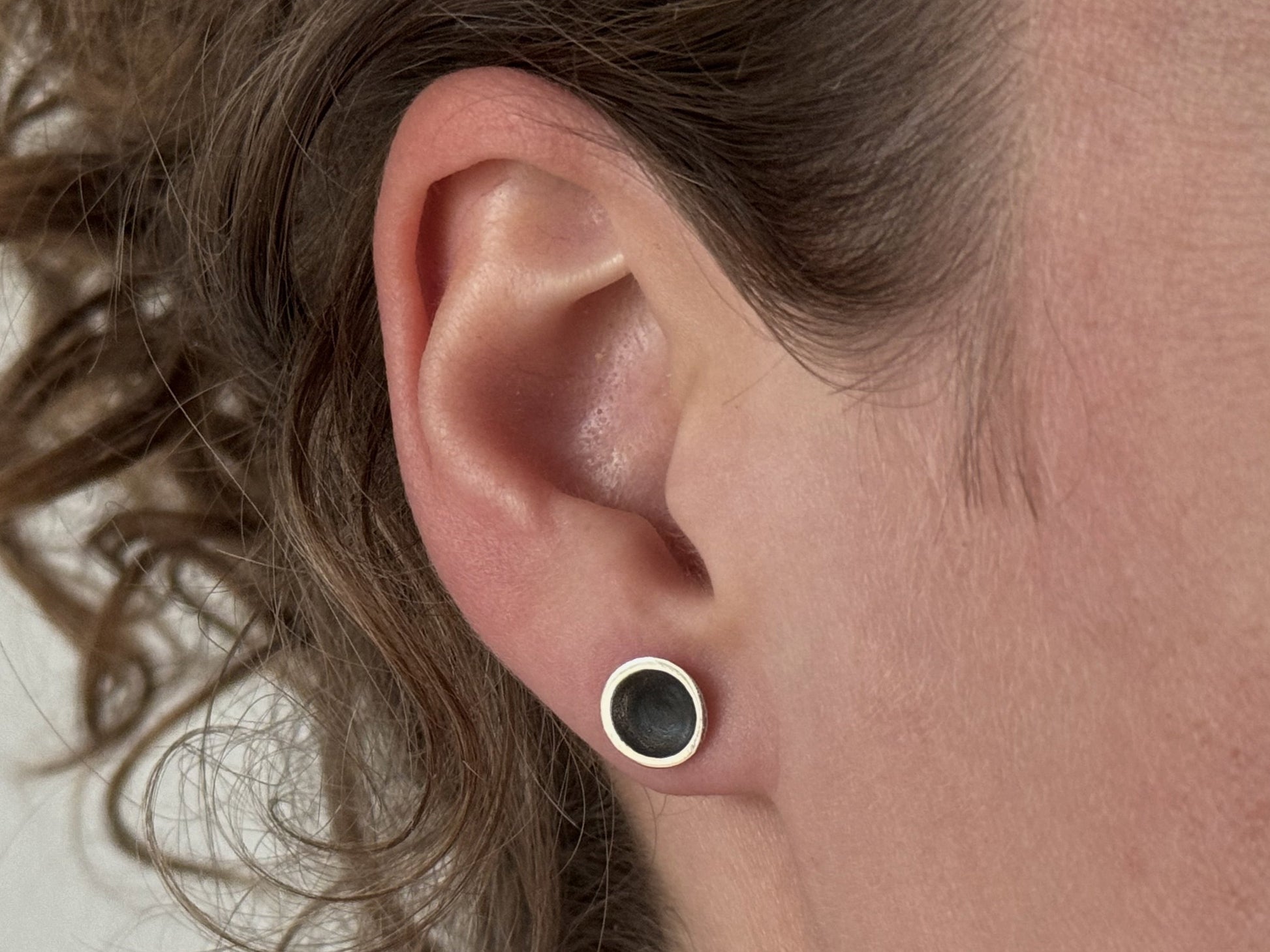 Ohrstecker kleine geschwärzte Halbkreise aus Silber