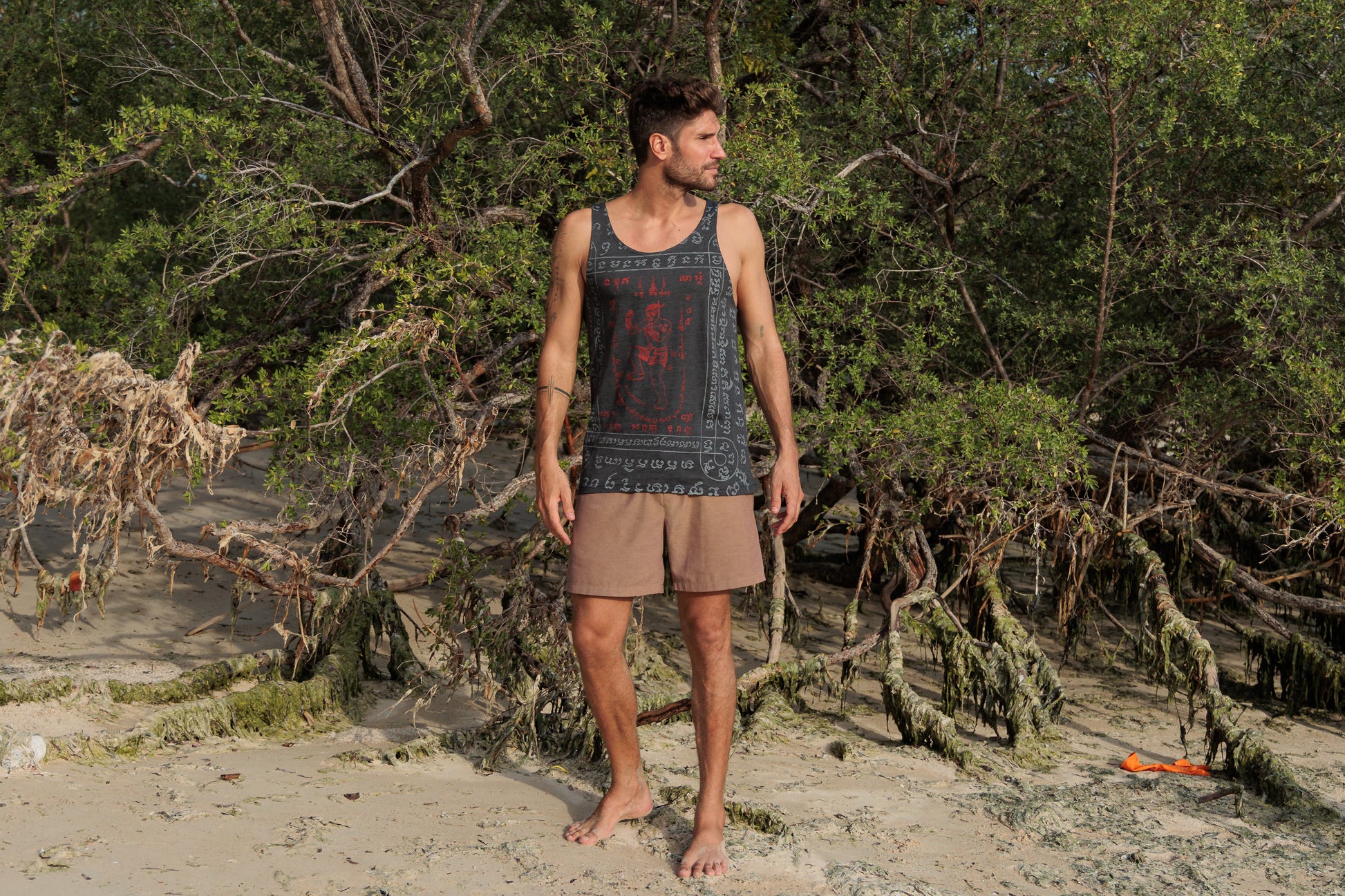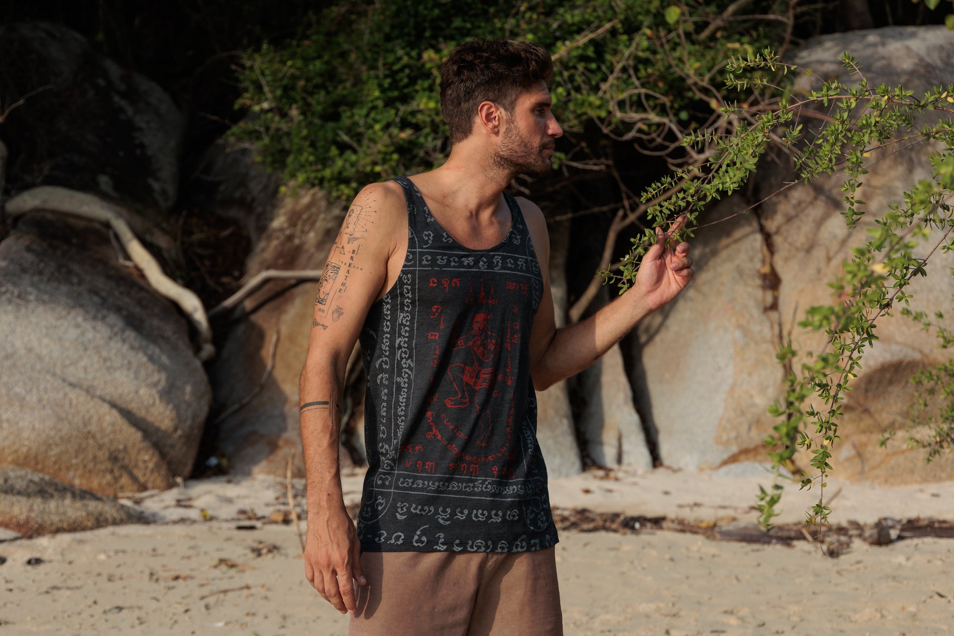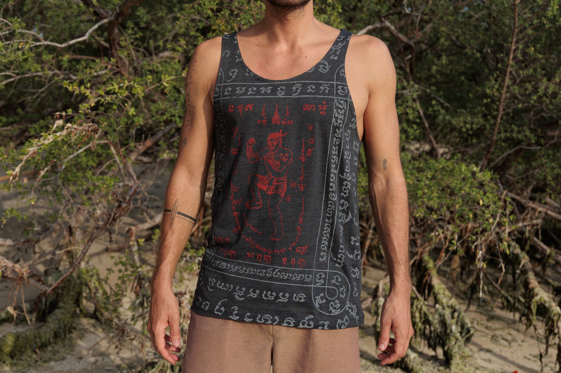 Sak Yant Muay Thai Tattoo Yantra Tanktop grau rot Boxer