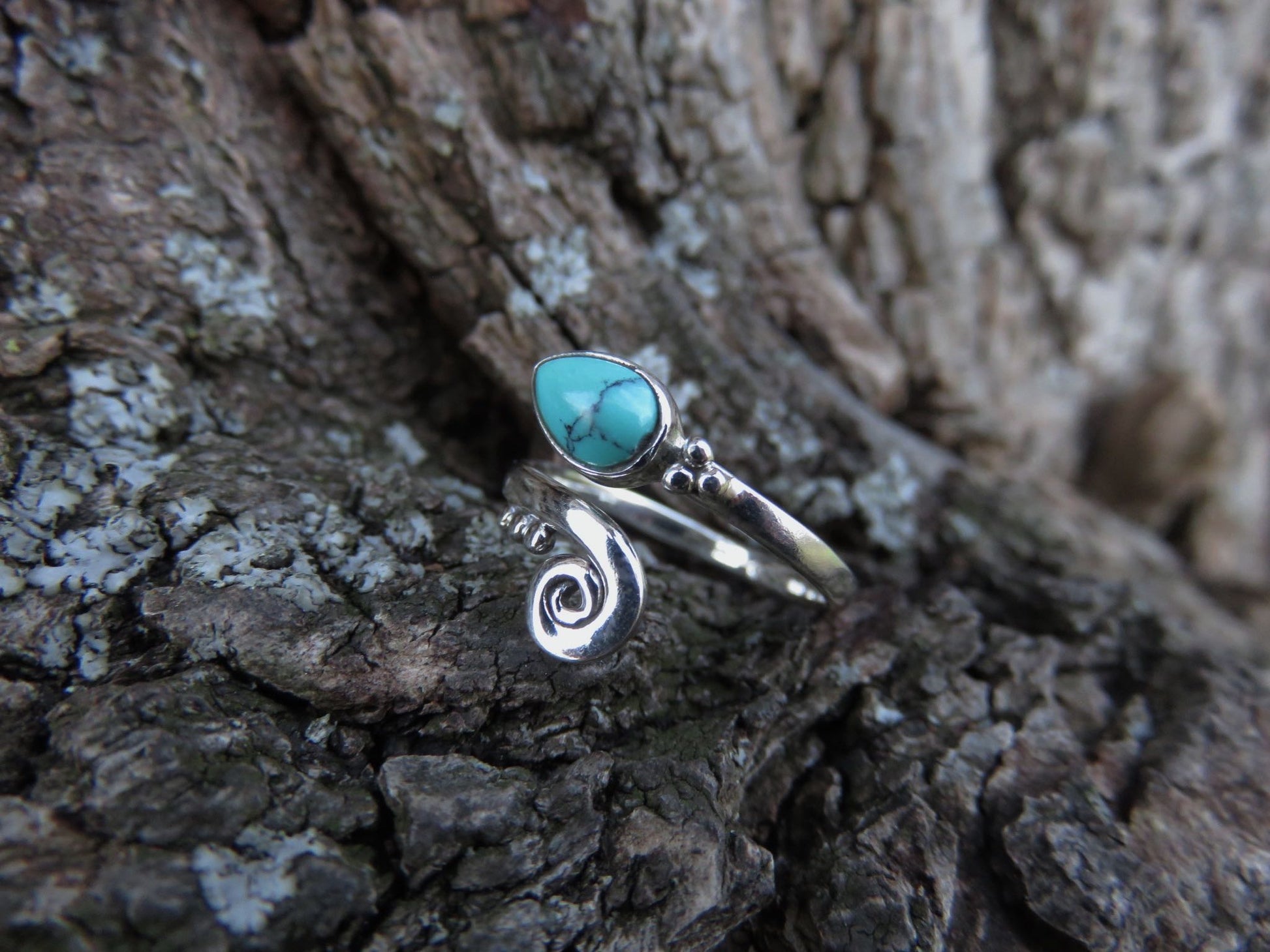 Zehenring mit Spirale und Stein in Tropfenform aus Silber
